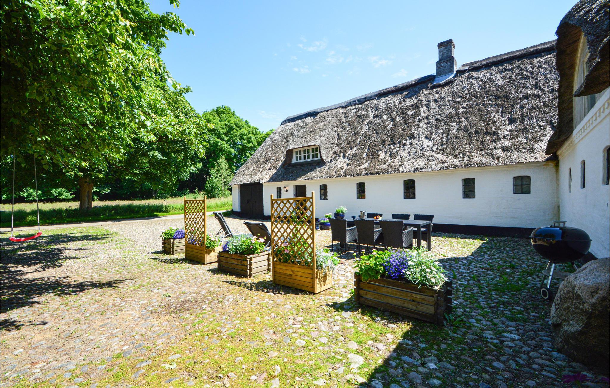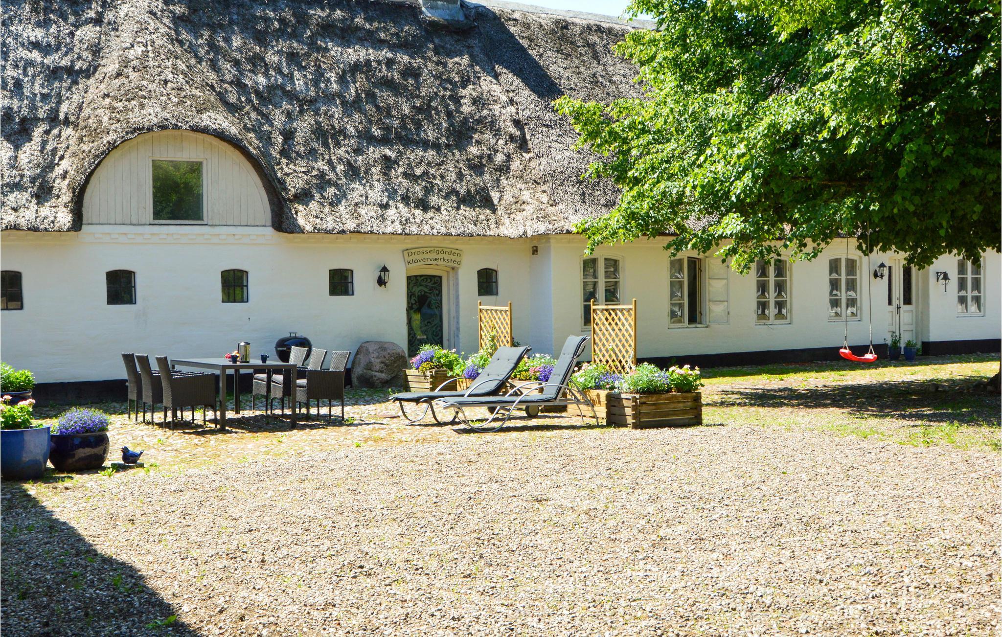 Geniet van een gezinsvriendelijk vakantiehuis met sauna, idyllische binnenplaats en prachtige landelijke omgeving in Branderup J, Denemarken.