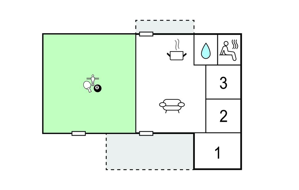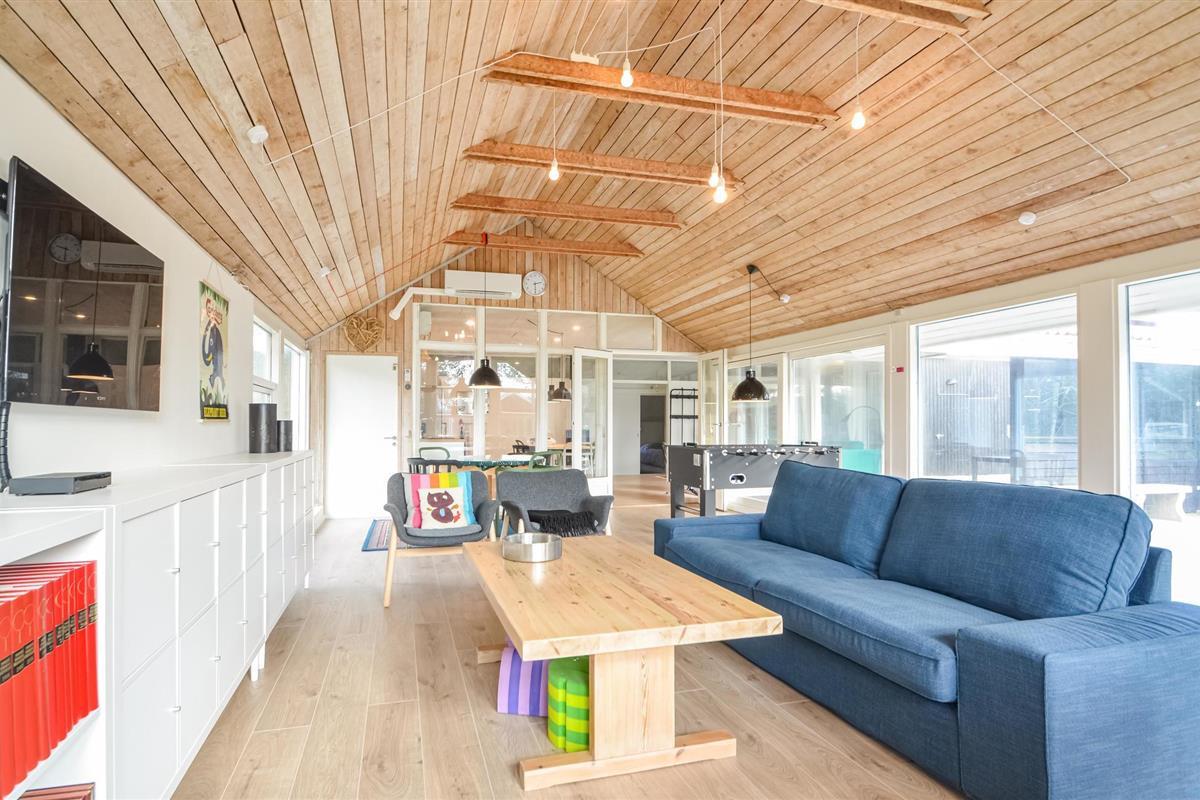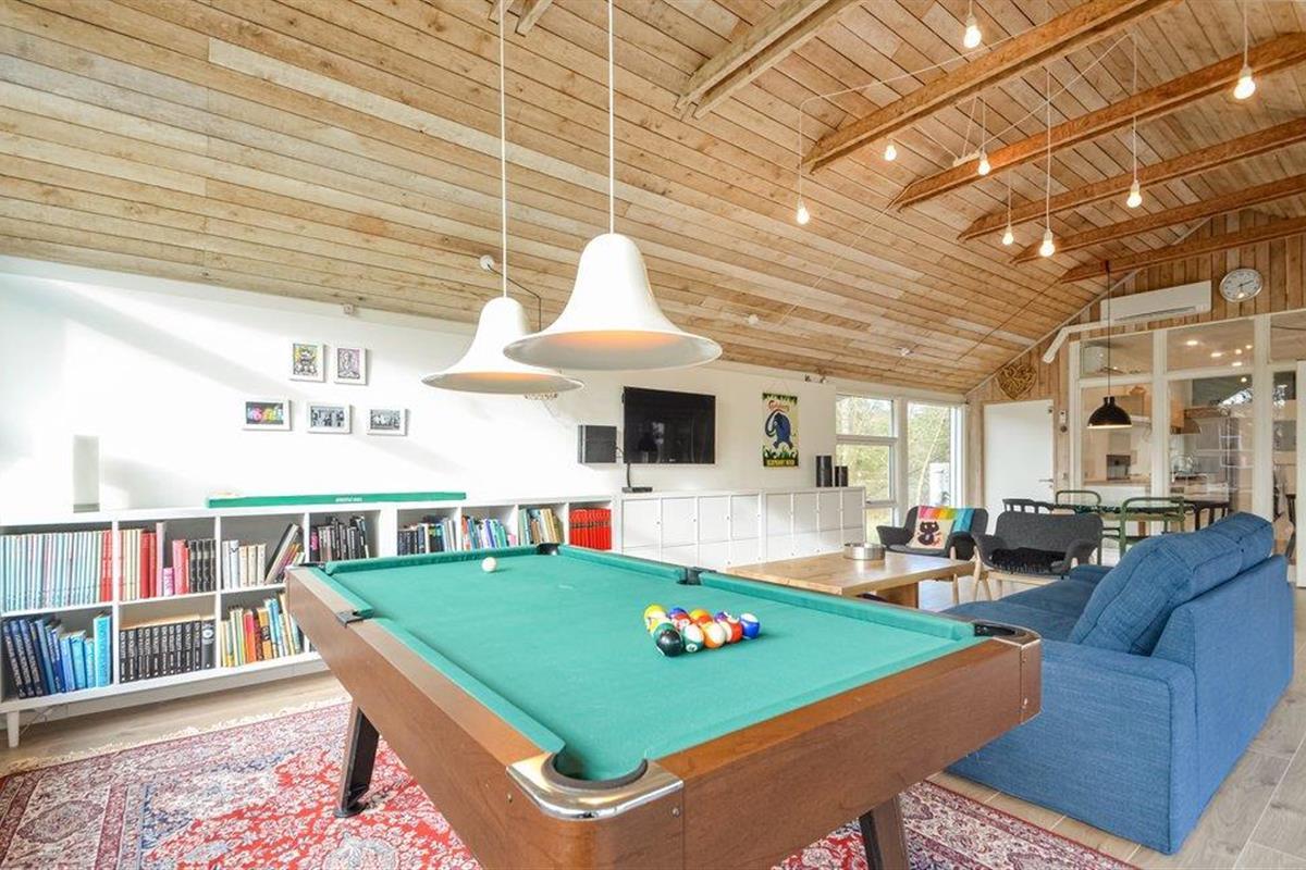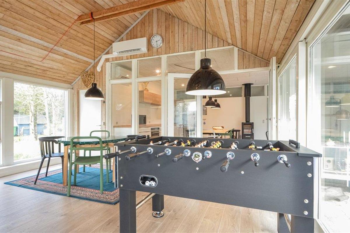 Het huis biedt de perfecte setting voor gezelligheid aan de eettafel in de grote keuken of in de woonkamer. Wanneer het weer niet geschikt is voor buitenactiviteiten, kunt u uw tijd binnen doorbrengen met genieten voor de tv of een duik nemen in het zwembad. In de aangrenzende kamer staat een tafelvoetbalspel, een bank en nog een eettafel. Het huis ligt op een relatief afgelegen perceel waar u veel buiten kunt zijn. Ook het grote, open terras nodigt uit tot vertoeven.