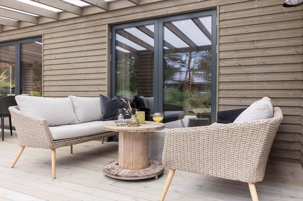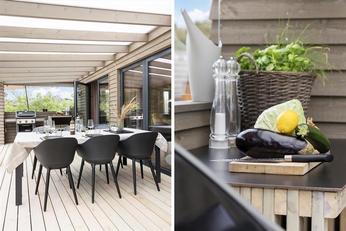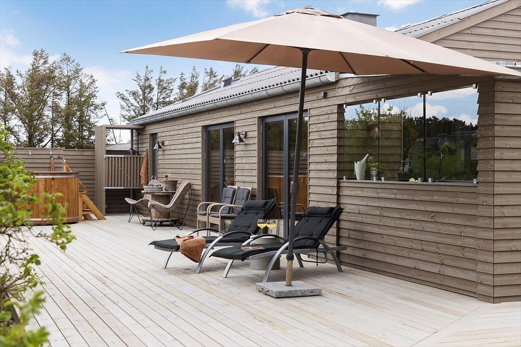 Im Außenbereich findest du eine Oase der Erholung. Die großzügige Terrasse eignet sich perfekt für lange Grillabende und entspannte Stunden unter freiem Himmel. Wenn die Sterne am Himmel leuchten, lädt der luxuriöse Badezuber zu einer wohltuenden Auszeit ein, während du die Ruhe der Nacht genießt. Erfrische dich unter der Außendusche nach einem Spaziergang zum nahegelegenen Strand. Hier beginnt dein Tag mit einem Kaffee auf der Terrasse, während die Natur dich umgibt – ein Erlebnis, das neue Energie und innere Ruhe schenkt.