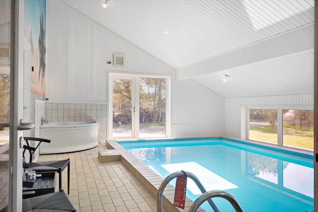Betrete dieses helle und geräumige Ferienhaus, in dem moderne Annehmlichkeiten und klassische Ferienhausatmosphäre Hand in Hand gehen. Mit einem gemütlichen Kamin und einem Poolbereich sind unvergessliche Momente zu jeder Jahreszeit garantiert. Stell dir Abende vor, an denen das Feuer knistert, oder vergnügliche Stunden im großen Innenpool, wo Kinder und Erwachsene planschen können. Wenn Ruhe einkehrt, wartet das Badefass darauf, dich mit einem Hauch von Luxus zu verwöhnen. Die Einrichtung des Hauses sorgt dafür, dass sich die ganze Familie – von den Jüngsten bis zu den Ältesten – wohlfühlt.(Pool = L 5,98 x B 3,50 x D 1,40)