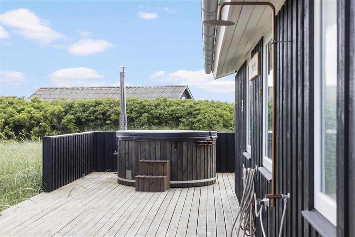 Das großzügige Außengelände bietet Platz für die ganze Familie. Auf der weitläufigen Terrasse kannst du entspannen, grillen und die Sonne genießen, während die Kinder auf der Wiese spielen. Ein besonderes Highlight ist der Badezuber, in dem du dich bei einem warmen Bad unter freiem Himmel entspannen kannst – vielleicht mit einem Glas Wein in der Hand, während die Sonne hinter den Dünen untergeht. An heißen Sommertagen bietet die Außendusche eine erfrischende Abkühlung und rundet das Naturerlebnis perfekt ab.
