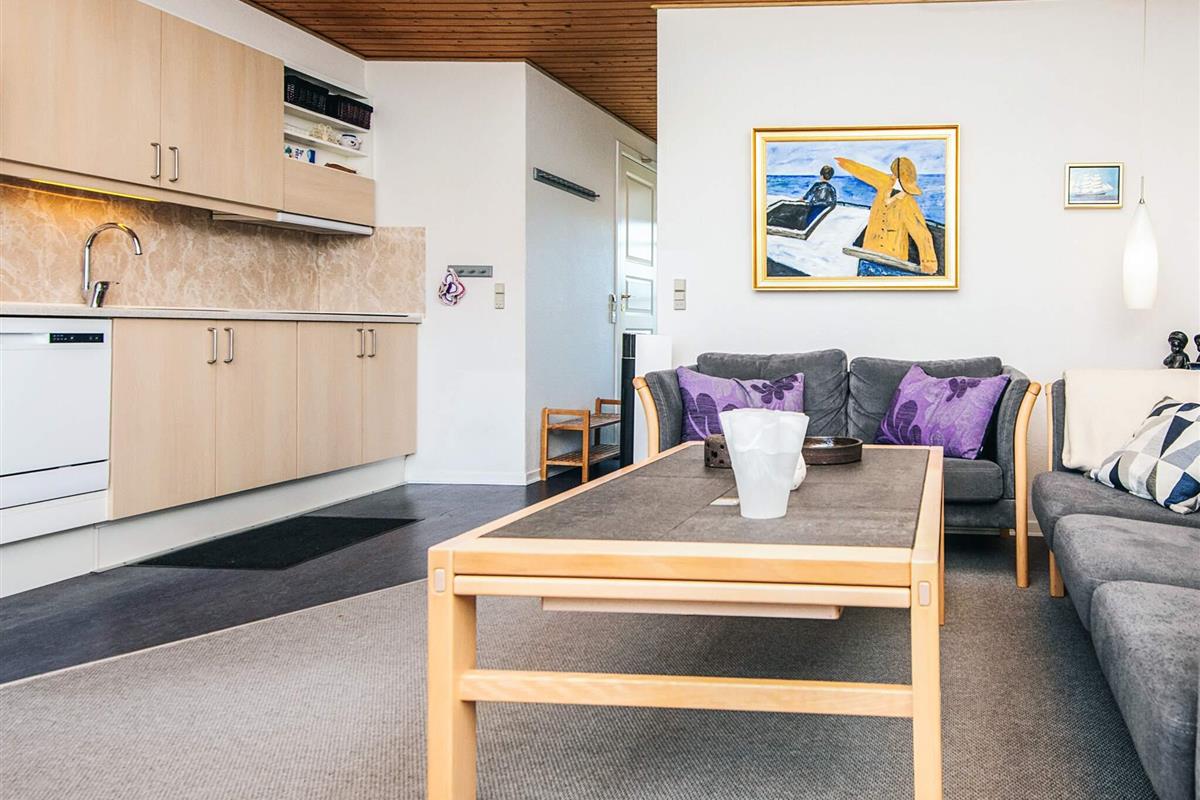 Ferienwohnung in unmittelbarer Nähe zum Meer und Hafen in Agger. Komfortable und einfache Einrichtung. Im Esszimmer gibt es Oberlichter für gutes Licht im Raum.