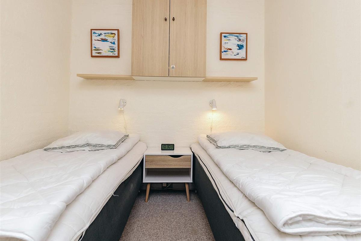 Das Wohnzimmer ist durch die großen Fenster mit Blick auf die private Terrasse gut beleuchtet. Im Wohnzimmer befindet sich ein Schlafsofa, das für zwei Personen ausgeklappt werden kann (ca. 140 x 200 cm). Es gibt ein Schlafzimmer mit zwei Einzelbetten (90 x 200 cm), die zu einem Doppelbett zusammengeschoben werden können.
