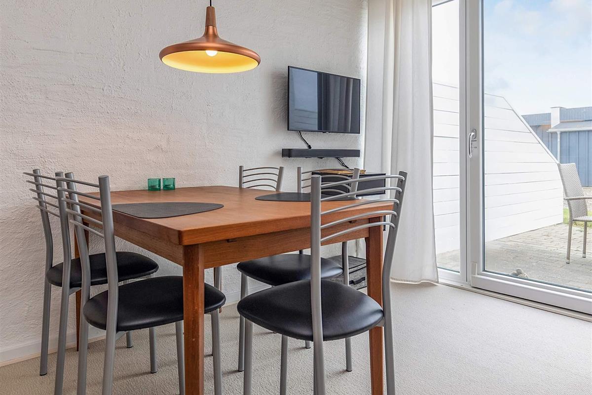 Die Terrasse ist mit einem Gartentisch, Gartenstühlen und einem Grill ausgestattet. Von der Terrasse aus genießen Sie einen herrlichen Blick auf die umliegende Natur. Das Ferienzentrum bietet zahlreiche Gemeinschaftsaktivitäten, darunter kostenlosen Zugang zum Hallenbad mit separatem Kinderbecken und Sauna. Geöffnet vom 1. April bis 22. Oktober. Im Außenbereich gibt es Tennis, einen Spielplatz, Minigolf und einen Lagerfeuerplatz. Es gibt einen gemeinschaftlichen Münzwaschsalon. Im Ferienzentrum Agger Tange gibt es eine öffentliche Ladestation für Elektroautos.