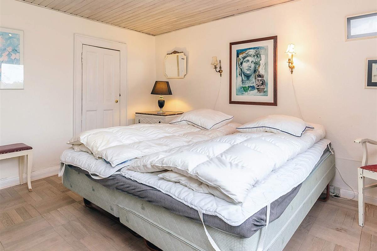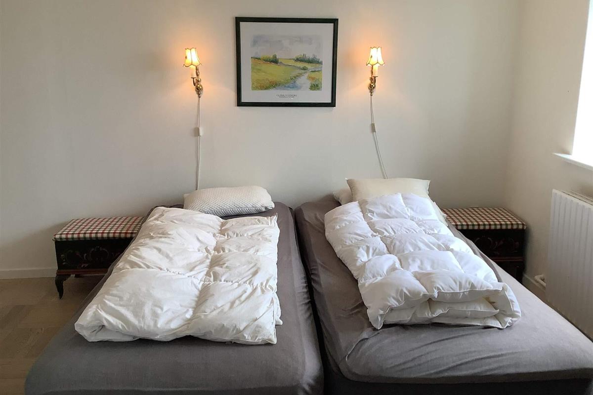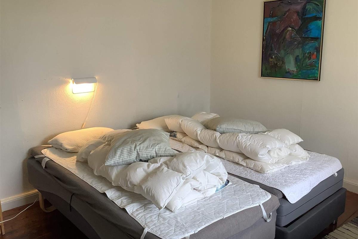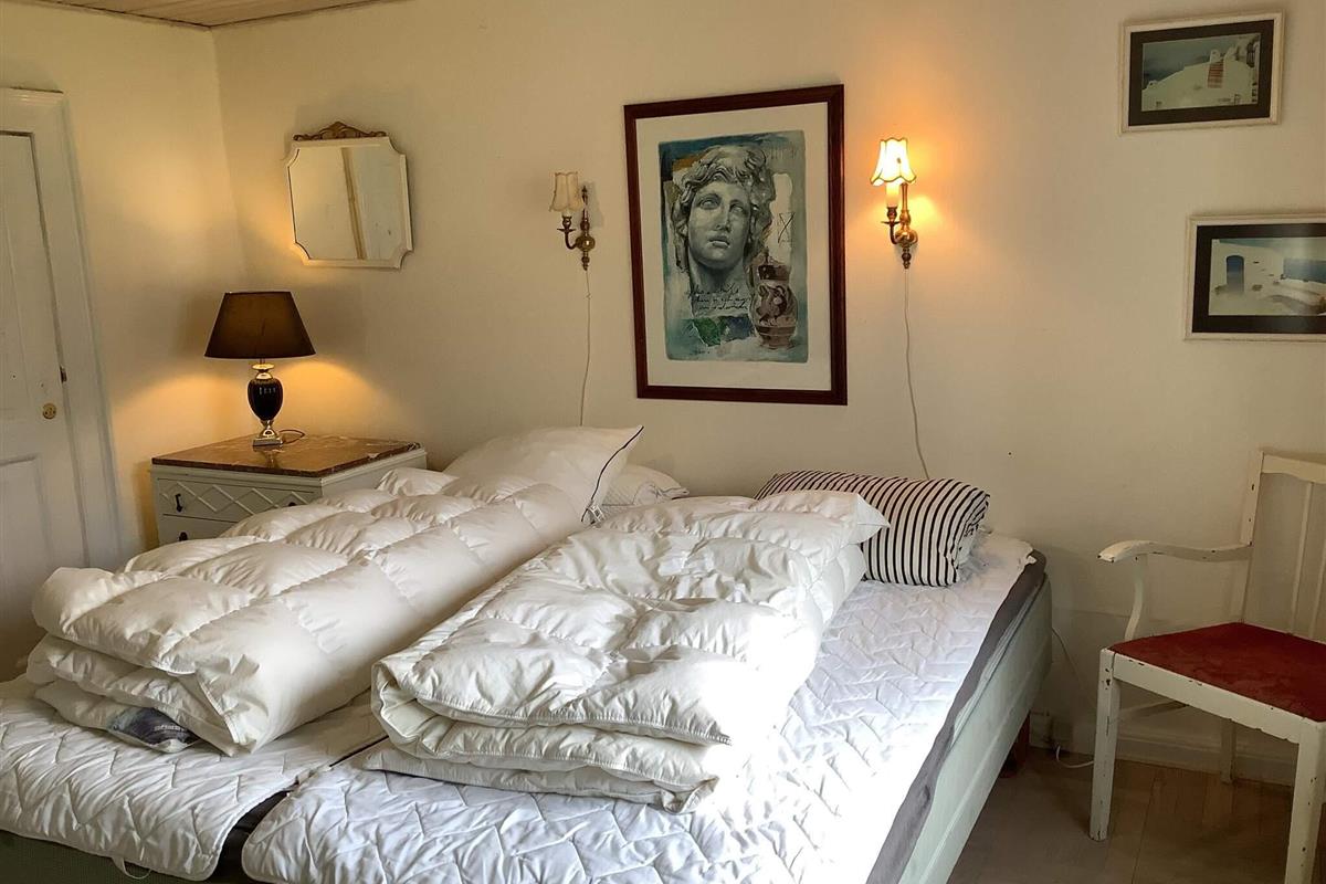 Die Betten verteilen sich auf sieben Schlafzimmer, darunter eines im Obergeschoss mit Schlafsofa. Einige Zimmer dienen als Durchgangszimmer. Das Haus verfügt über zwei Toiletten, eines davon mit Badewanne und Dusche, sowie eine Waschmaschine mit Trockner.