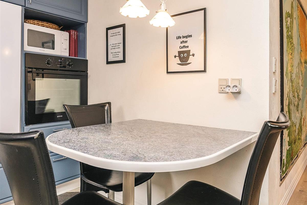 In der Küche befindet sich ein Essbereich, der durch zusätzlichen Küchenbereich im Hauswirtschaftsraum und der Speisekammer/Abstellraum erweitert wurde. Das Haus verfügt über alle notwendigen Annehmlichkeiten wie Kochplatten (Induktion und Standard), Dunstabzugshaube, Backofen, mehrere Kühlschränke, Gefrierschrank, Geschirrspüler, Kaffeemaschine und Mikrowelle.