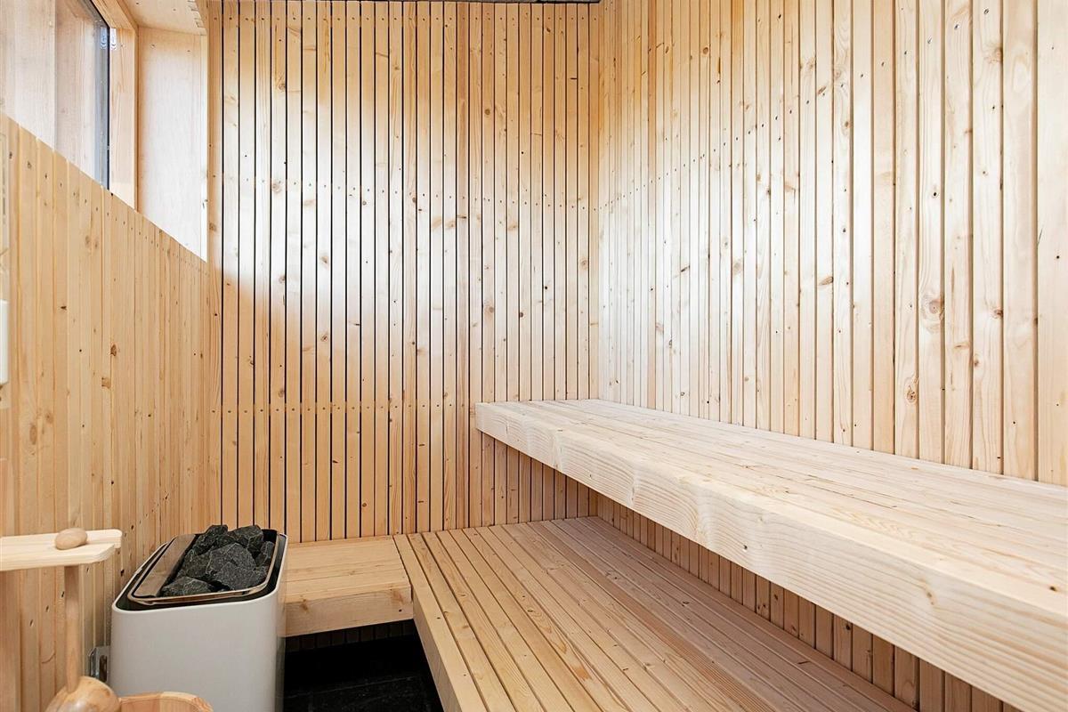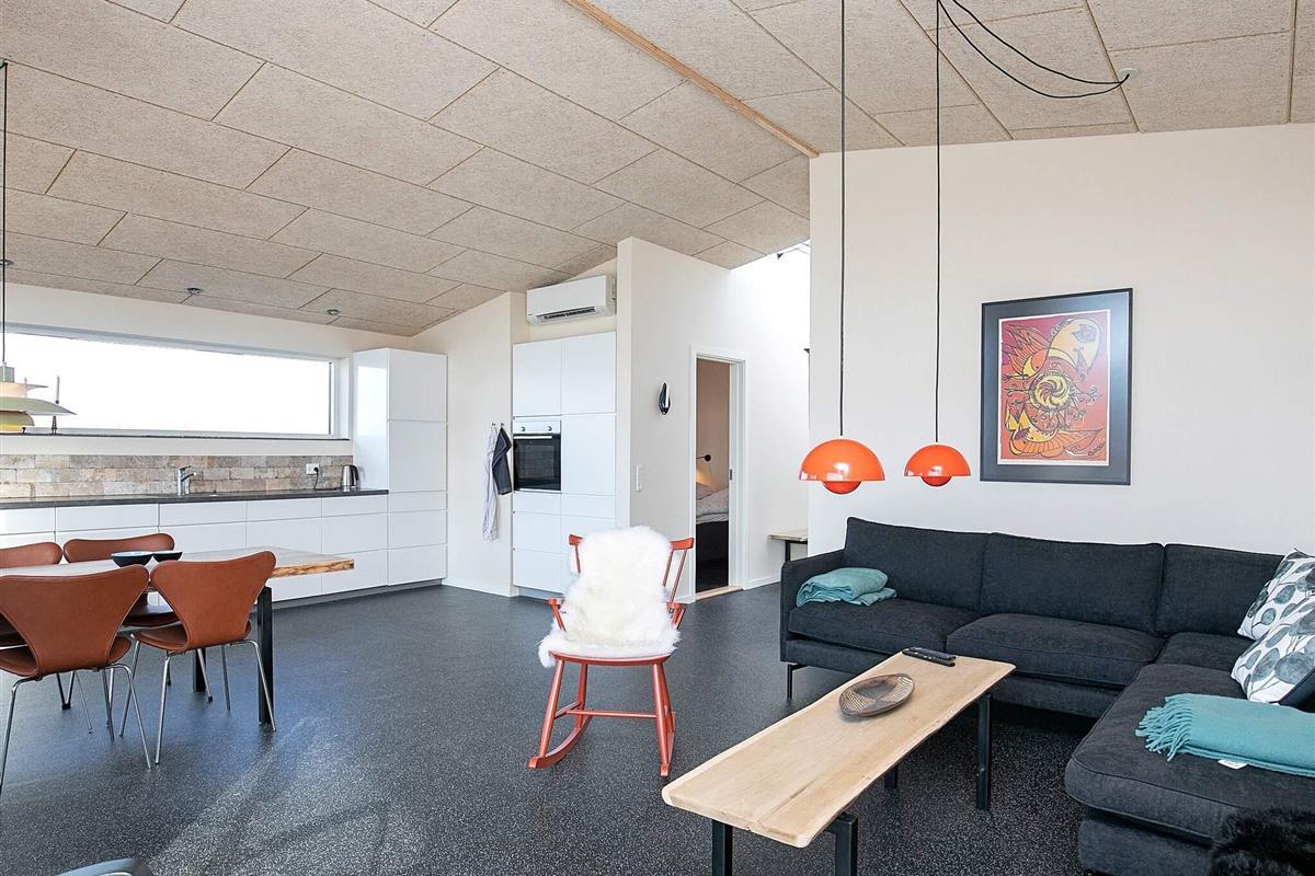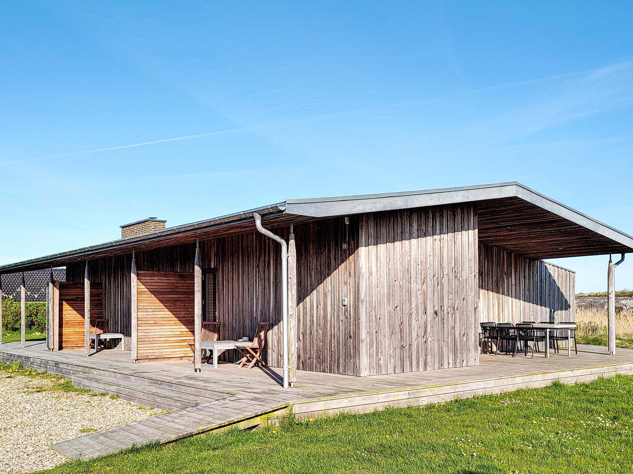 Dieses helle, einladende Ferienhaus mit großer Terrassenfläche hat einige Besonderheiten zu bieten. Dazu zählen auch ein abgesenkter Außenwhirlpool mit schützender Glaswand und Ausblick zur Dünenlandschaft sowie eine praktische Außendusche. Außerdem steht im Badezimmer des Hauses eine Sauna für kühlere Tage bereit.