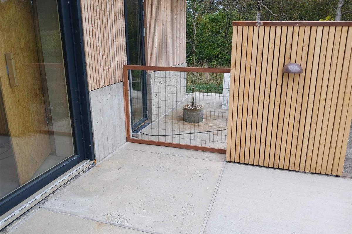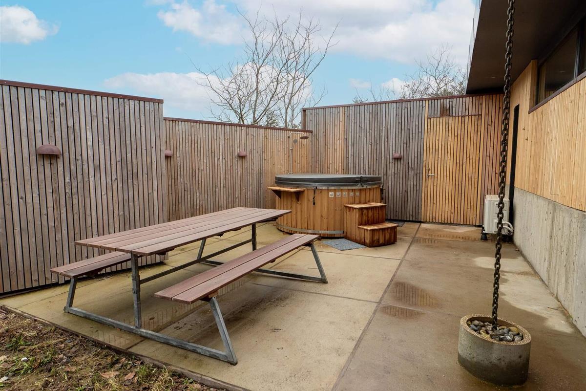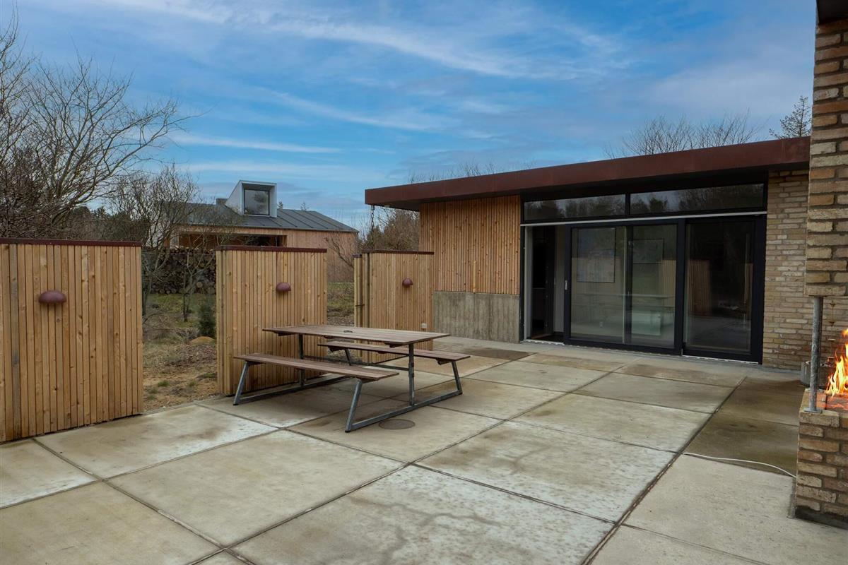 Im Außenbereich befinden sich mehrere Terrassen, von denen eine – ideal für windige Tage – geschlossen werden kann. Auf einer Terrasse können Sie außerdem ein Naturbad mit Lichtern und Sprudel genießen oder in der Außendusche mit Warm- und Kaltwasser duschen. Oder Sie versammeln sich gemütlich am Kamin im Freien.