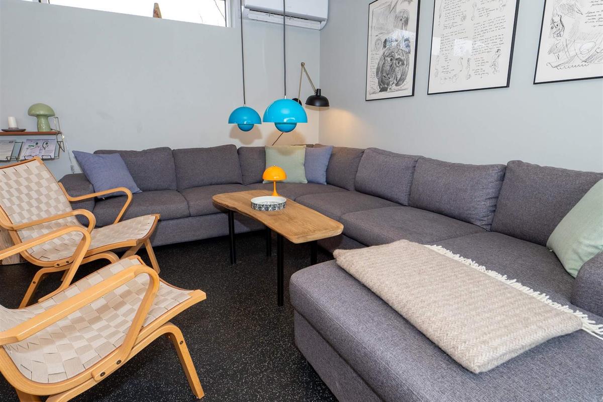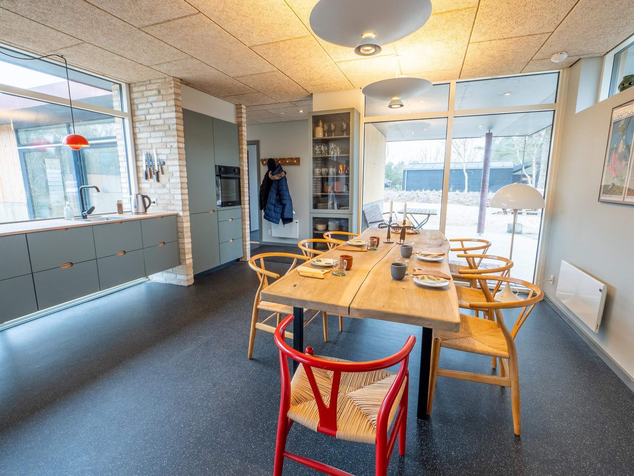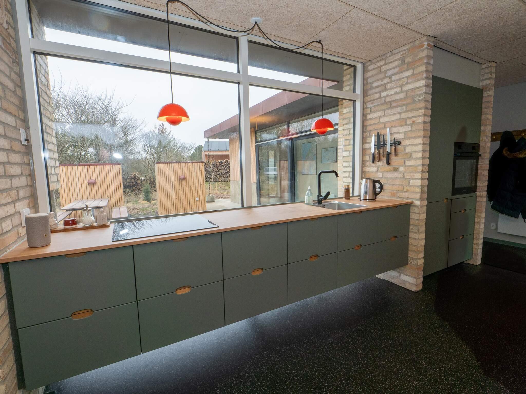 Die gut ausgestattete Küche verfügt über ein Induktionskochfeld, einen Backofen, eine Mikrowelle und einen Geschirrspüler – Kochen macht hier Spaß. Im Wohnzimmer sorgt der Kaminofen an kühlen Tagen für eine behagliche Atmosphäre. WLAN und Fernsehen über Norlys mit dänischen und deutschen Sendern sind vorhanden.