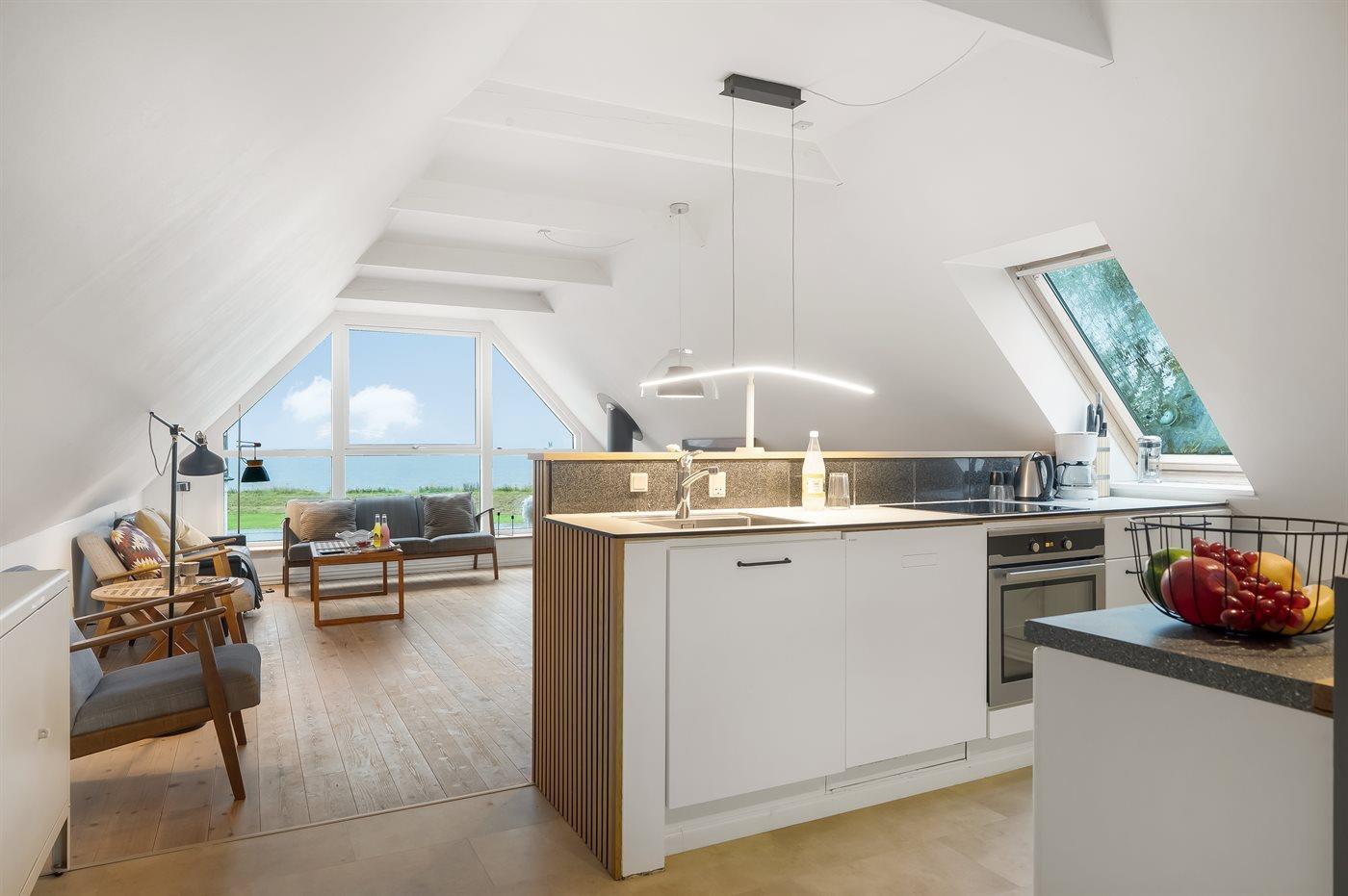 De keuken is uitgerust met koelkast Er is 4 inductiekookplaten, heteluchtoven, magnetron en vaatwasser.