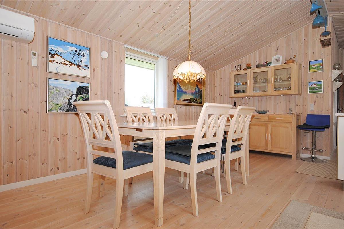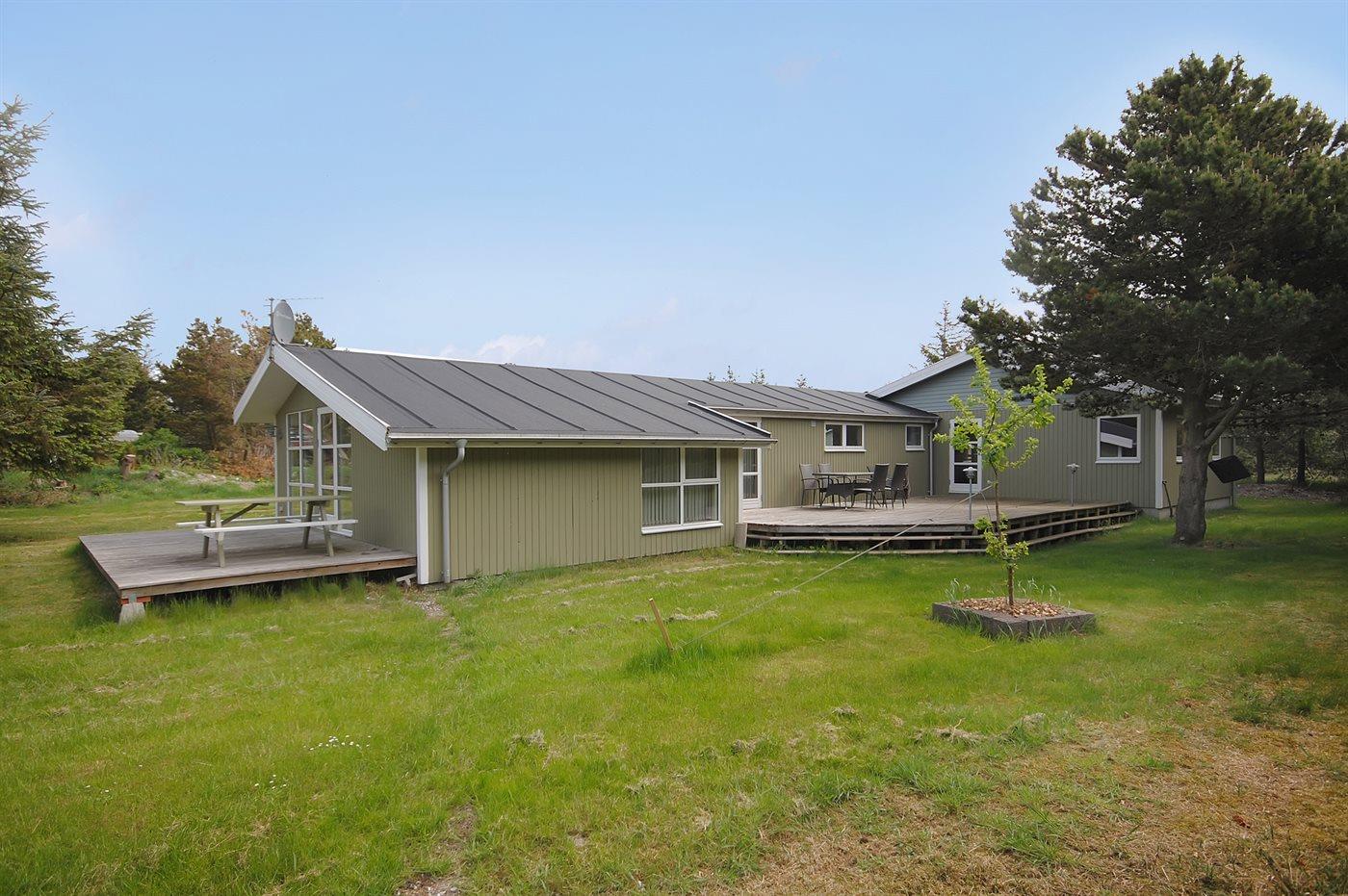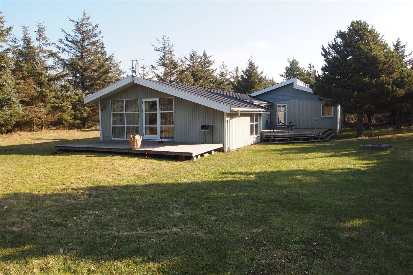De vakantiewoning is gelegen op een 2500 m² groot natuural grond. Afstand tot de zee 1000 m. Afstand tot de fjord 200 m. Afstand tot meer 300 m. Dichtstbijzijnde winkel 3000 m. Bij de vakantiewoning hoort 50 m² terras. Gereedschapsruimte. Parkeerplaats bij het huis.