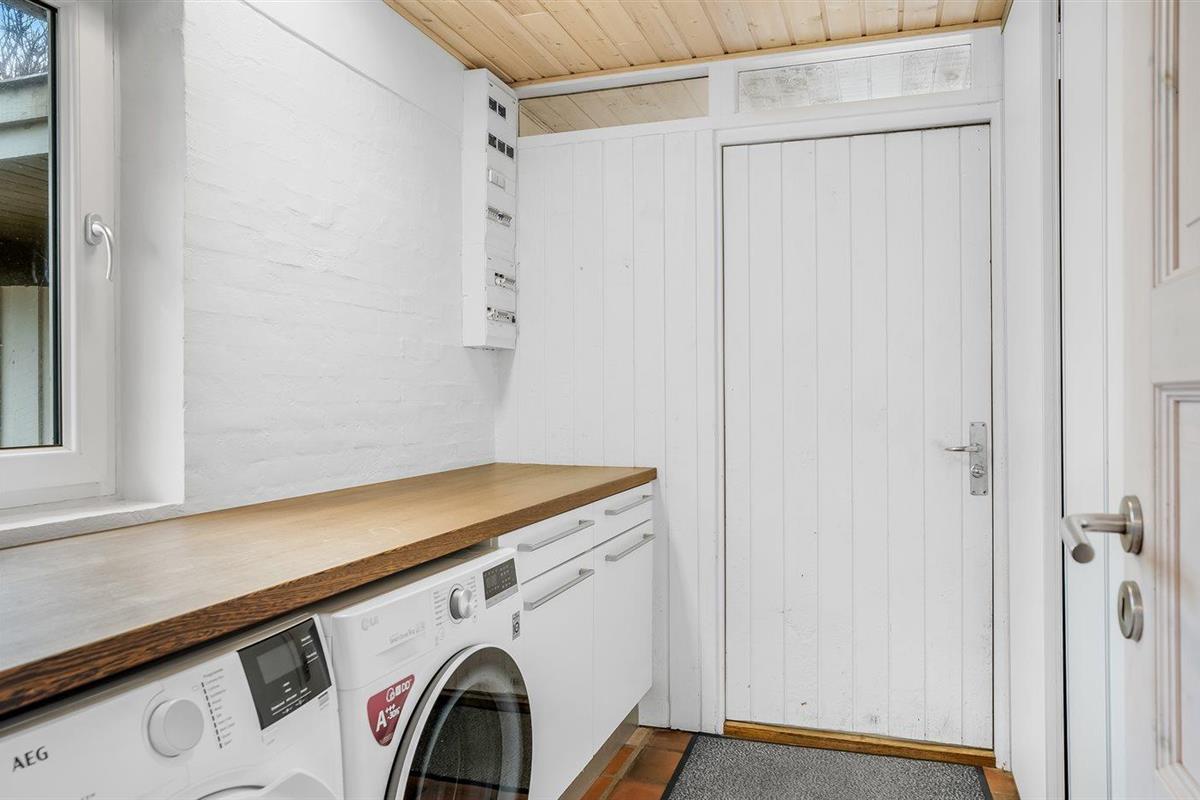 De vakantiewoning is gelegen op een 935 m² groot natuural grond. De grond is omheind. Afstand tot de zee 800 m. Afstand tot de fjord 500 m. Dichtstbijzijnde winkel 300 m. Bij de vakantiewoning hoort terras. Carport ter beschikking. Parkeerplaats bij het huis.
