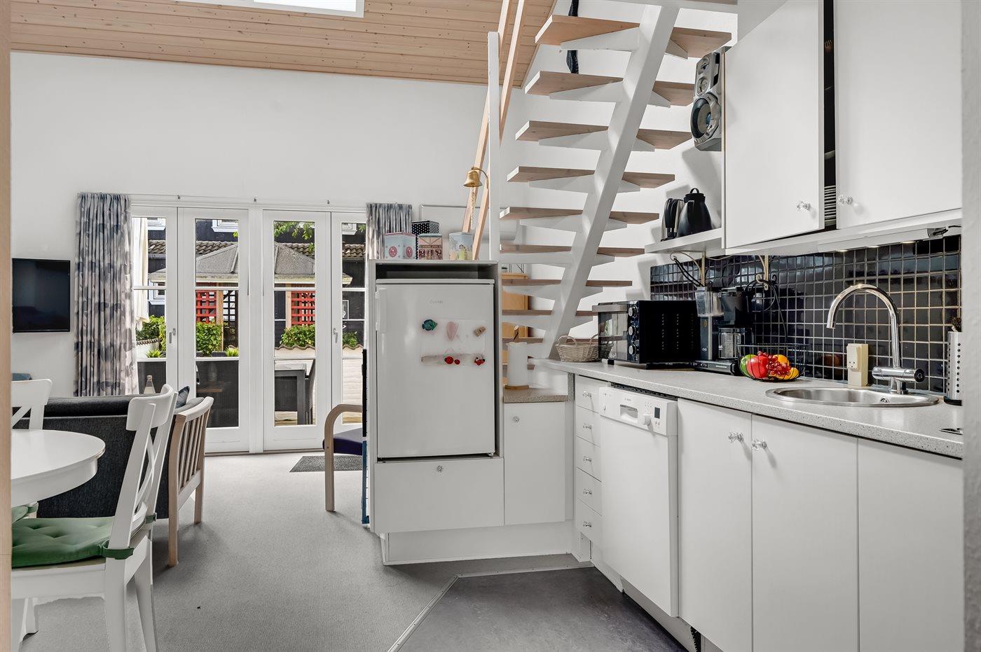 De keuken is uitgerust met koelkast Er is 4 elektrische kookplaten, heteluchtoven en vaatwasser.