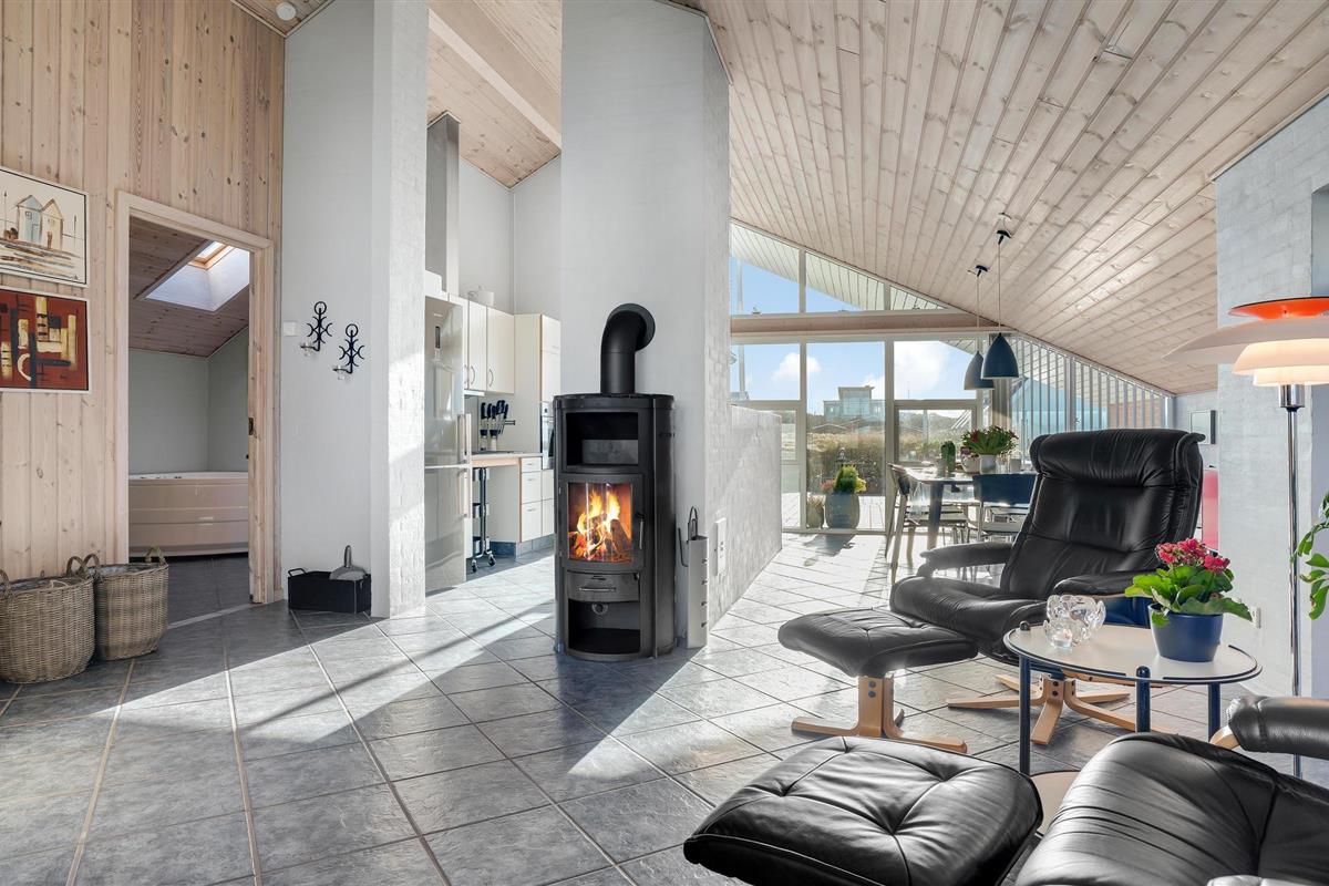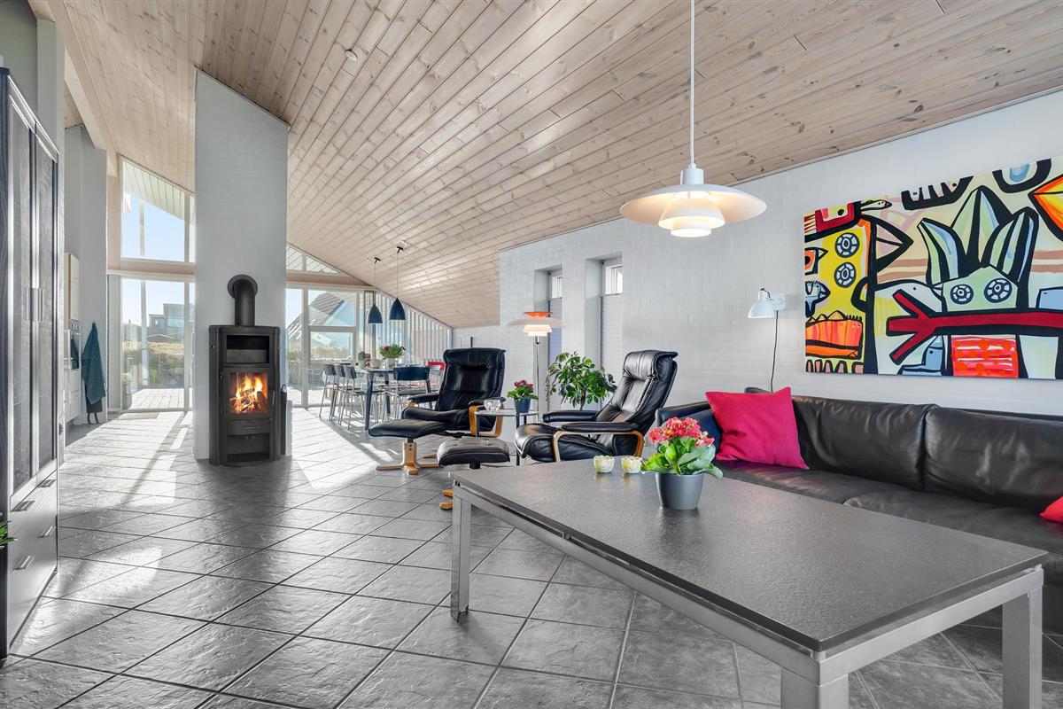 Aantrekkelijk en zeer goed ingericht luxe huis op een groot natuurperceel nabij de Noordzee, het Flade-meer en de Krik-baai. In de natuurgebieden, onder andere langs Agger Tange, kunt u vogels kijken, vissen of uw meegebrachte boot te water laten. De goed uitgeruste keuken staat in open verbinding met de stijlvol ingerichte woonkamer. Daar staat de eettafel voor grote ramen die de ruimte veel licht geven. Van hieruit heeft u toegang tot de deels overdekte terrassen, waar u kunt genieten van de zon of een licht Noordzeebriesje. Gezellige slaapkamers met veel kastruimte en een goede slaapzolder. Inbegrepen in de huurprijs is toegang tot Sydthy spa en zwembad, gelegen in Hurup.