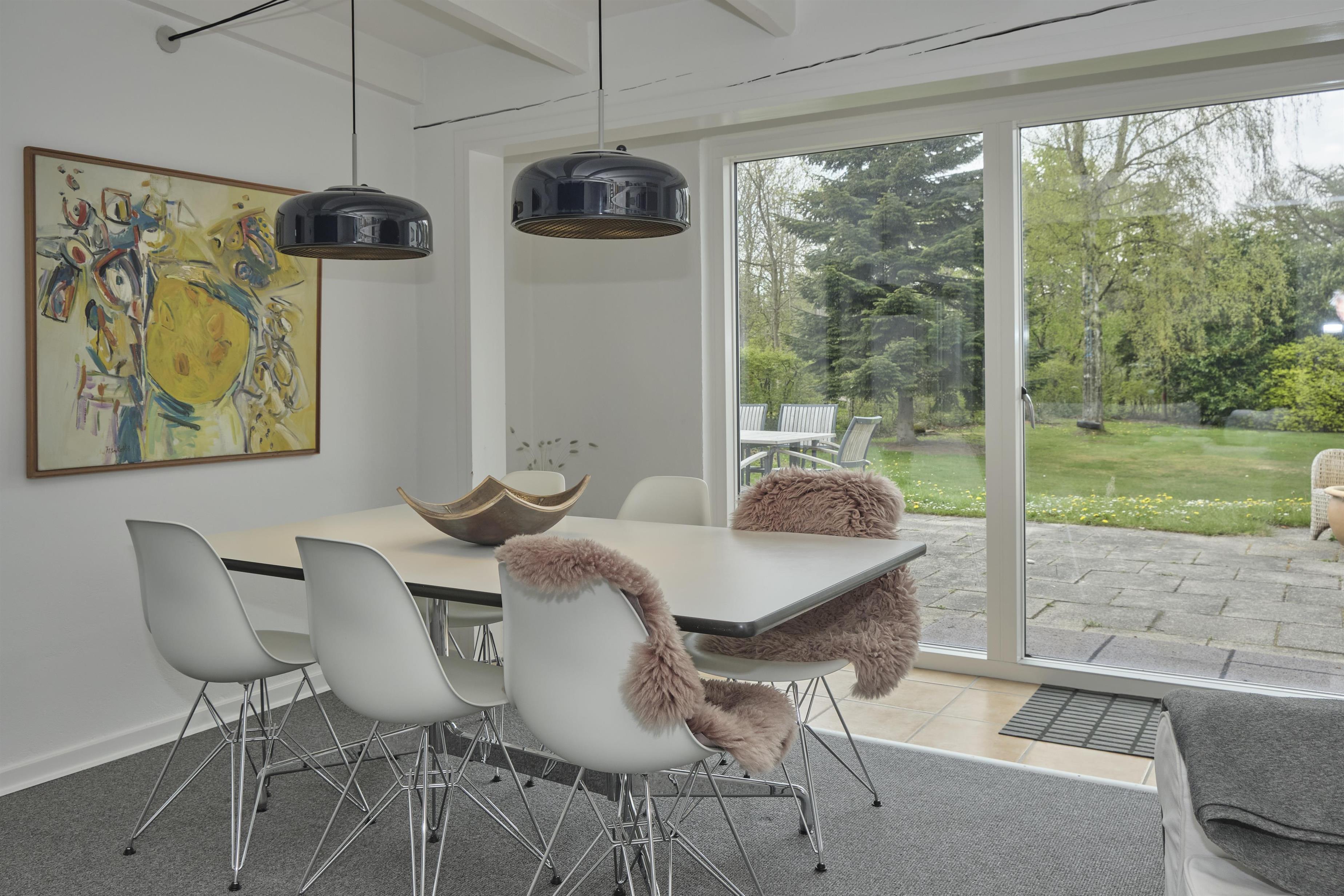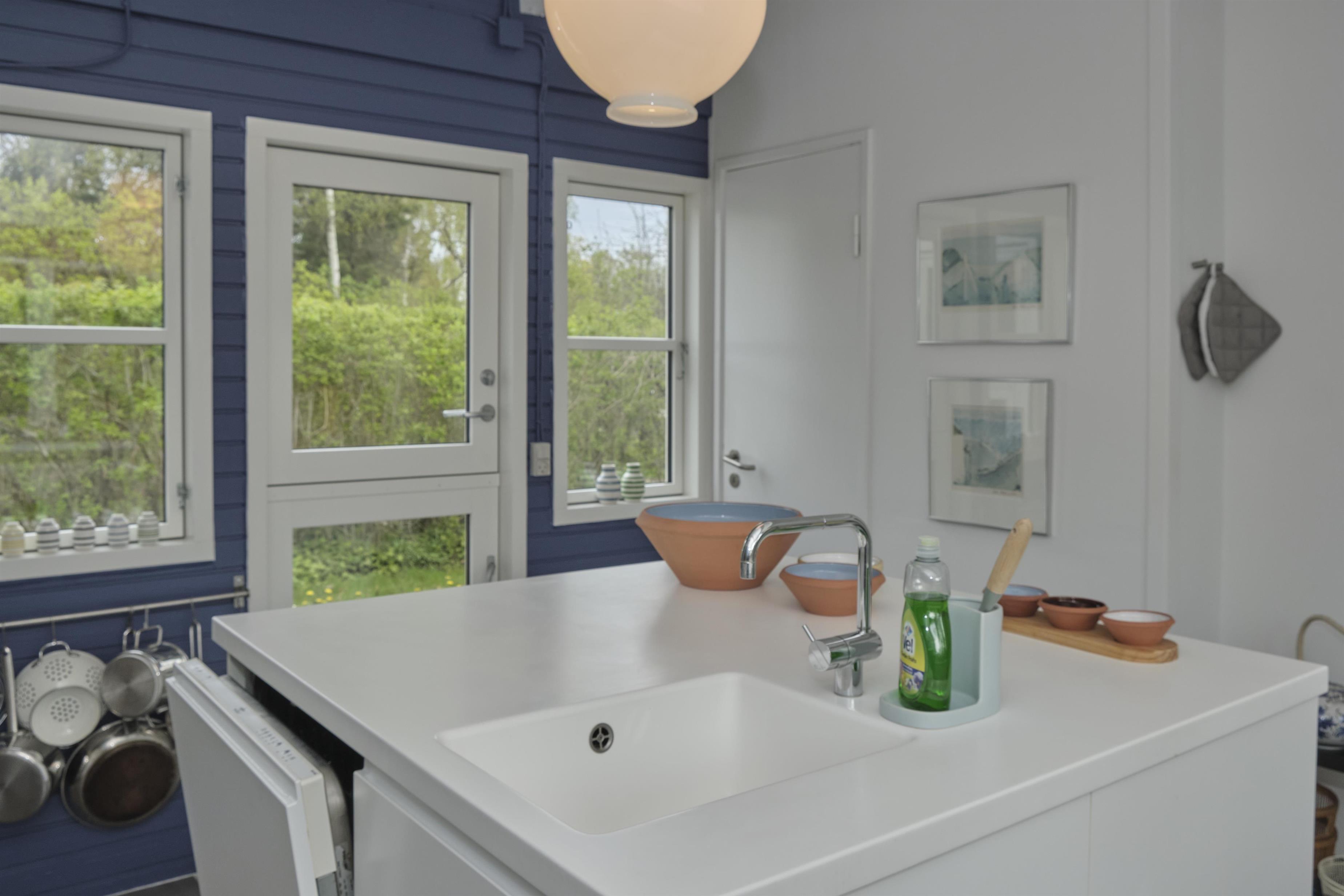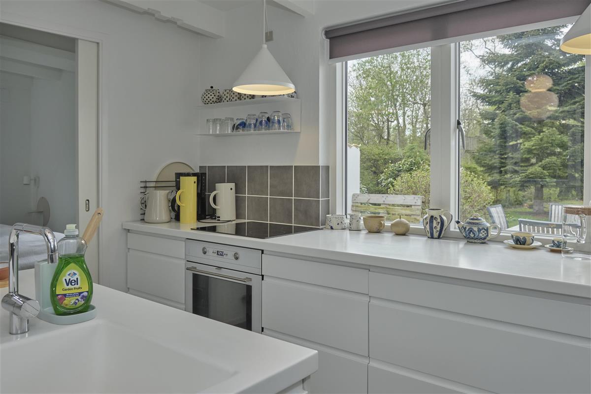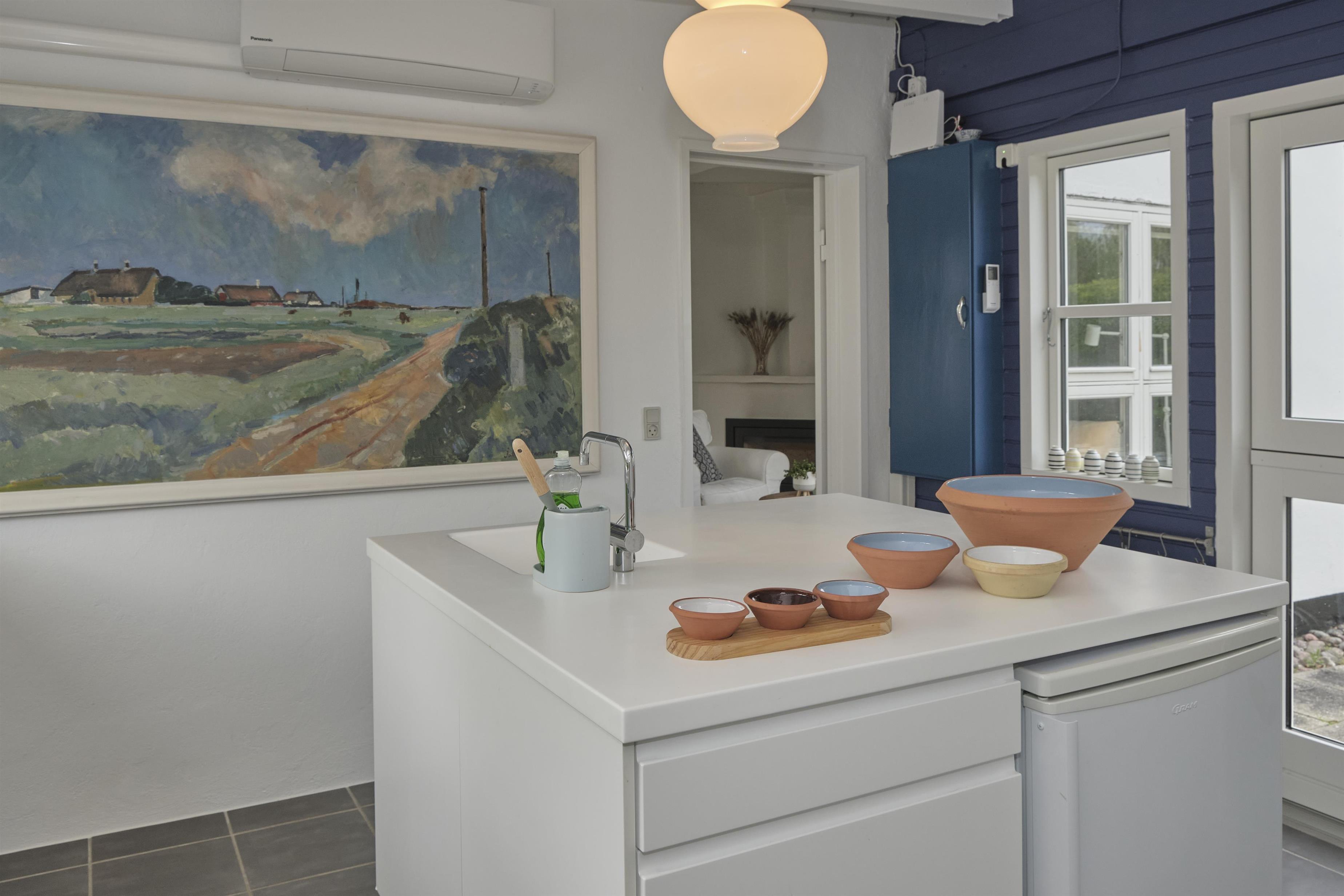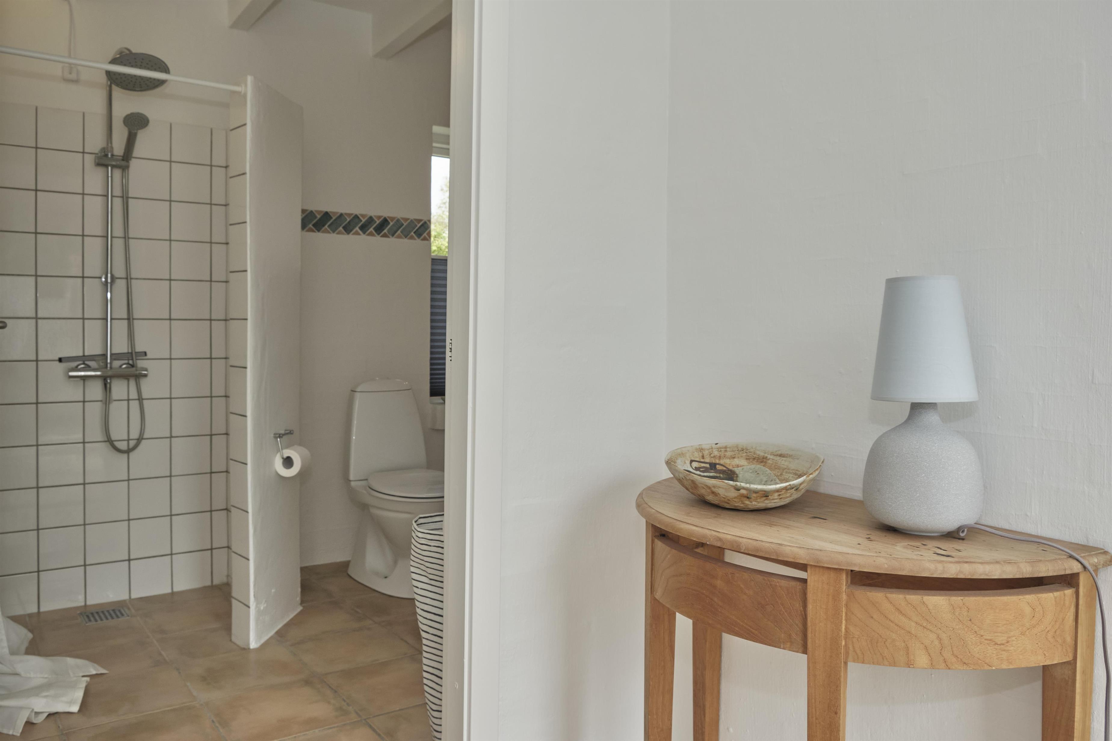 The large, bright, and well-furnished living room has a corner fireplace, dining area for 6 people, and a television with Danish (including TV2) and German channels. Like the rest of the house, there are beautiful, rustic ceilings with visible bearing beams. From the living room, there is access to a delightful, bright kitchen with ceramic hobs, oven, fridge/freezer, and dishwasher. The house's 6 sleeping places are distributed among 3 lovely rooms - a large, beautiful bedroom with a double bed, 1 room with 2 single beds, and 1 room with a bunk bed. Bright and spacious bathroom with a shower, as well as a good, newer tiled bathroom with a shower and washing machine. A very well-maintained and tastefully decorated house with lots of coziness and atmosphere. Internet access is available.