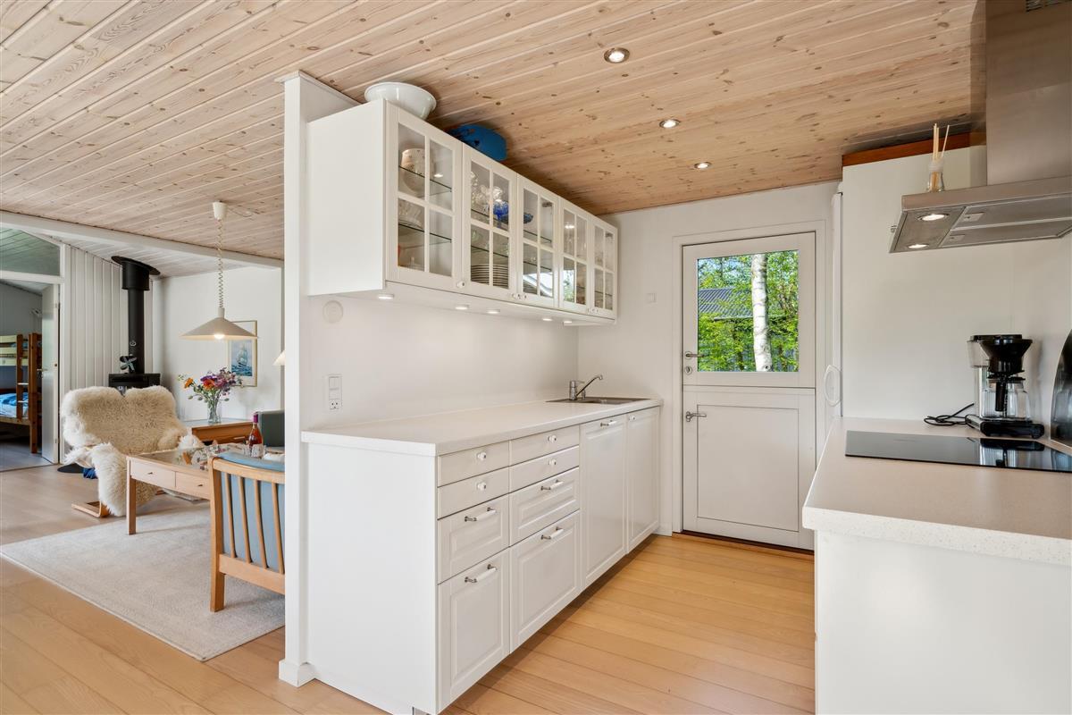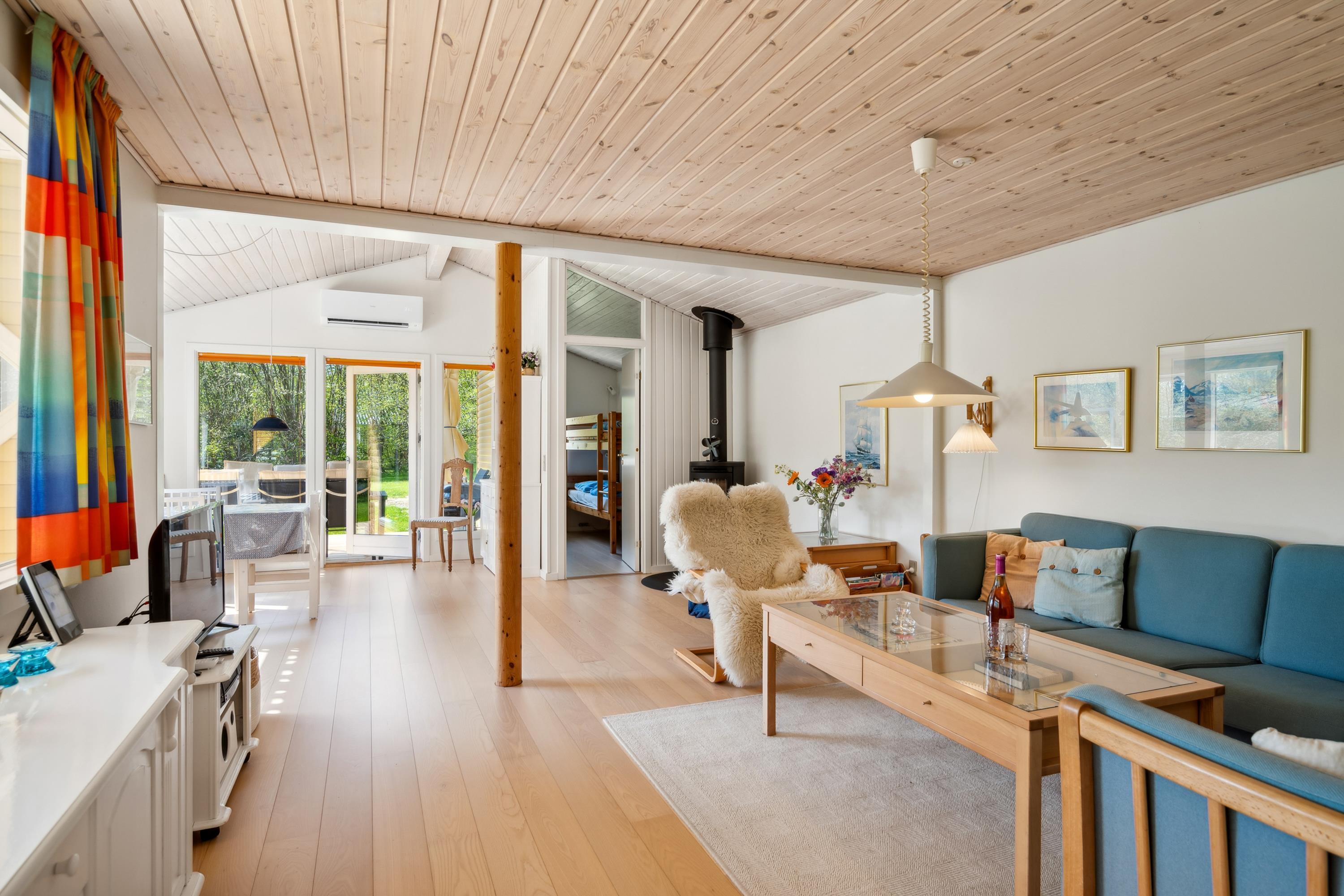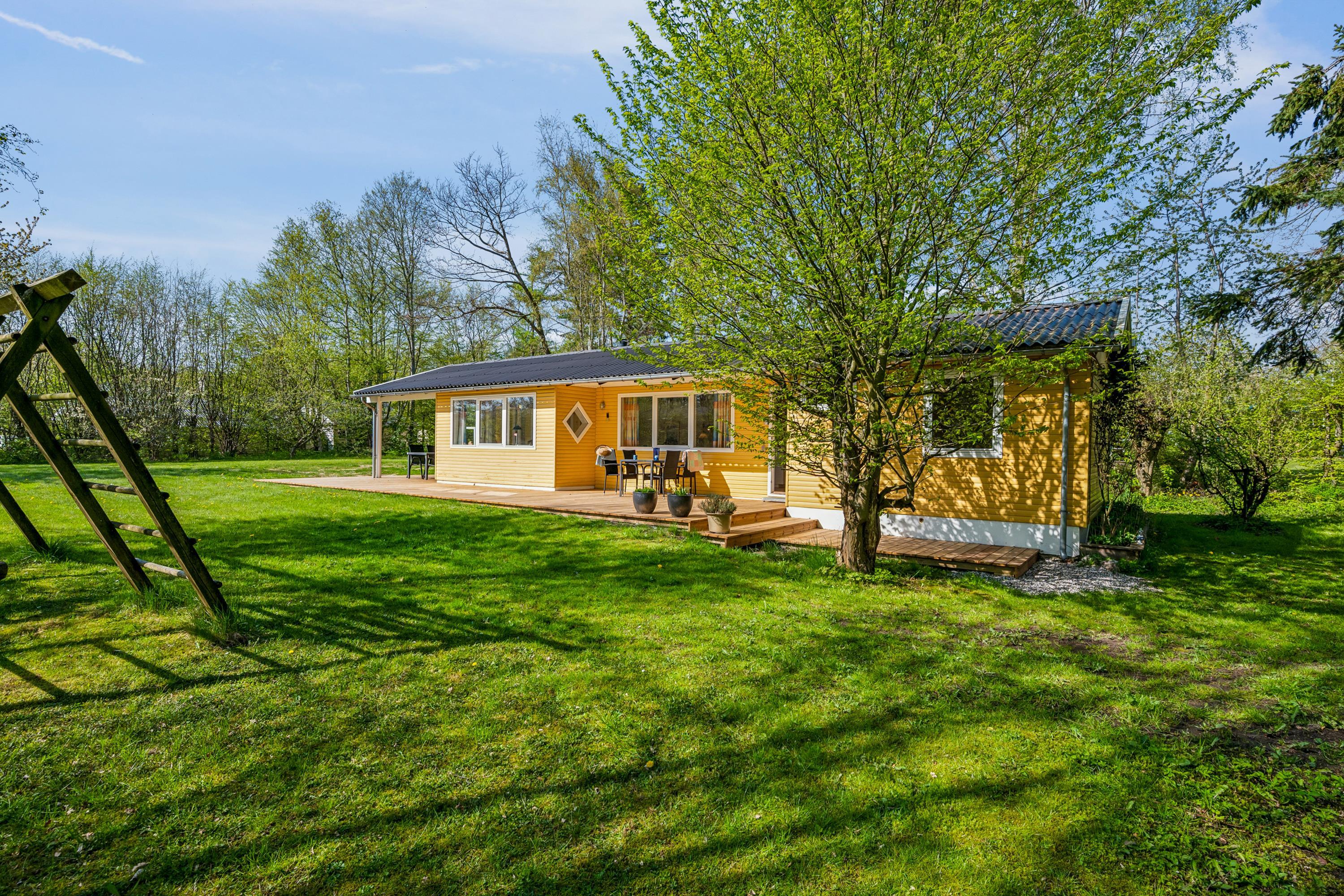 Not far from Ebeltoft and close to a really good beach, you'll find this cozy and very well-maintained holiday home. Here, you're welcomed into a cozy and well-furnished living room with a wood-burning stove and heat pump, and with access to a nice covered terrace with garden furniture. Lovely kitchen area with, among other things, a dishwasher and access to the terrace. The sleeping arrangements in the house are in three good bedrooms, one with a double bed, one with bunk beds, and one with a bunk bed and a single bed. Large and spacious bathroom with a shower and underfloor heating. Outside the house, there's both an open and a covered terrace with garden furniture, and the house is situated on a lovely plot with a lawn, suitable for play and ball games, as well as outdoor relaxation. For the little holiday guests, there's a swing set.