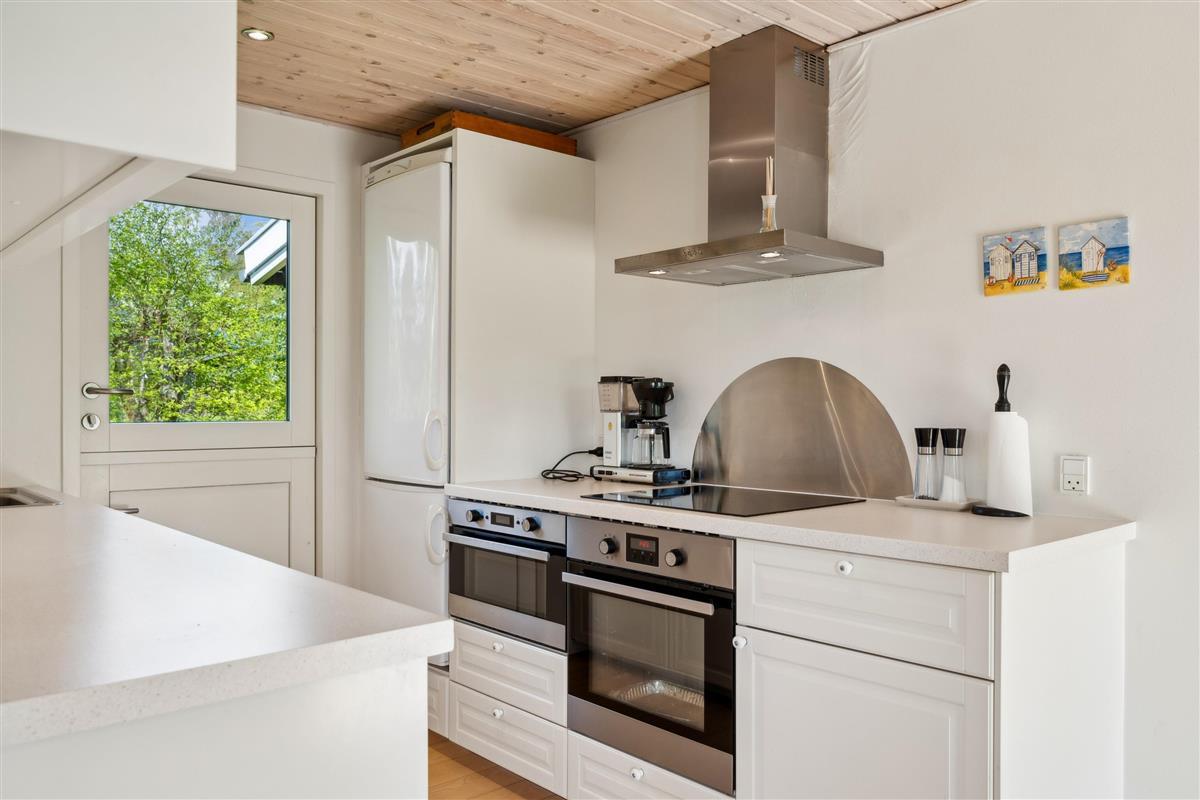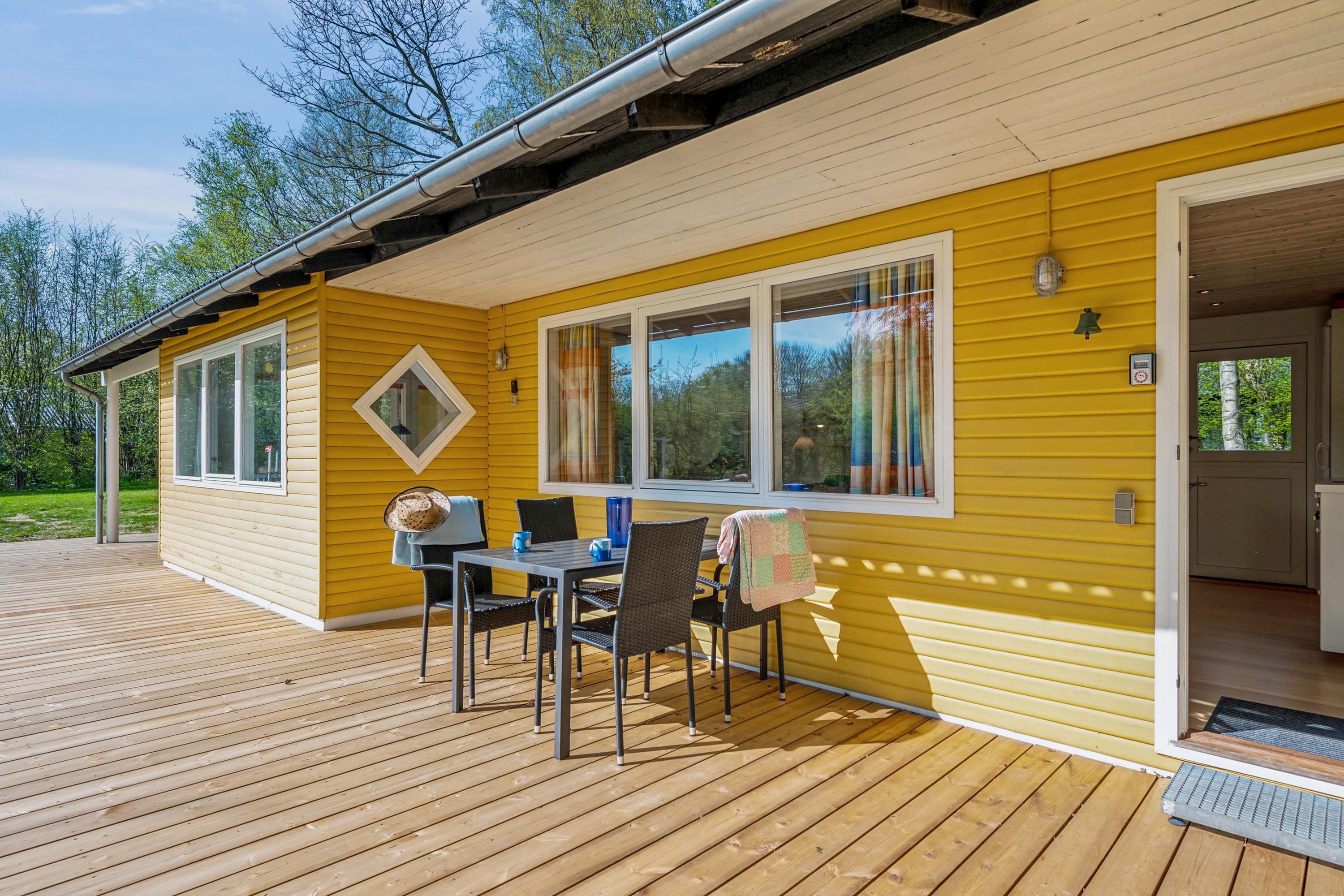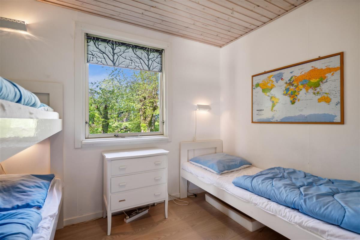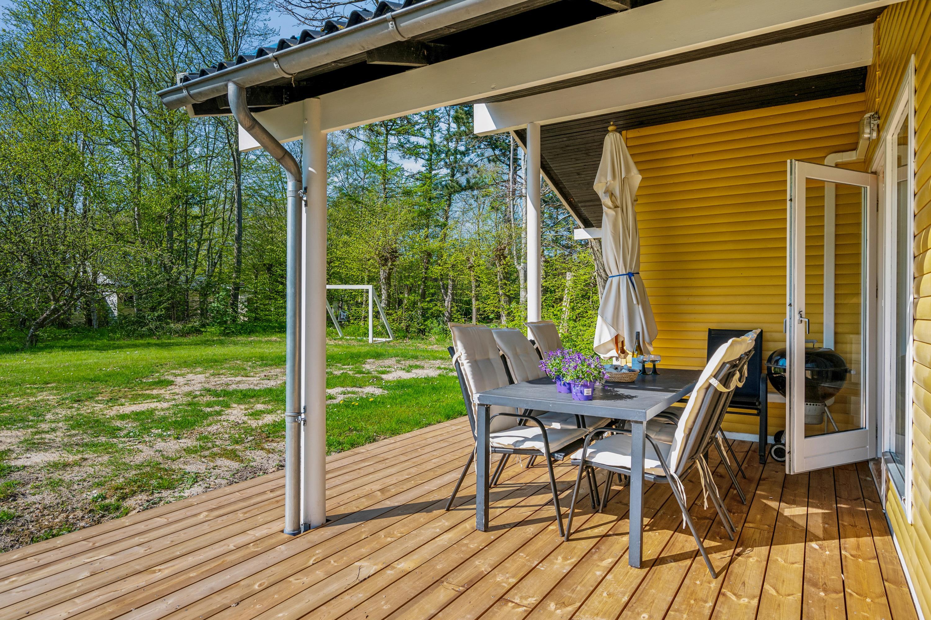 Not far from Ebeltoft and close to a really good beach, you'll find this cozy and very well-maintained holiday home. Here, you're welcomed into a cozy and well-furnished living room with a wood-burning stove and heat pump, and with access to a nice covered terrace with garden furniture. Lovely kitchen area with, among other things, a dishwasher and access to the terrace. The sleeping arrangements in the house are in three good bedrooms, one with a double bed, one with bunk beds, and one with a bunk bed and a single bed. Large and spacious bathroom with a shower and underfloor heating. Outside the house, there's both an open and a covered terrace with garden furniture, and the house is situated on a lovely plot with a lawn, suitable for play and ball games, as well as outdoor relaxation. For the little holiday guests, there's a swing set.