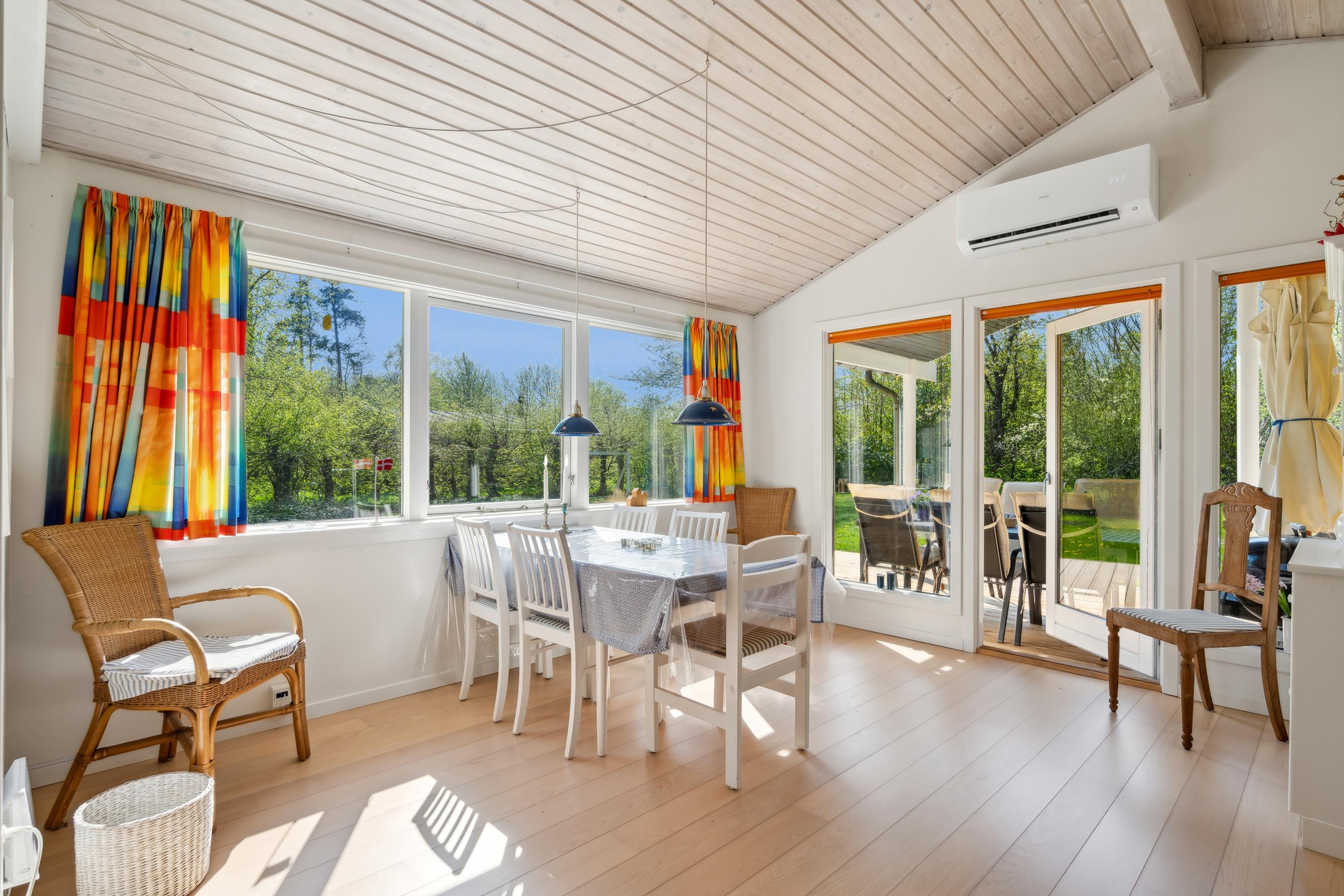 Ahl Strand is a quiet and extremely child-friendly area. The beach is characterized by white sandy beaches and shallow water with sandbanks, so the little ones can safely bathe. Additionally, the beach is a popular spot for windsurfers. The house is located about a 10-minute drive from the town of Ebeltoft with its cozy old cobblestone streets. Here, you'll find many small specialty shops, cafes, and several good restaurants on the harbor, along with the Glass Museum, the Old Town Hall, and the Frigate Jylland, all of which are worth a visit. And you shouldn't miss a visit to Djurs Sommerland, which is Northern Europe's largest amusement park with activities for both adults and children. From the house, it's about a couple of kilometers to a nice mountain bike track, where a 13 km long route has been laid out.