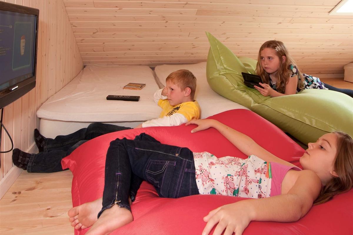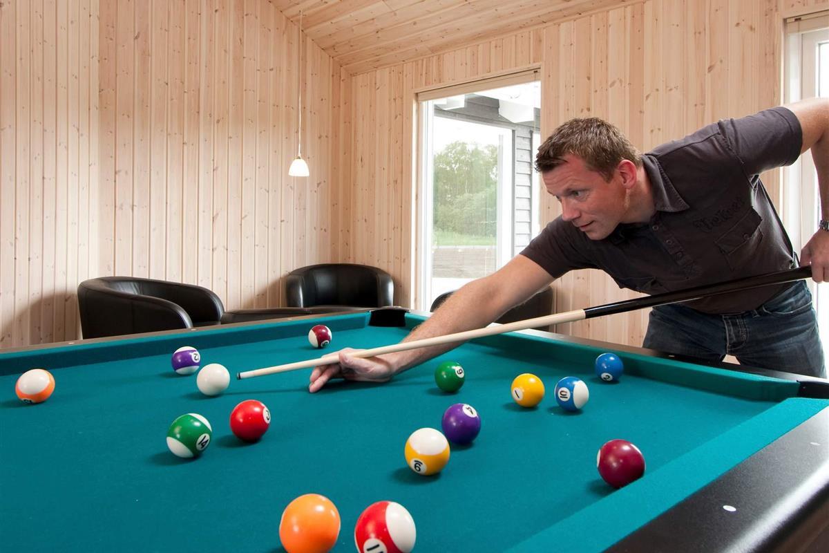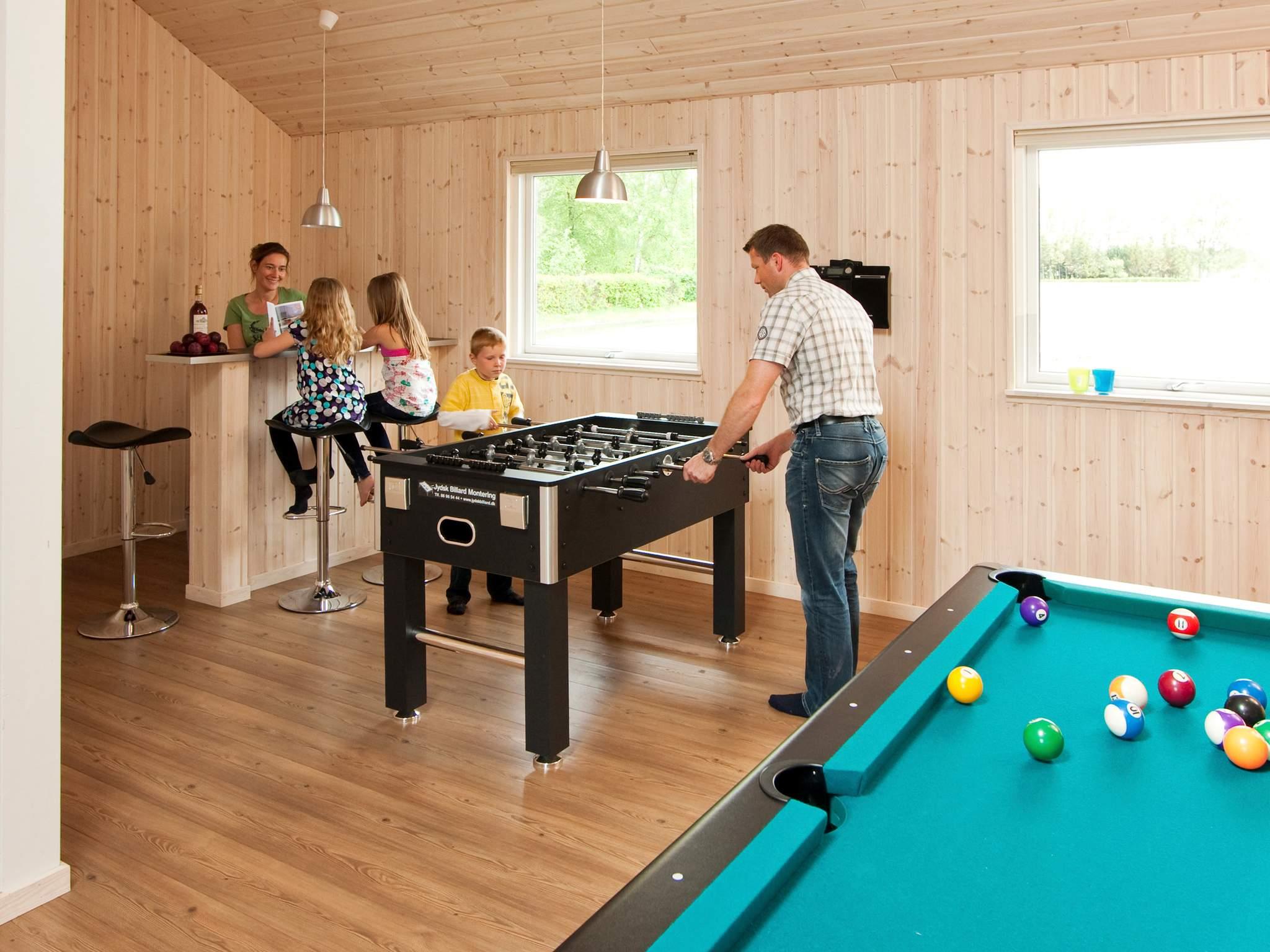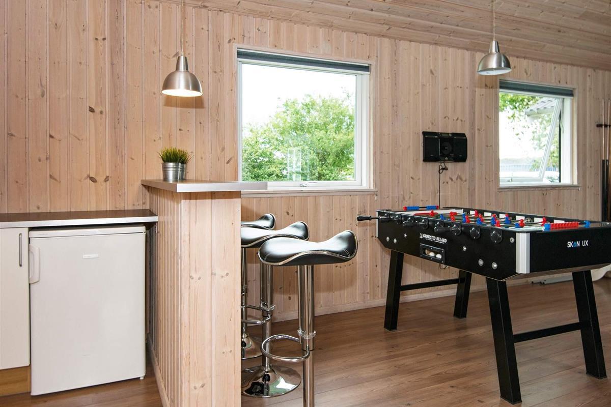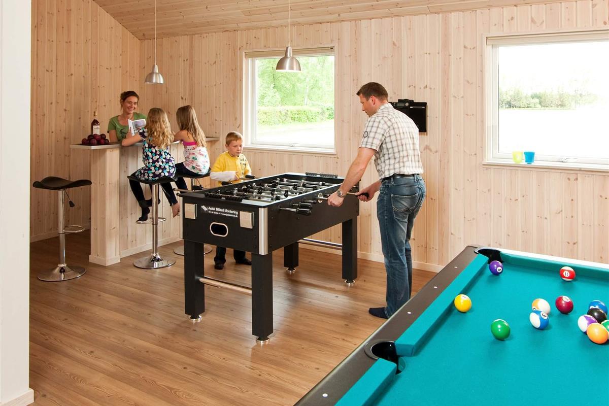 Gegenüber des zentral gelegenen Ess-/Aufenthaltsbereich erwartet Sie ein Aktivitätsraum mit Bartheke und Musikanlage. Außerdem können Sie hier Dart, Poolbillard, Tischtennis und Tischfußball spielen. PlayStation2 und 4 sind ebenfalls im Haus vorhanden (ohne Spiele). Kinder können draußen schaukeln und im Sandkasten buddeln, während Sie schöne Sonnenstunden oder gemütliche Grillabende auf der großen, offenen Sonnenterrasse verbringen.