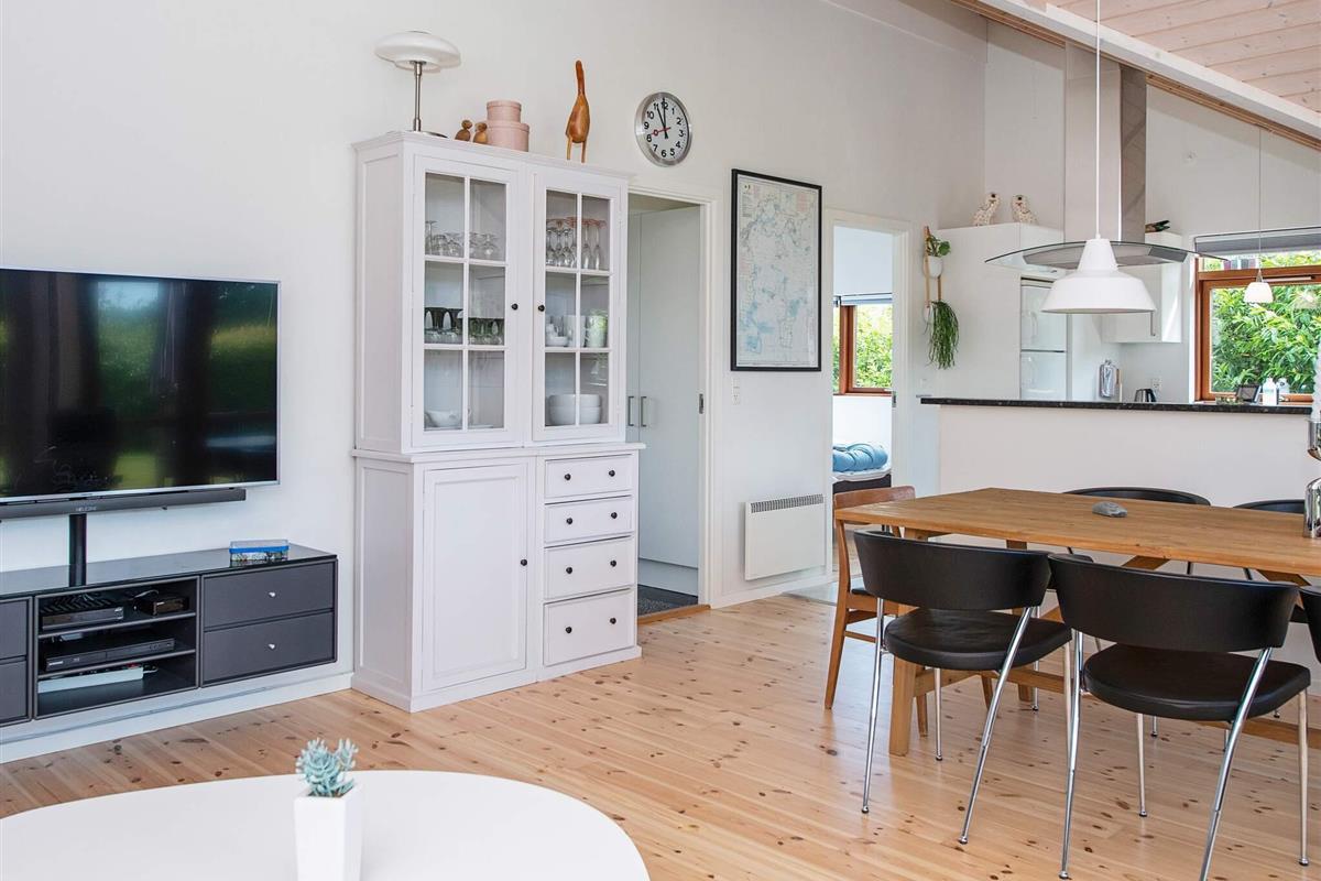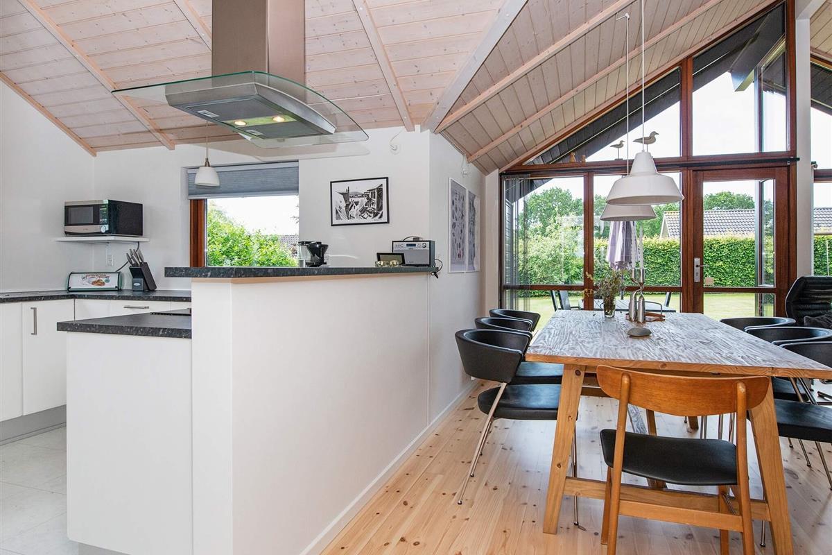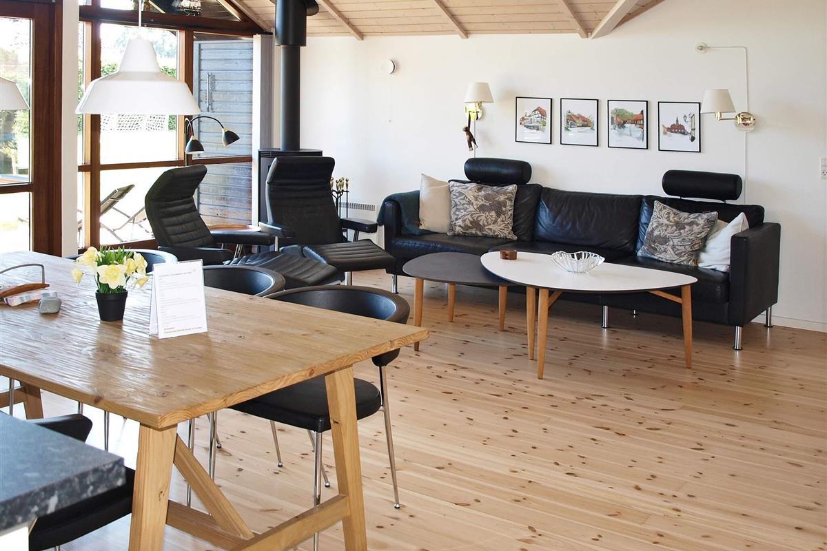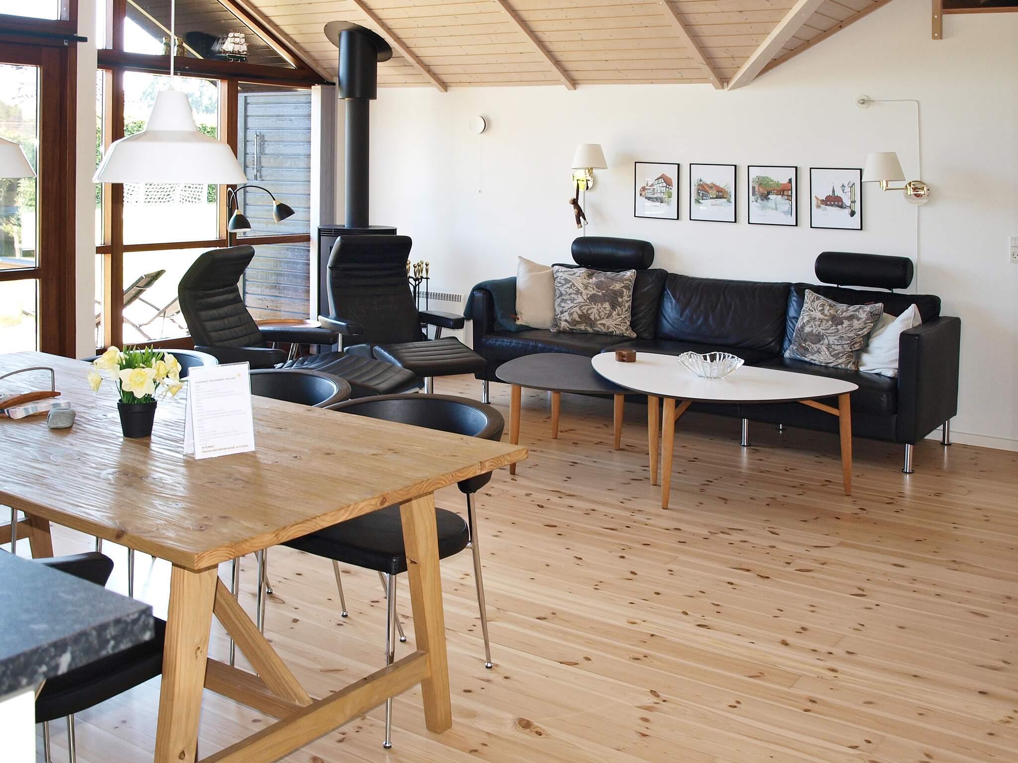 Das Ferienhaus wurde aus hochwertigen Materialien erbaut und bietet drei Schlafzimmer mit Betten sowie einen Hems mit zwei guten Matratzen. Die Küche ist offen mit dem Wohnzimmer kombiniert, so dass die Gespräche auch beim Kochen nicht unterbrochen werden. Ein Holzofen sorgt für gemütliche Wärme und ein DAB RAdio für Unterhaltung. Unbegrenzter Internetzugang. Zudem Playstation4 im Haus - Spiele sind mitzubringen.