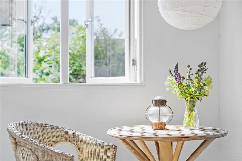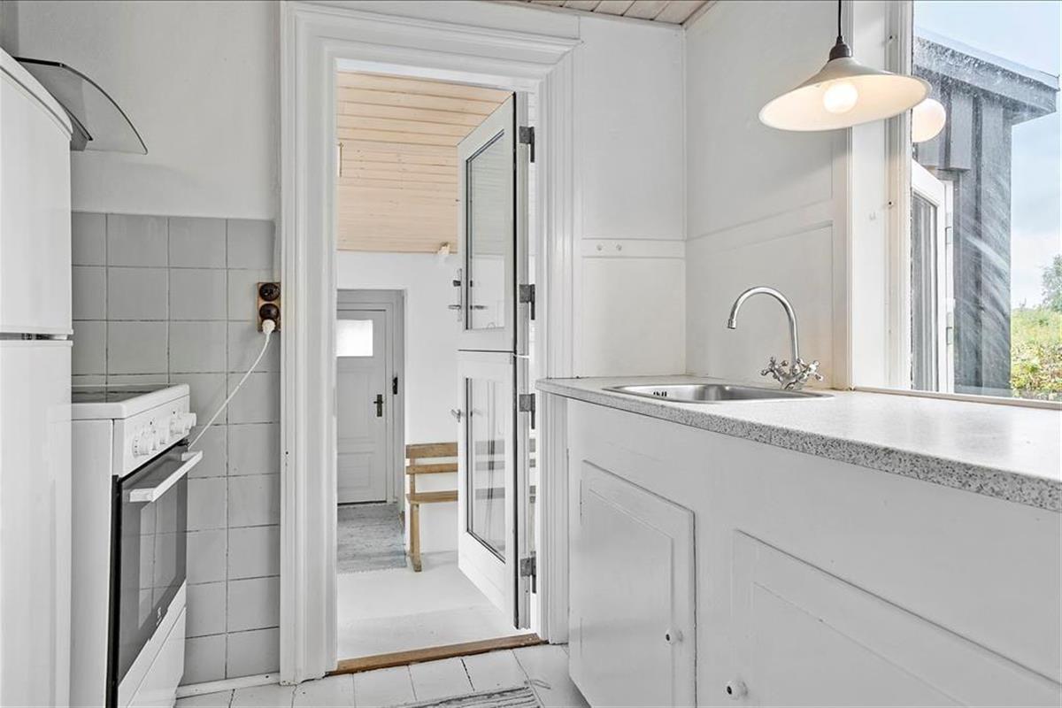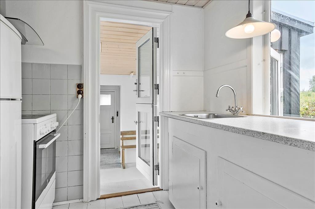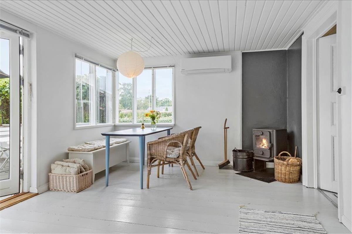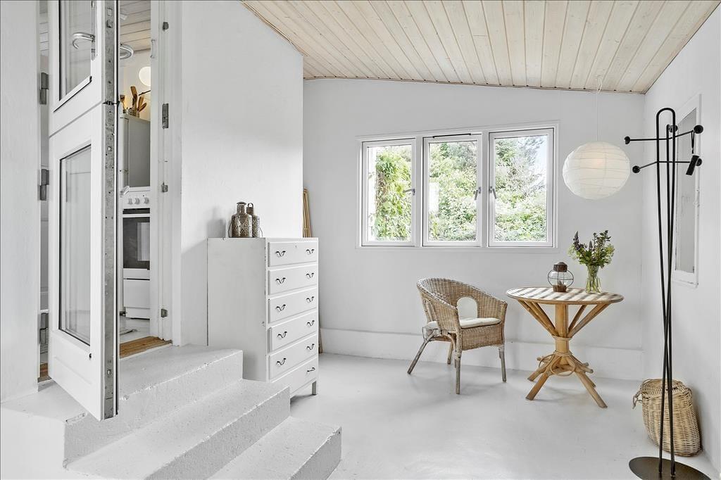Binnen vindt u een knusse woonkamer met grote ramen die veel licht binnenlaten, een houtkachel voor extra warmte, en een functionele inrichting met een slaapbank en aparte slaapruimtes. Buiten kunt u ontspannen op één van de twee terrassen, ideaal voor zowel zonnige dagen als avondzon. De locatie is perfect, slechts 150 meter van het strand, en dicht bij lokale eetgelegenheden zoals Norsminde fiskehus.