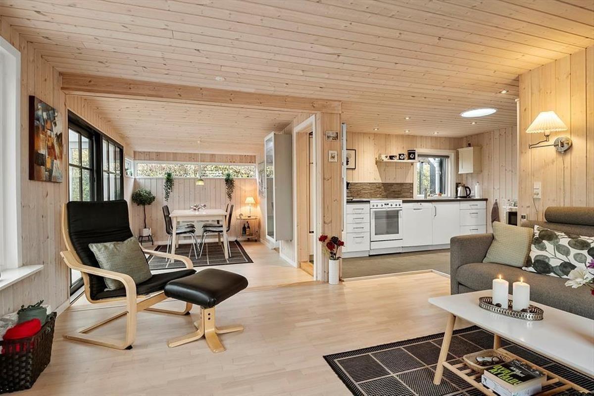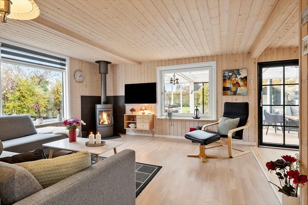 Drinnen erwartet dich ein helles und einladendes Ferienhaus, in dem große Fenster viel Tageslicht hineinlassen und eine natürliche Verbindung zur Umgebung schaffen. Der Wintergarten bildet einen weichen Übergang zwischen innen und außen und wird schnell zu einem Ort, an dem ihr euch im Laufe des Tages immer wieder trefft. Vielleicht mit einer Tasse Tee, einem Spiel, einem Gespräch oder einer ruhigen Minute mit einem Buch. Küche und Wohnzimmer sind miteinander verbunden, sodass gemeinsame Momente und Alltagshandlungen ganz selbstverständlich ineinander übergehen. In den drei Schlafzimmern sorgt die schlichte, freundliche Atmosphäre für die Ruhe, die du brauchst. Es ist leicht, hier anzukommen und sich von Anfang an wohlzufühlen.