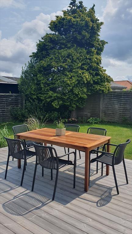 Draußen können Sie das Leben in vollen Zügen genießen. Die große Terrasse und der weitläufige Garten sind perfekt für Entspannung an langen Sommertagen. Beginnen Sie den Tag mit einem ruhigen Frühstück im Freien und lassen Sie sich von der Sonne erwärmen, während Sie Ihre Abenteuer für den Tag planen. Wenn die Sonne hoch am Himmel steht, ist es Zeit, einen Ausflug zum Strand zu machen, der nur einen kurzen Spaziergang entfernt ist. Oder vielleicht möchten Sie sich einfach auf der Terrasse mit einem guten Buch entspannen und den Urlaub in seinem eigenen Tempo entfalten lassen. Der eingezäunte Garten bietet sowohl Entspannungs- als auch Spielmöglichkeiten, und am Abend können Sie unter dem dänischen Sommerhimmel ein Abendessen im Freien genießen.