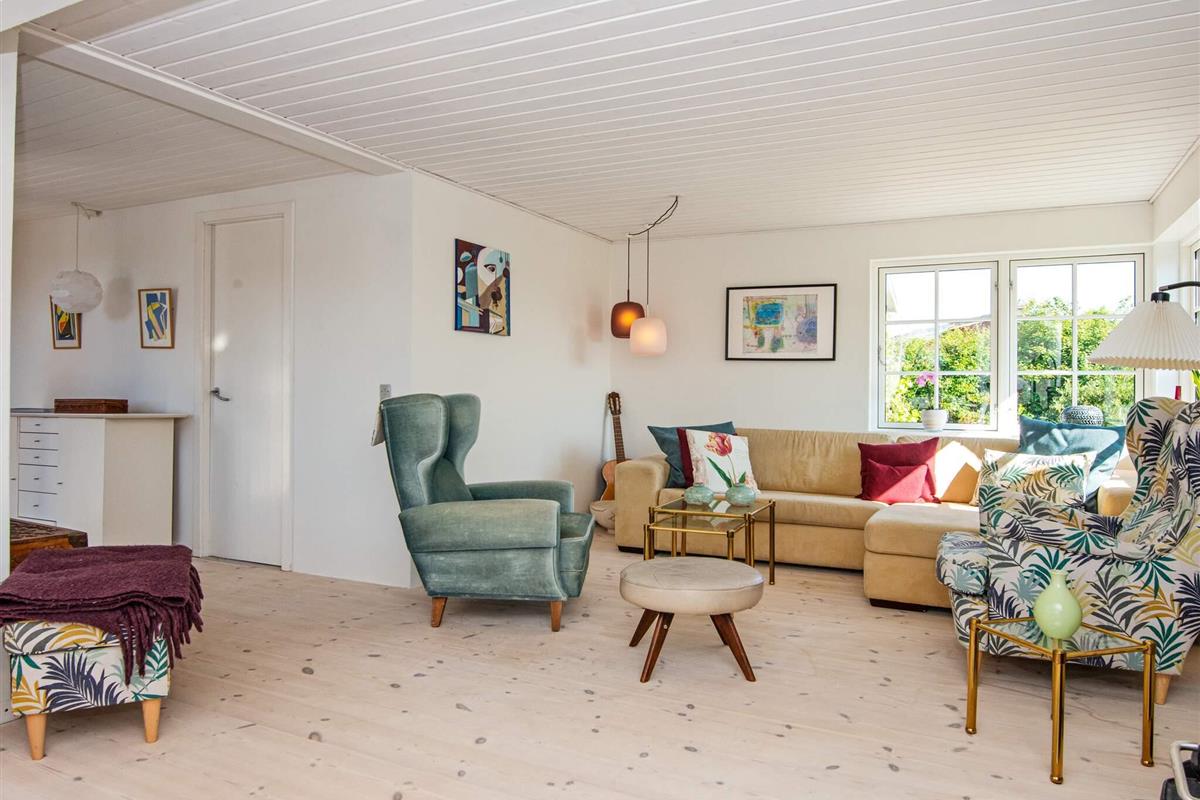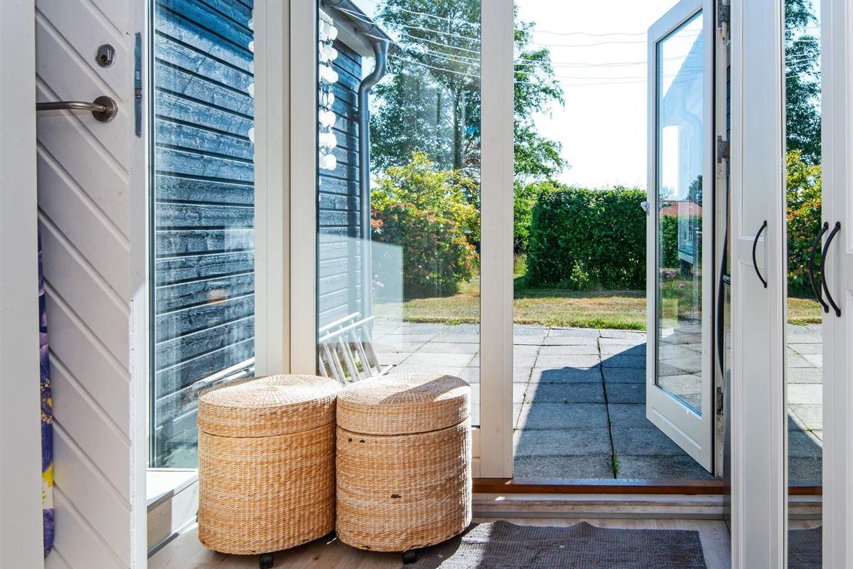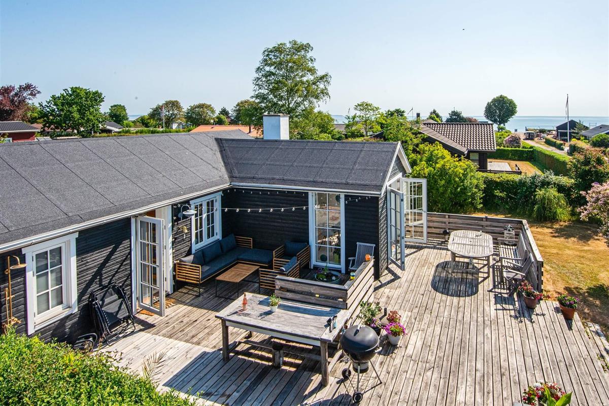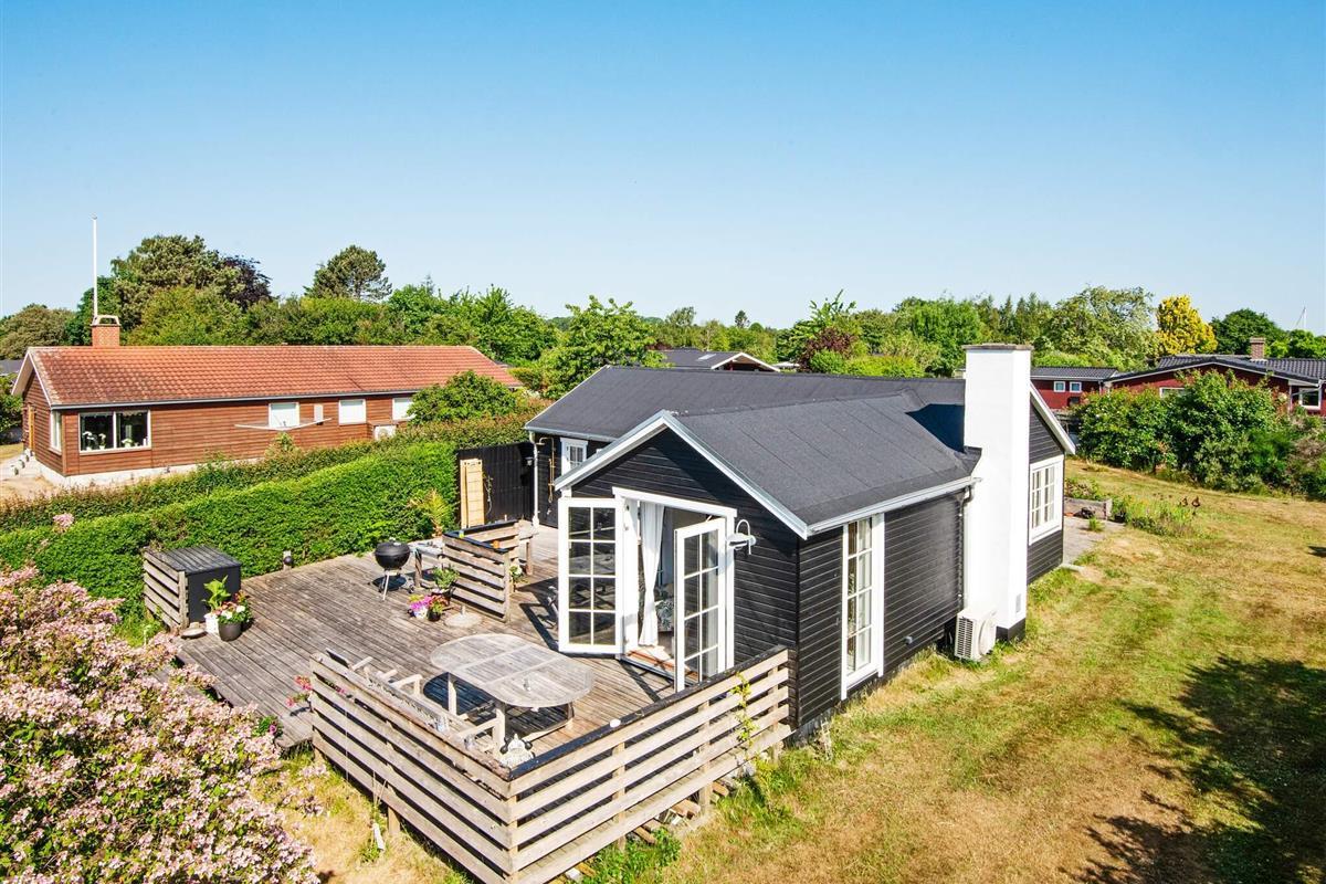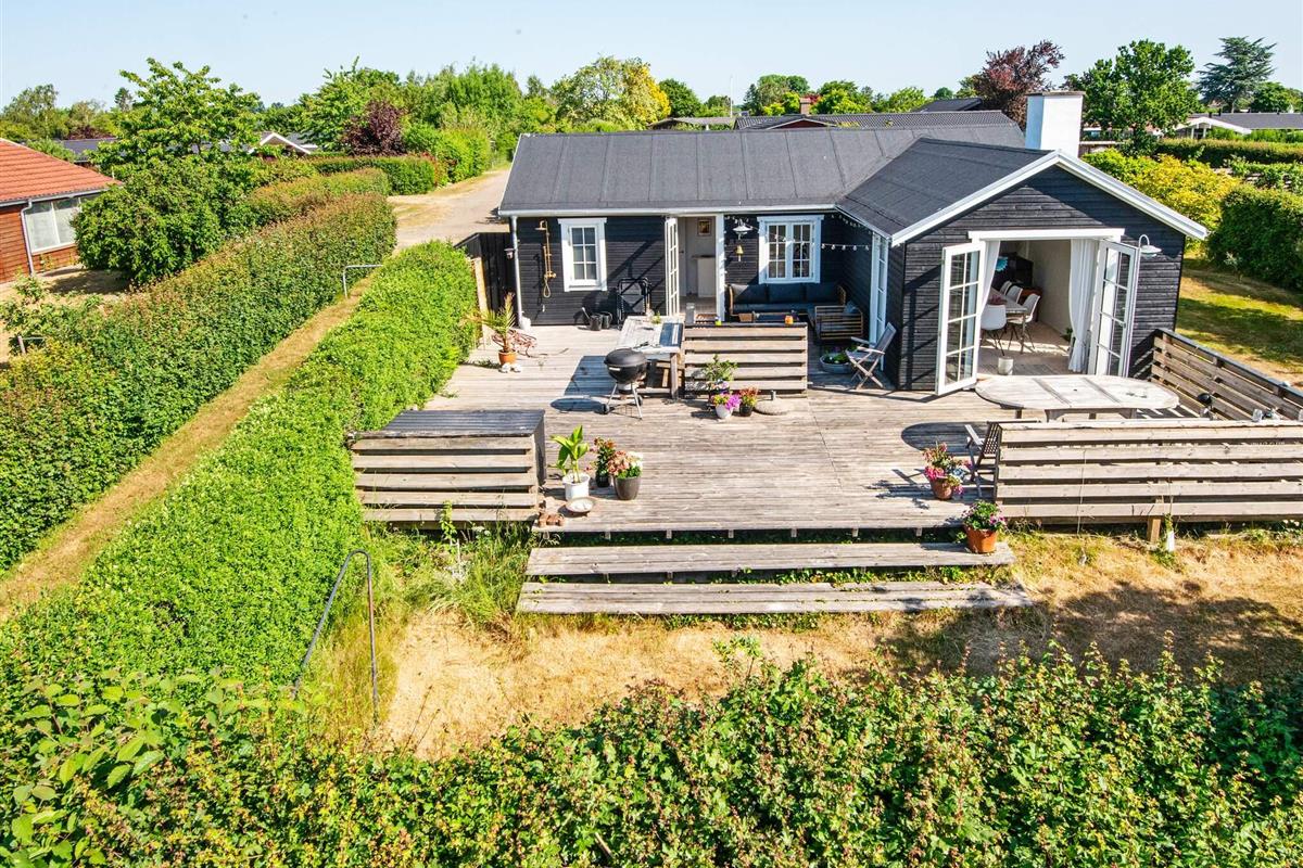 Das Haus ist über die Straße Hybenvænget erreichbar. Am Ende der Straße biegt man auf das Grundstück ab, was eine ruhige und private Lage gewährleistet. Die Lage verbindet den Charme der umliegenden Natur mit einfachem Zugang zum ruhigen Strand und den Wassersportmöglichkeiten und macht es zum idealen Ort für einen Familienurlaub.