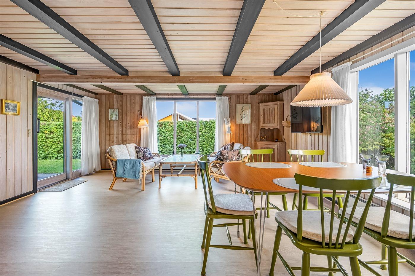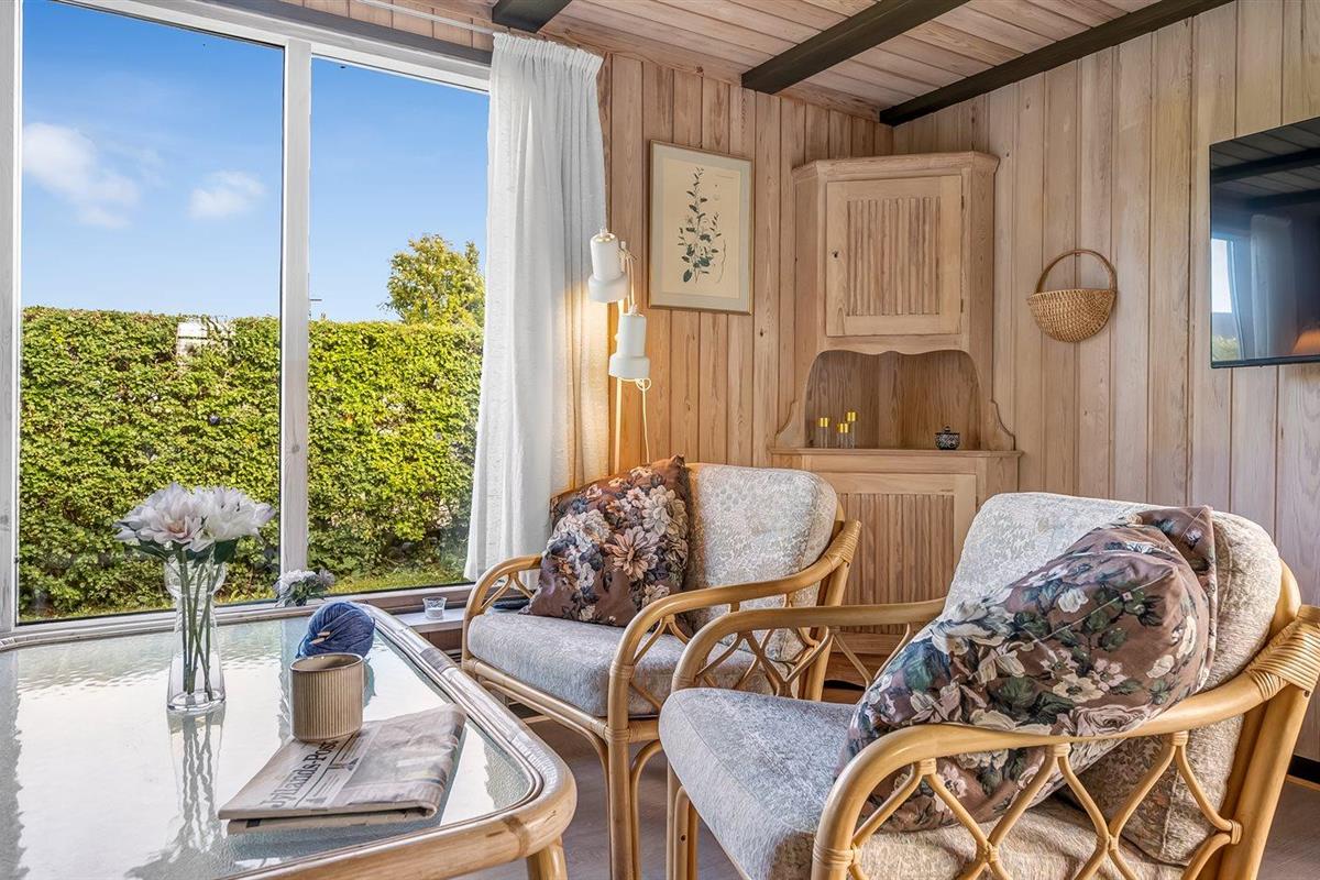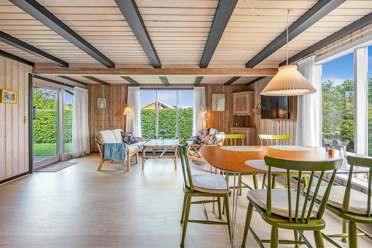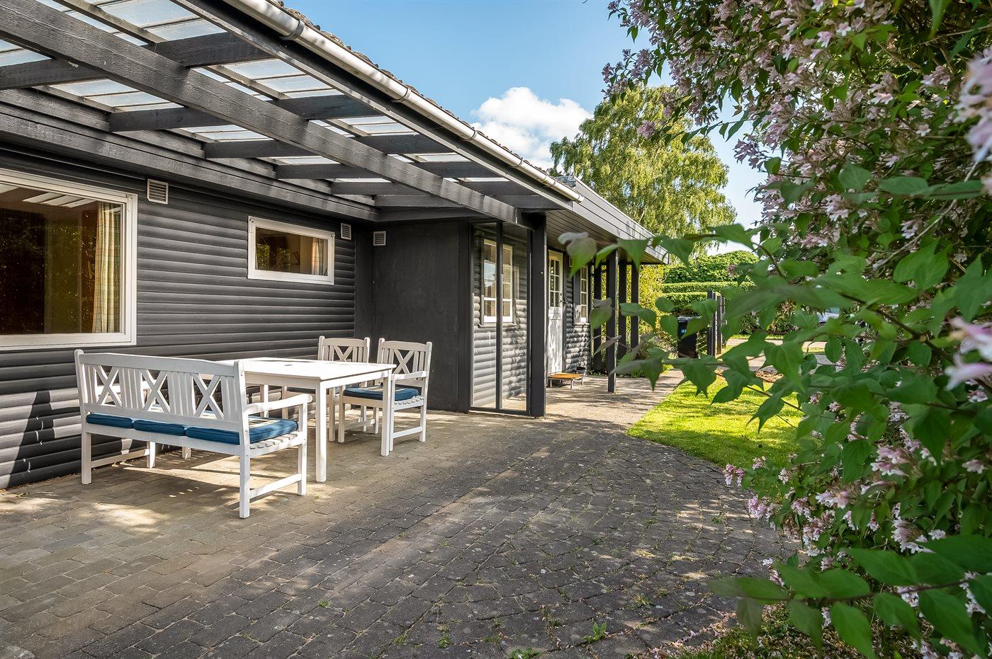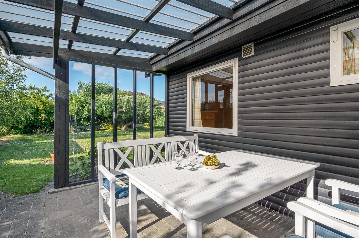Knus vakantiehuisje met tuin en overdekt terras, slechts 75 m van zee in Malling, Denemarken.