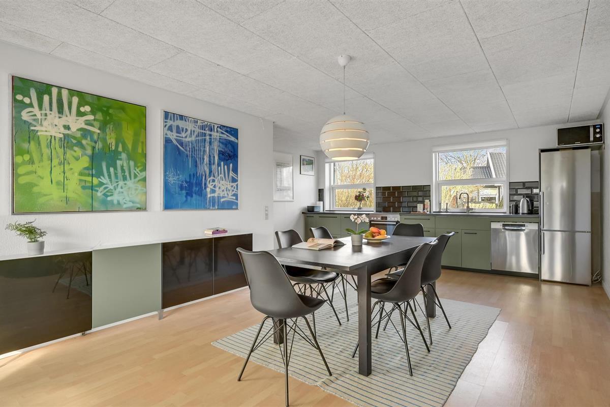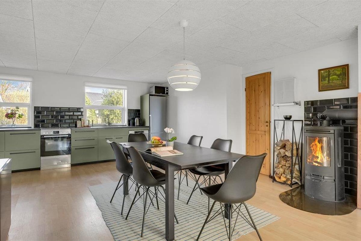 Verheug u op uw ontspannende vakantie in dit uitnodigende vakantiehuis in Ajstrup Strand. De lichte kamers van de accommodatie zijn bijzonder uitnodigend en beloven u een fantastische tijd met koken in de moderne keuken in de open woonkamer, entertainment en ontspanning op de bank en lange spelduels aan de eettafel. Op kille dagen kunt u hier nog een schepje bovenop doen door een verwarmende open haard aan te steken en te genieten van de huiselijke sfeer.