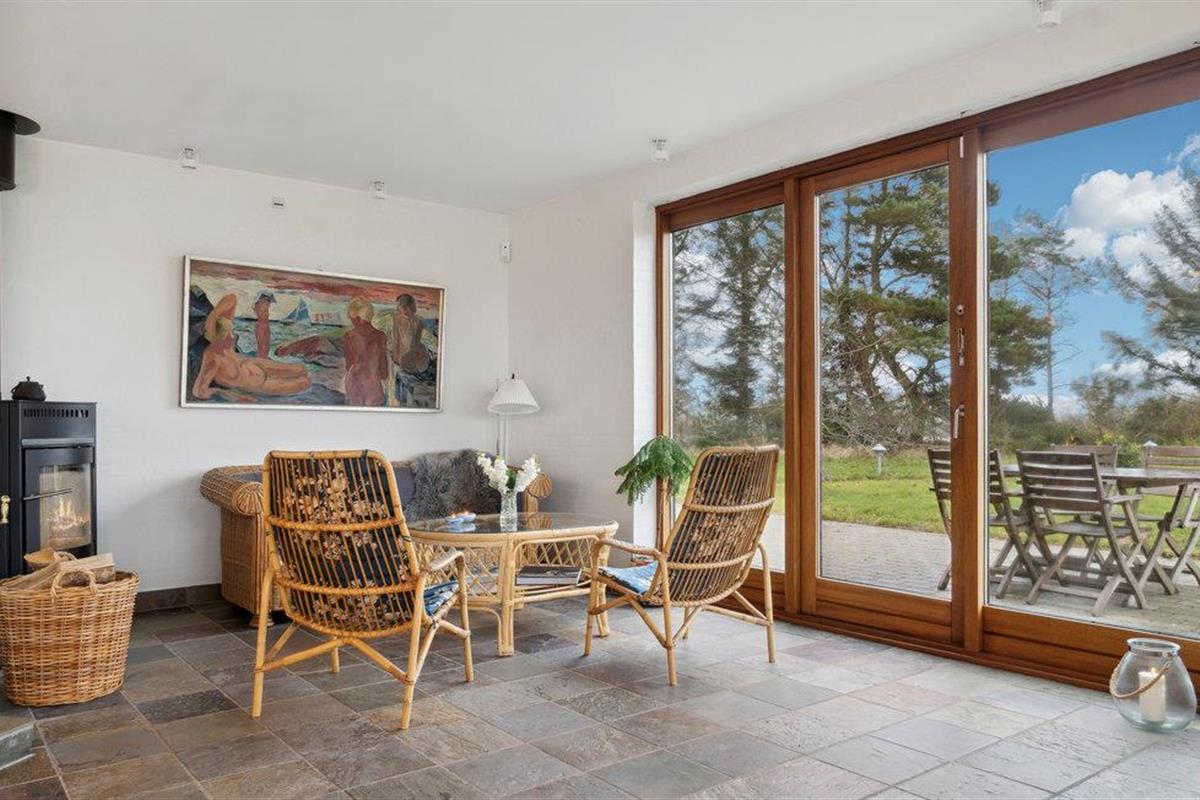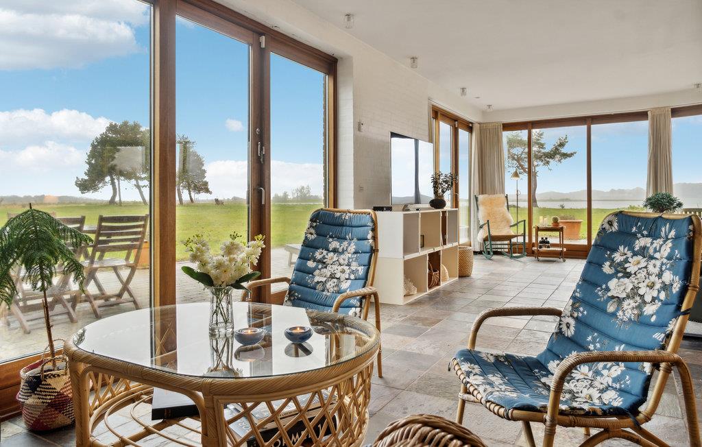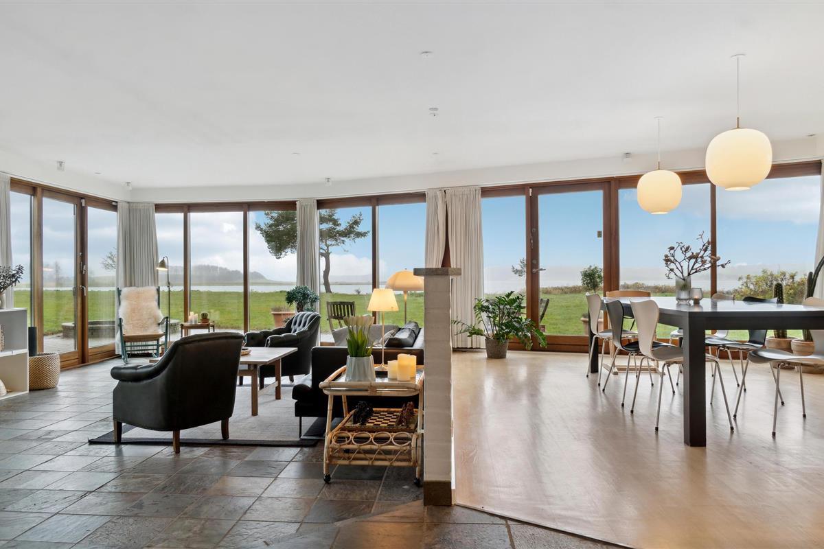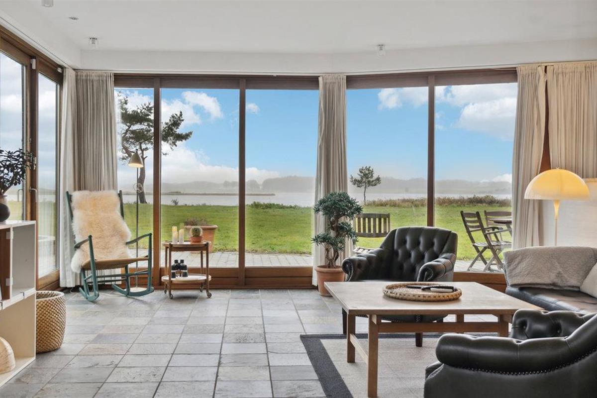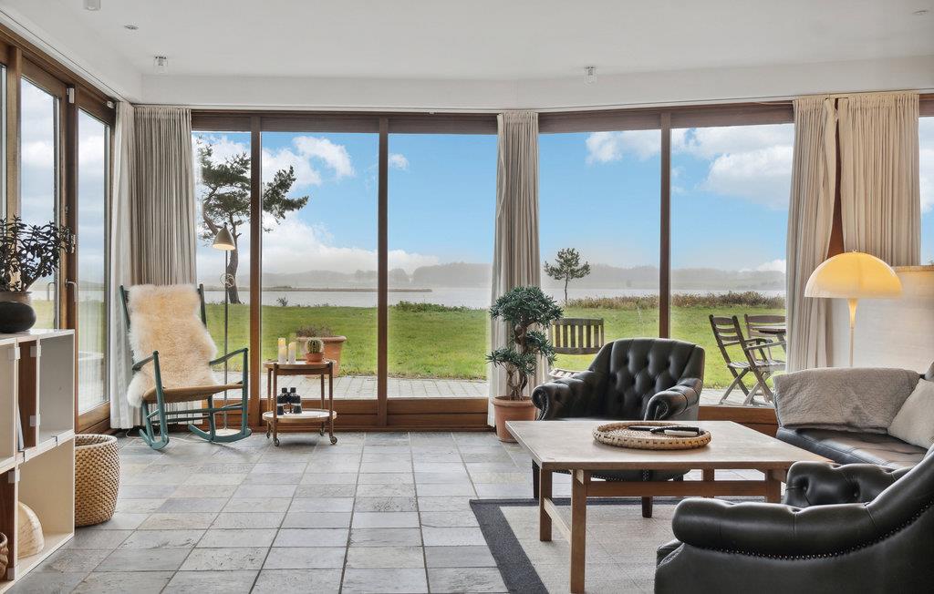 Met een prachtig panoramisch uitzicht op de Norsminde Fjord heet dit ruime vakantiehuis je welkom.