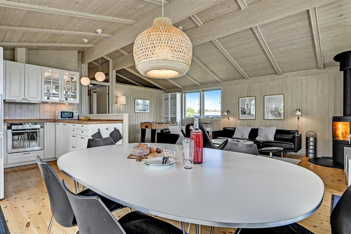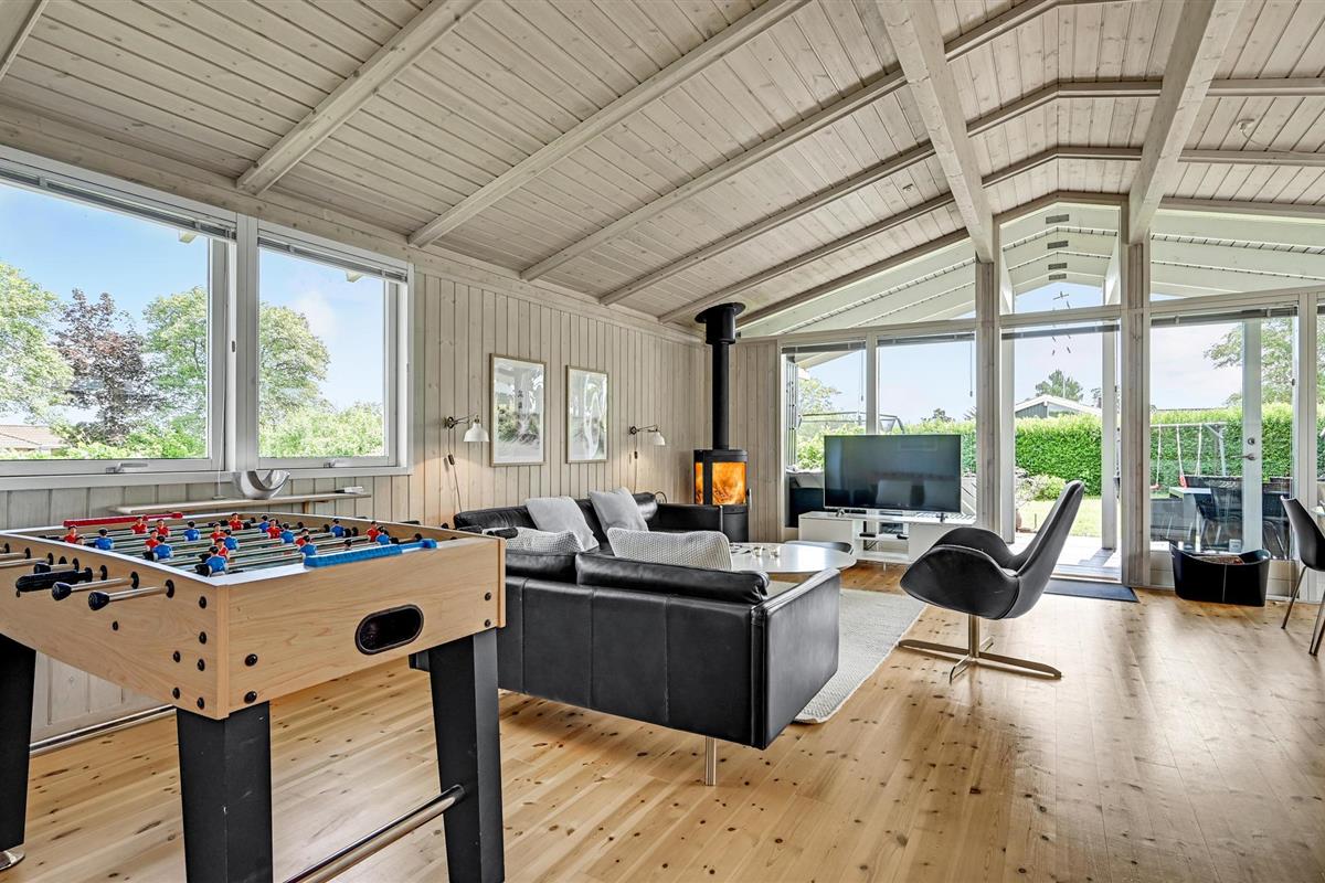 Het huis heeft een gezellige en zeer lichte woonkamer met tafelvoetbal, houtkachel, bankgroep en eethoek, die in open verbinding staat met de modern uitgeruste keuken. In de mooie slaapkamers, op de open zolder en in het bijgebouw vindt u verschillende gezellige slaapplaatsen. Er is ook een whirlpool en sauna in het huis voor wellness en warmte op koelere dagen. Het strand ligt op slechts 1 minuut lopen, heeft een zwemsteiger en is bekroond met de blauwe vlag.