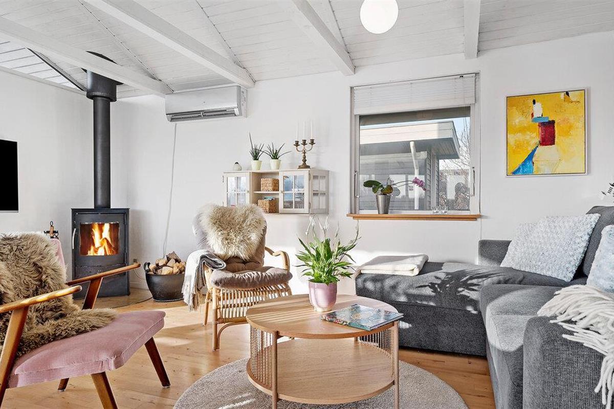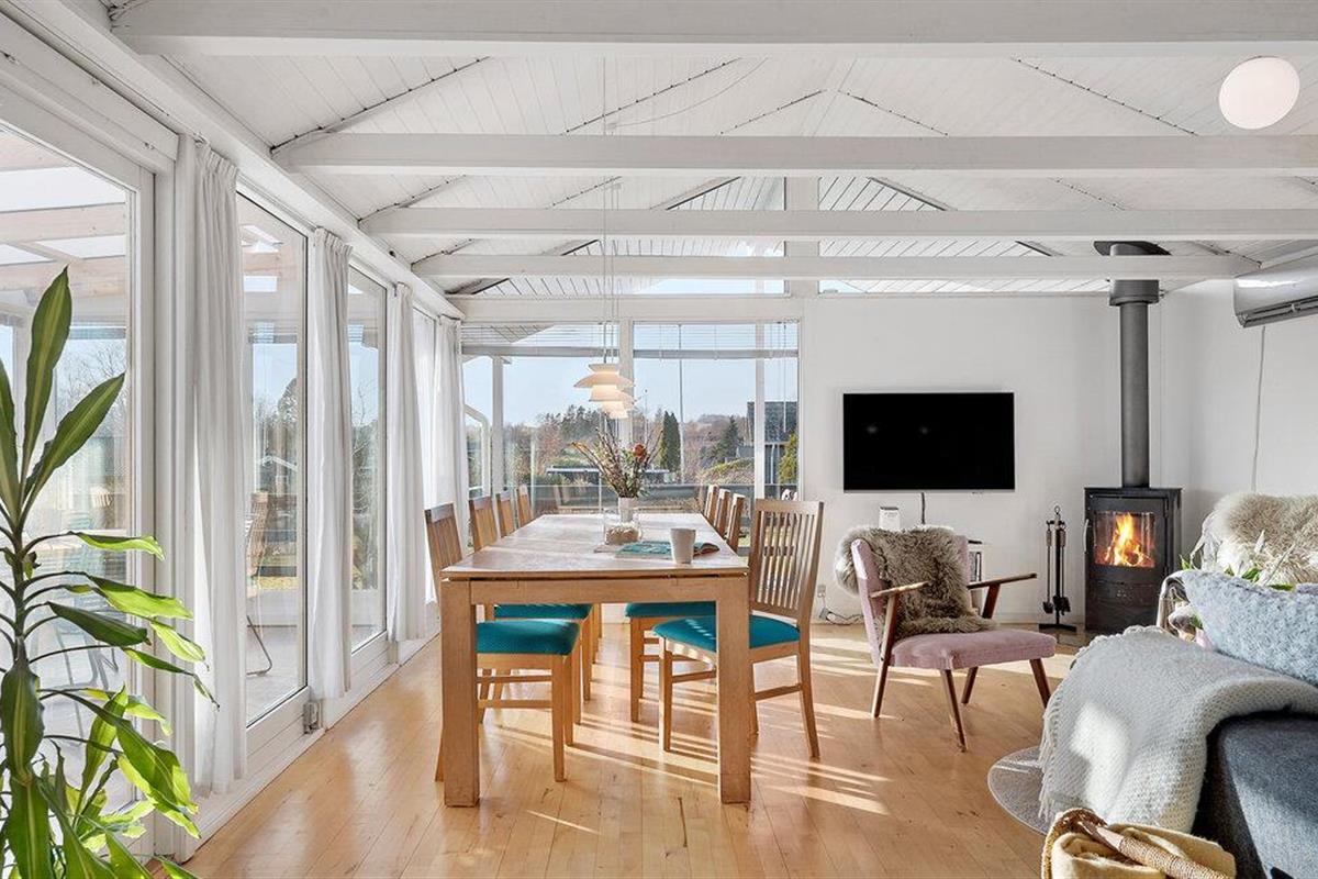 Licht en gezellig vakantiehuis met serre en houtkachel vlakbij het kindvriendelijke strand aan de Oost-Jutlandse kust.