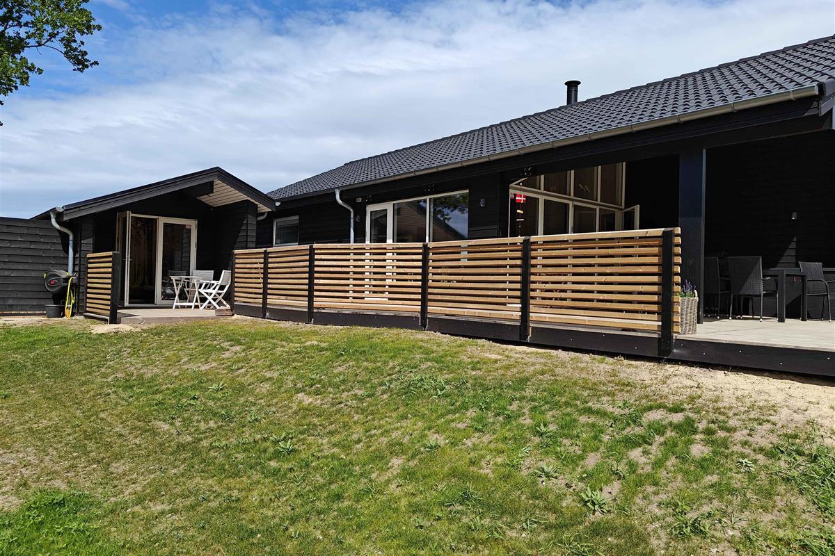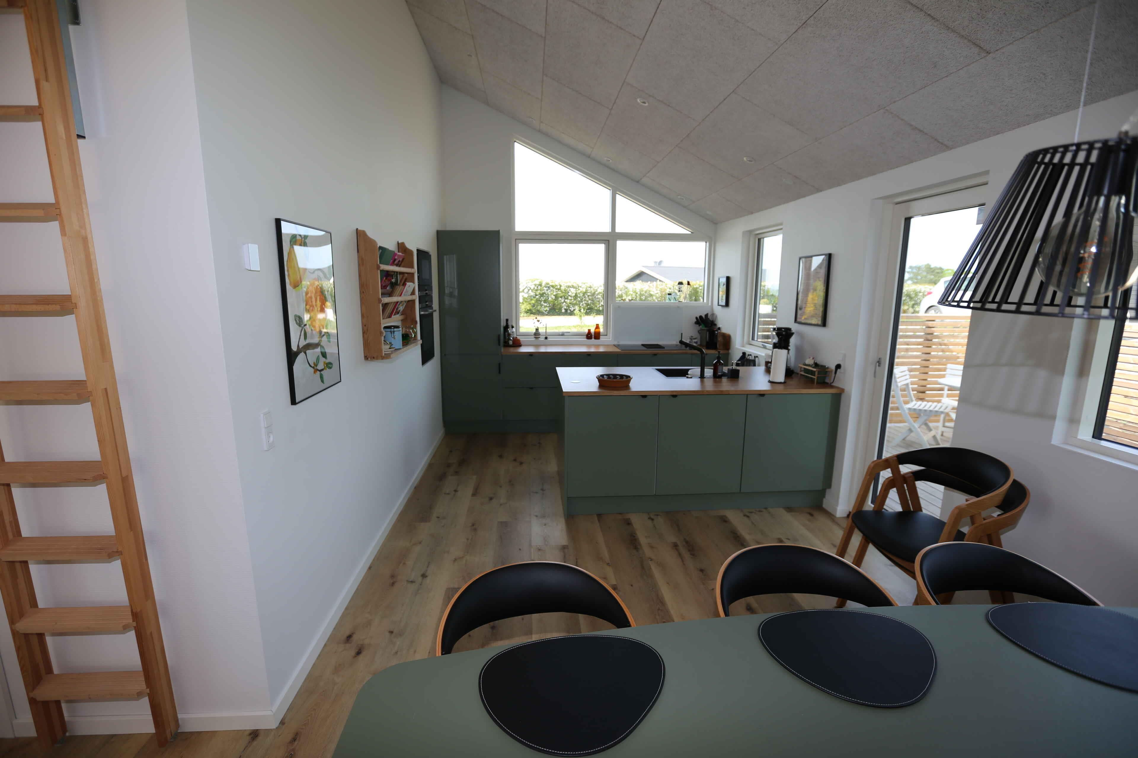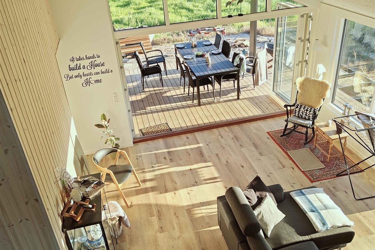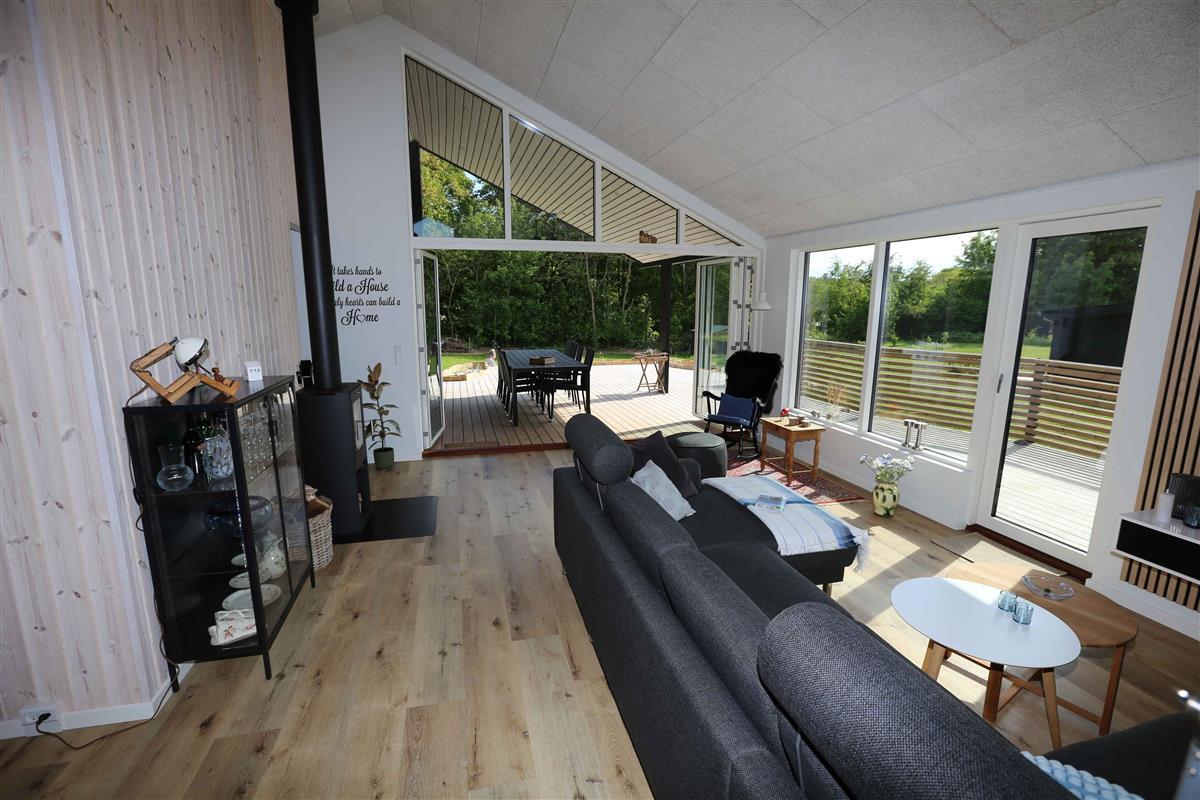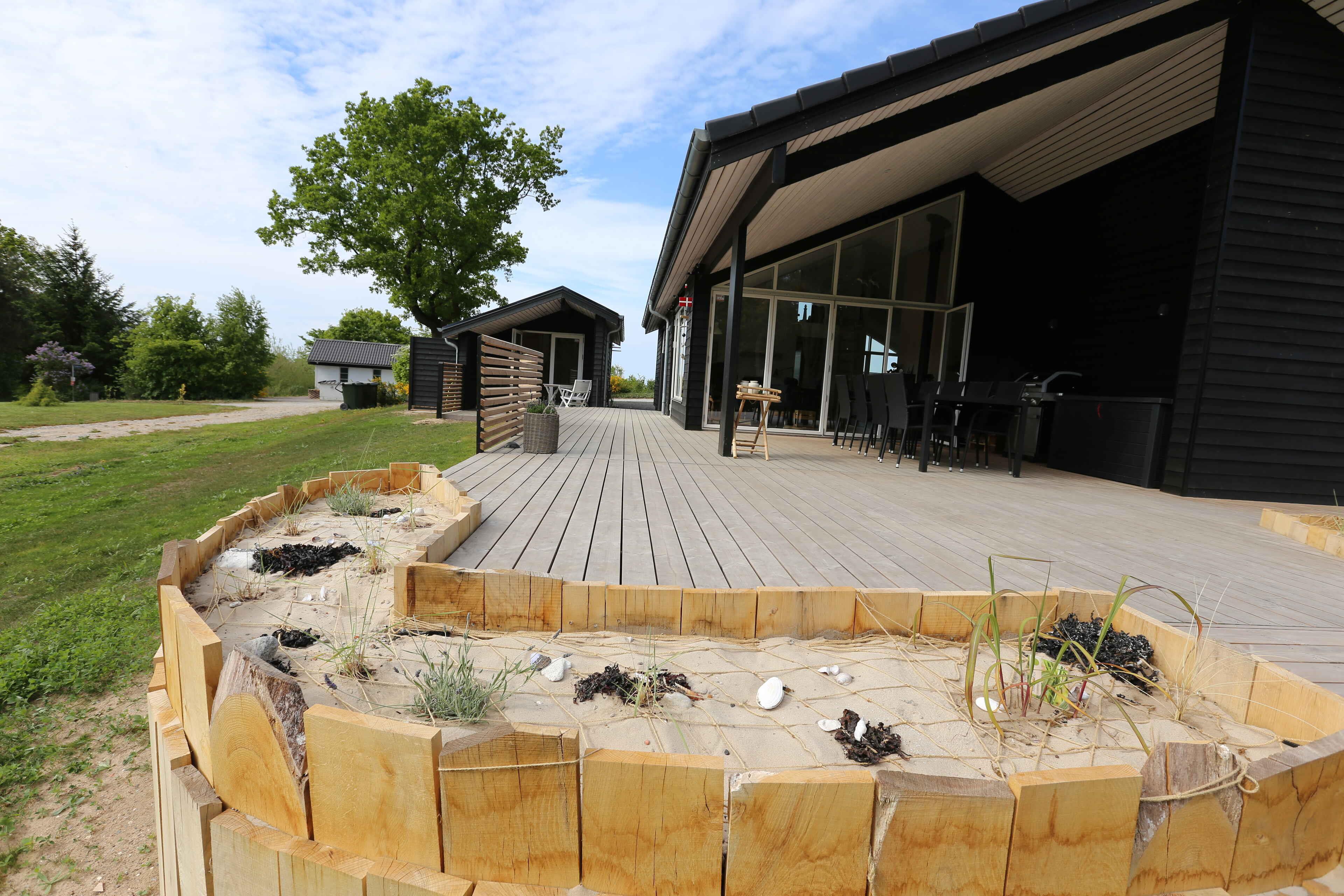 Welkom in een vakantiehuis dat zich onderscheidt door unieke, doordachte en elegante architectonische details. De eenvoudige, stijlvolle inrichting opent prachtig op met hoge plafonds en een formidabele lichtinval, die de uitzichtservaring vanuit de keuken-woonruimte naar het water toe compleet maakt. Hier kunnen jullie genieten van livet og tiden samen boven op de heuvel, slechts 250 meter van de zee. De grote, lichte leefruimte van het vakantiehuis met hoge plafonds biedt volop ruimte voor gezelligheid met spelletjes en gesprekken aan de eettafel, in het keukengedeelte dat superpraktisch is ingericht terwijl jullie genieten van het fantastische zeezicht door de grote raampartijen in de gevel. In de woonkamer is een ruime zithoek voor ontspanning, waar je je voeten kunt warmen bij de houtkachel of kunt genieten van het uitzicht naar het zuiden, waar een enorme raampartij het landschap buiten prachtig omlijst. Je kunt ook de brede vouwdeur openen zodat de natuur volledig de woonkamer wordt binnengehaald. Het vakantiehuis is stijlvol ingericht met oog voor kwaliteit en intelligente oplossingen, wat onder meer zichtbaar is in de twee goed ingerichte badkamers met hun mooie details. Moderne designmeubels geven een unieke charme en persoonlijkheid en creëren een heerlijke ontspannen sfeer. Wanneer de zon schijnt, kunnen jullie de deuren openen en naar buiten gaan om de dag door te brengen op meer dan 120 m² houten terras, en genieten van de zon of schaduw vinden onder de 25 m² overdekte veranda. Door de verspringende gevels is er altijd een plek te vinden met beschutting, schaduw of juist een zonnige plek. Wanneer de avond valt, kunnen jullie genieten van een glas wijn in de schemering en voelen hoe de rust zich nestelt terwijl de sterren verschijnen boven het water. De ligging van het huis in Skovgårde bij Fjellerup in Norddjurs is centraal en gunstig, dicht bij de culturele mogelijkheden van Mols en zijn gevarieerde landschappen, en slechts 20 minuten rijden van Djurs Sommerland. De zin in buitenleven kan gemakkelijk worden vervuld in de tuin, die op meerdere niveaus is aangelegd. De op het zuiden en westen gelegen grastuin ligt achter het huis, zodat je privé van de zon kunt genieten gedurende de hele dag, die kan worden afgesloten met het bereiden van het avondeten op de grote gasbarbecue. Op het hooggelegen plateau in de voortuin kun je vanaf het bankje genieten van de zonsondergang met uitzicht naar het noorden over zee en een koel drankje in de hand. Let op: Niet te huur voor commercieel gebruik.