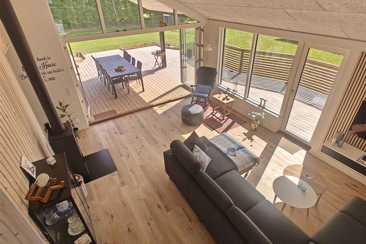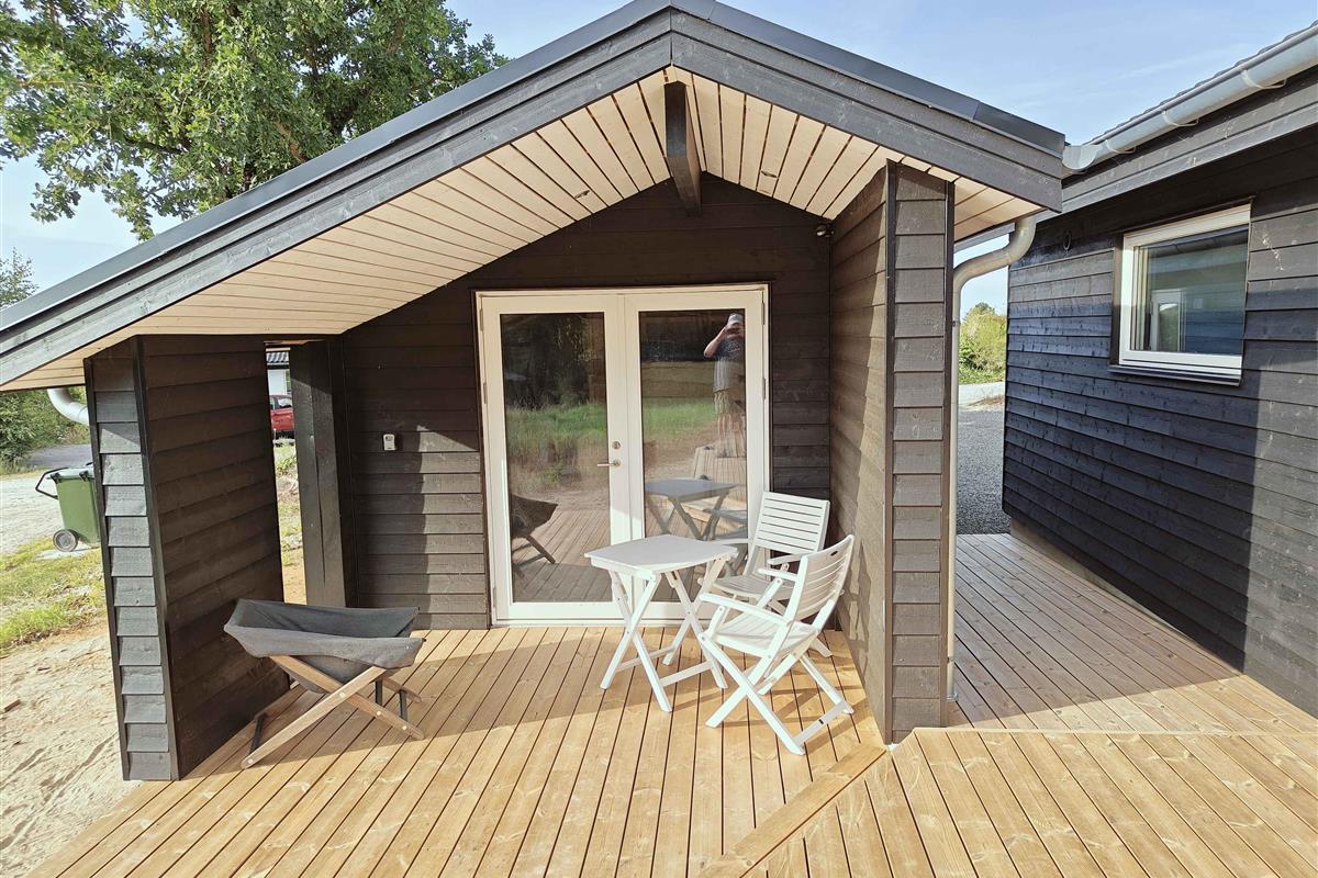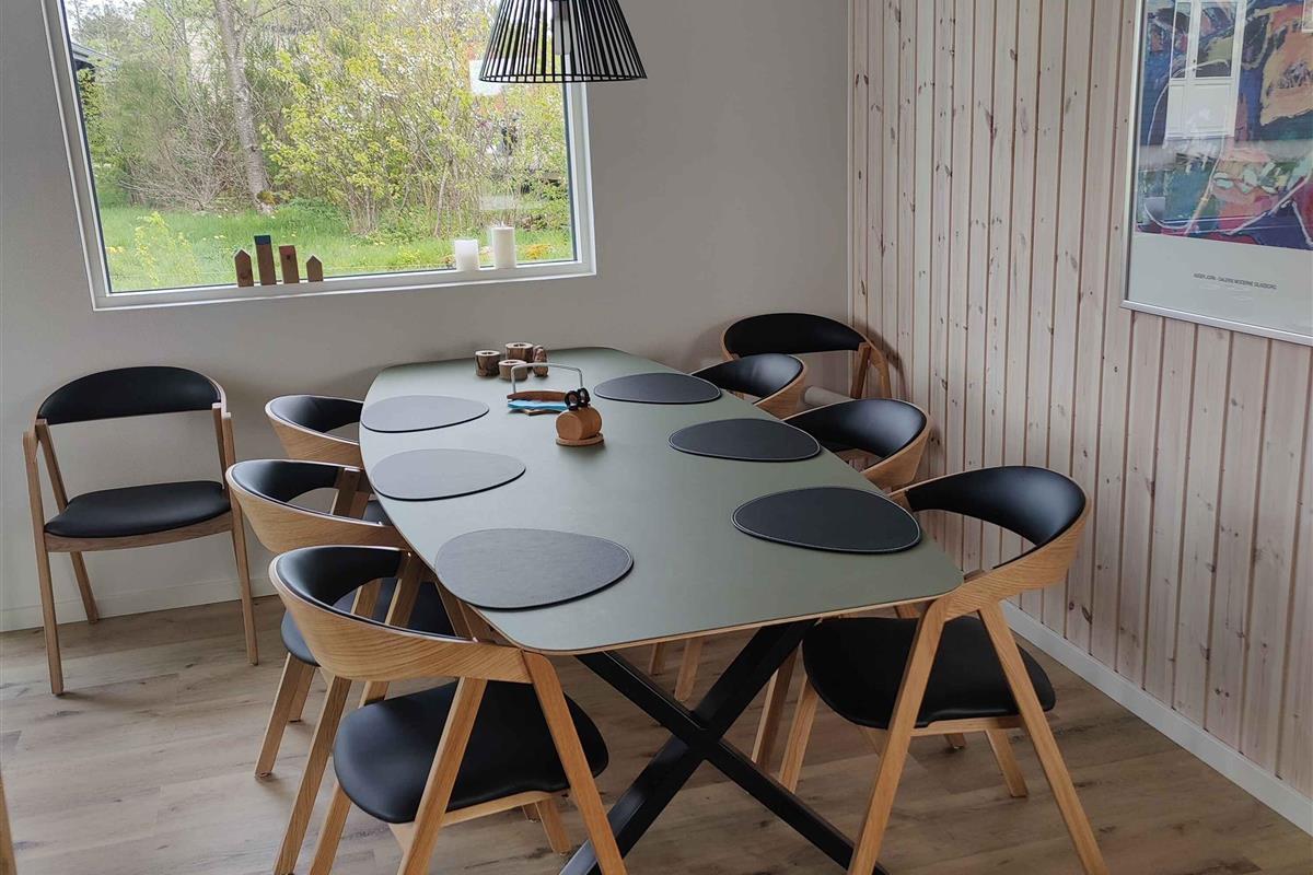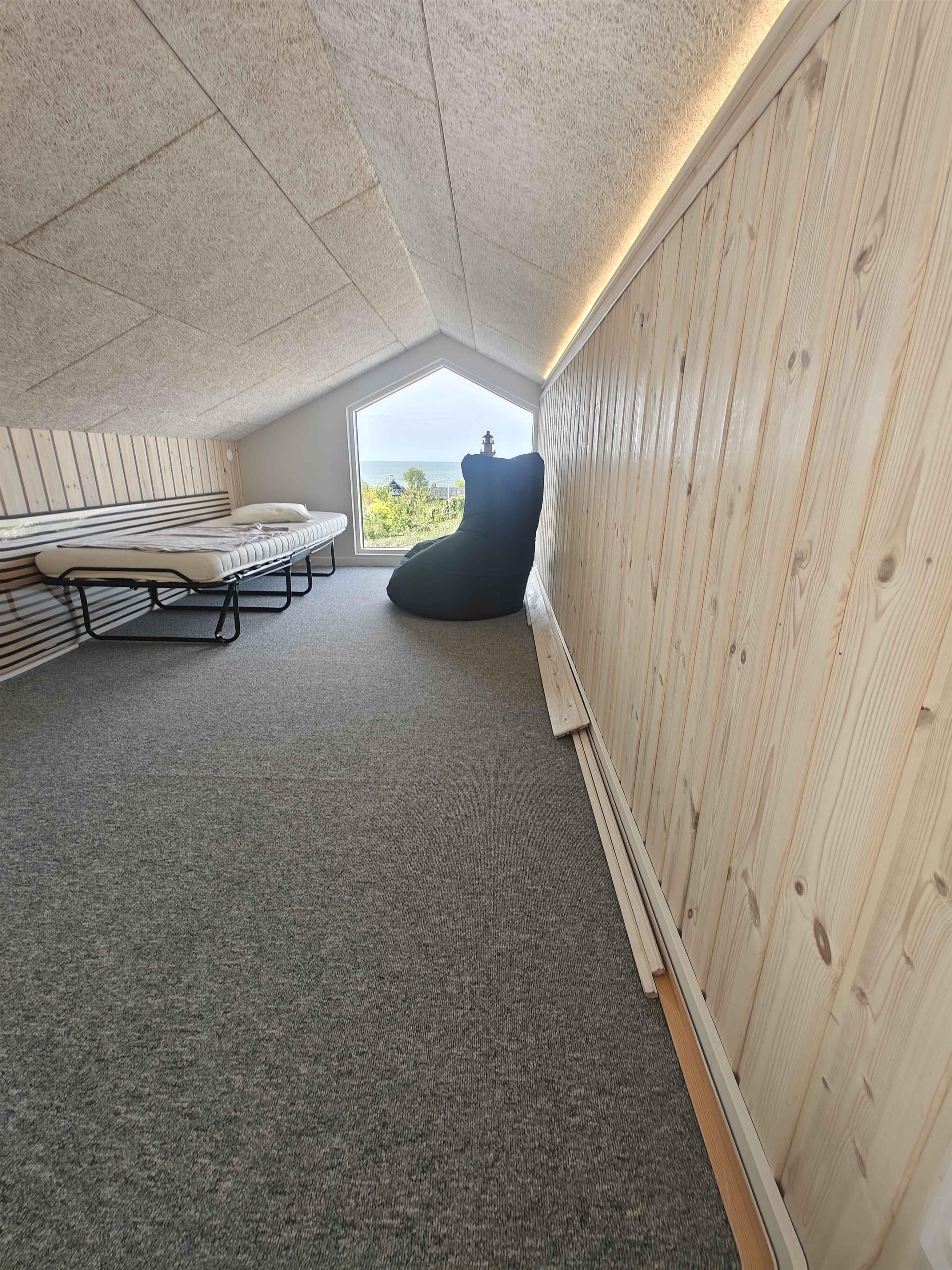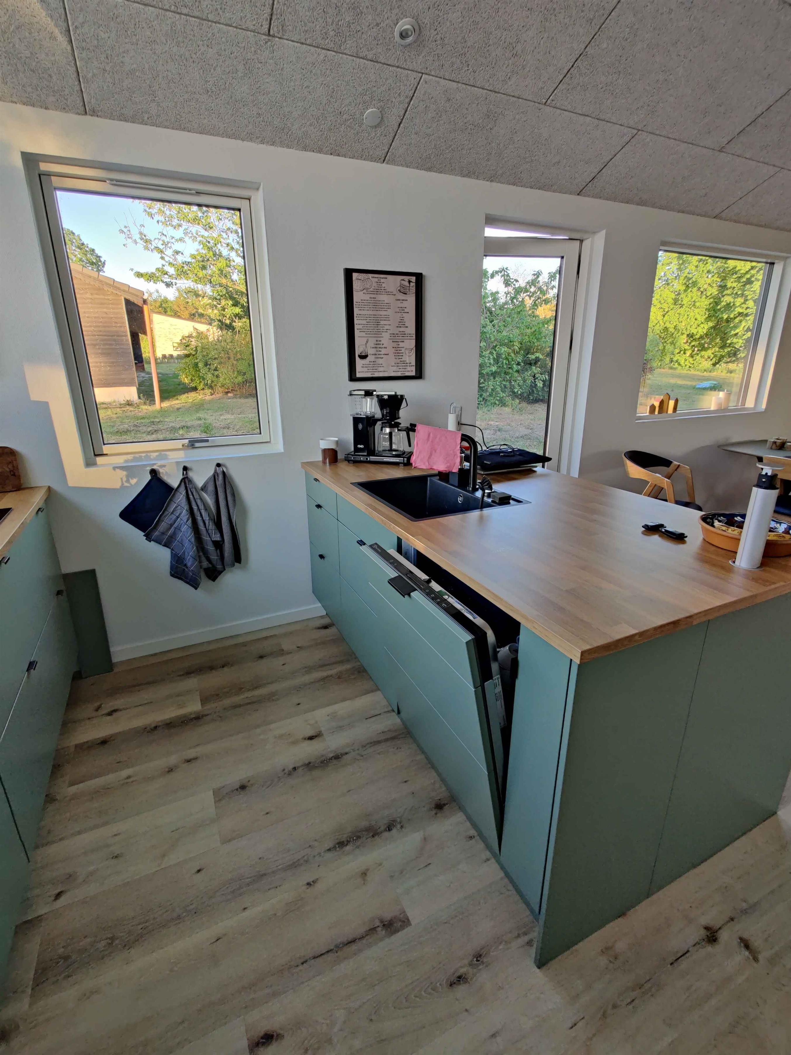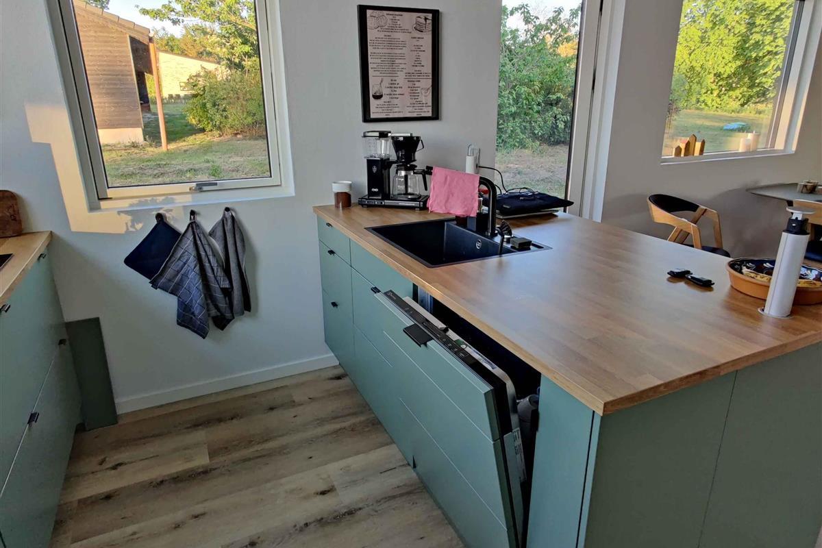 Welkom in een vakantiehuis dat zich onderscheidt door unieke, doordachte en elegante architectonische details. De eenvoudige, stijlvolle inrichting opent prachtig op met hoge plafonds en een formidabele lichtinval, die de uitzichtservaring vanuit de keuken-woonruimte naar het water toe compleet maakt. Hier kunnen jullie genieten van livet og tiden samen boven op de heuvel, slechts 250 meter van de zee. De grote, lichte leefruimte van het vakantiehuis met hoge plafonds biedt volop ruimte voor gezelligheid met spelletjes en gesprekken aan de eettafel, in het keukengedeelte dat superpraktisch is ingericht terwijl jullie genieten van het fantastische zeezicht door de grote raampartijen in de gevel. In de woonkamer is een ruime zithoek voor ontspanning, waar je je voeten kunt warmen bij de houtkachel of kunt genieten van het uitzicht naar het zuiden, waar een enorme raampartij het landschap buiten prachtig omlijst. Je kunt ook de brede vouwdeur openen zodat de natuur volledig de woonkamer wordt binnengehaald. Het vakantiehuis is stijlvol ingericht met oog voor kwaliteit en intelligente oplossingen, wat onder meer zichtbaar is in de twee goed ingerichte badkamers met hun mooie details. Moderne designmeubels geven een unieke charme en persoonlijkheid en creëren een heerlijke ontspannen sfeer. Wanneer de zon schijnt, kunnen jullie de deuren openen en naar buiten gaan om de dag door te brengen op meer dan 120 m² houten terras, en genieten van de zon of schaduw vinden onder de 25 m² overdekte veranda. Door de verspringende gevels is er altijd een plek te vinden met beschutting, schaduw of juist een zonnige plek. Wanneer de avond valt, kunnen jullie genieten van een glas wijn in de schemering en voelen hoe de rust zich nestelt terwijl de sterren verschijnen boven het water. De ligging van het huis in Skovgårde bij Fjellerup in Norddjurs is centraal en gunstig, dicht bij de culturele mogelijkheden van Mols en zijn gevarieerde landschappen, en slechts 20 minuten rijden van Djurs Sommerland. De zin in buitenleven kan gemakkelijk worden vervuld in de tuin, die op meerdere niveaus is aangelegd. De op het zuiden en westen gelegen grastuin ligt achter het huis, zodat je privé van de zon kunt genieten gedurende de hele dag, die kan worden afgesloten met het bereiden van het avondeten op de grote gasbarbecue. Op het hooggelegen plateau in de voortuin kun je vanaf het bankje genieten van de zonsondergang met uitzicht naar het noorden over zee en een koel drankje in de hand. Let op: Niet te huur voor commercieel gebruik.