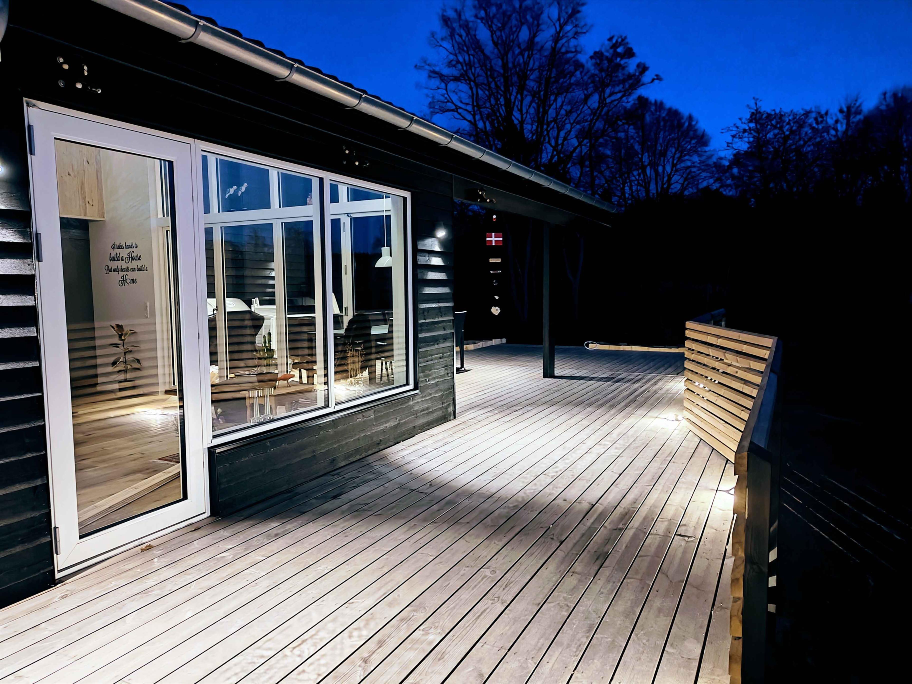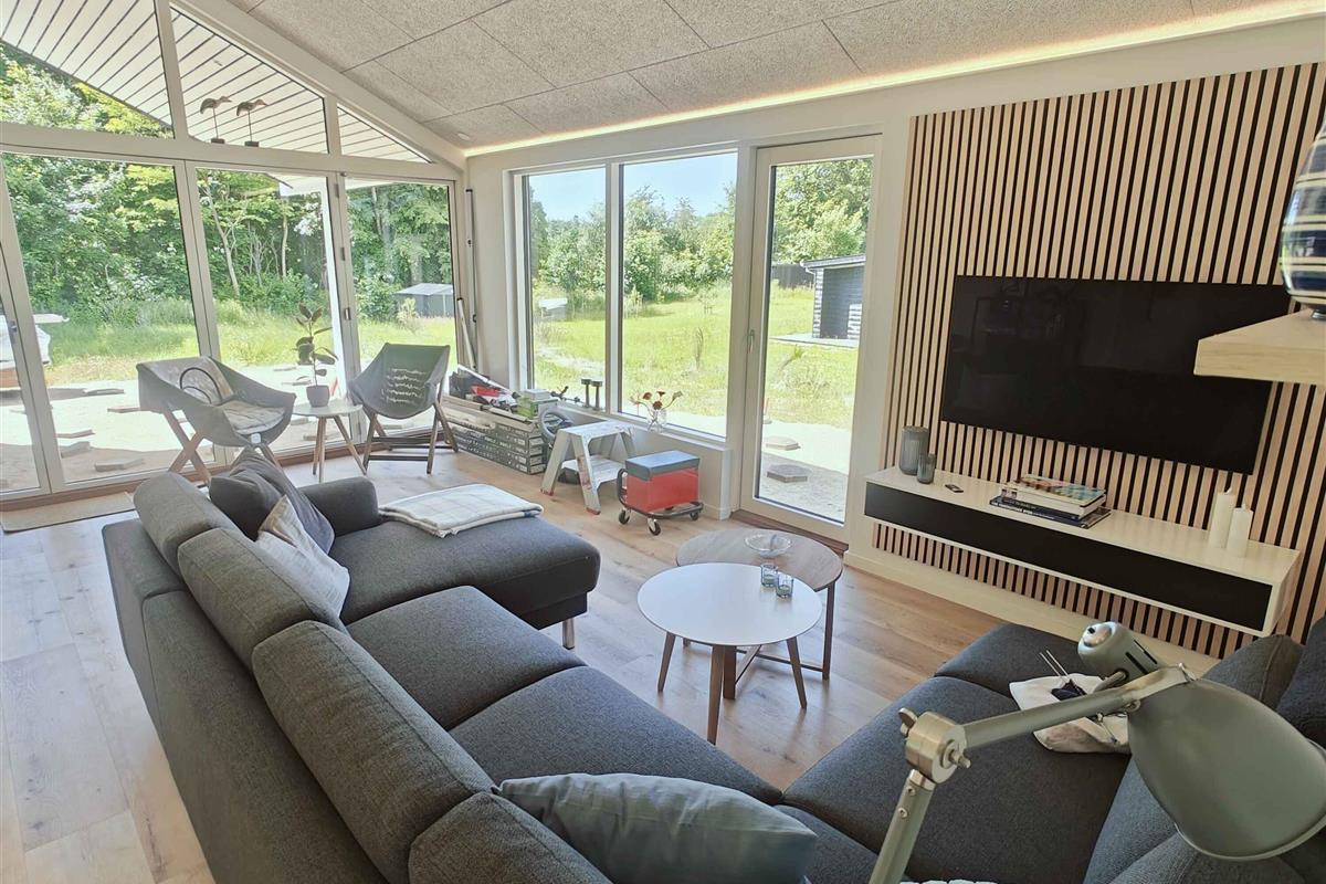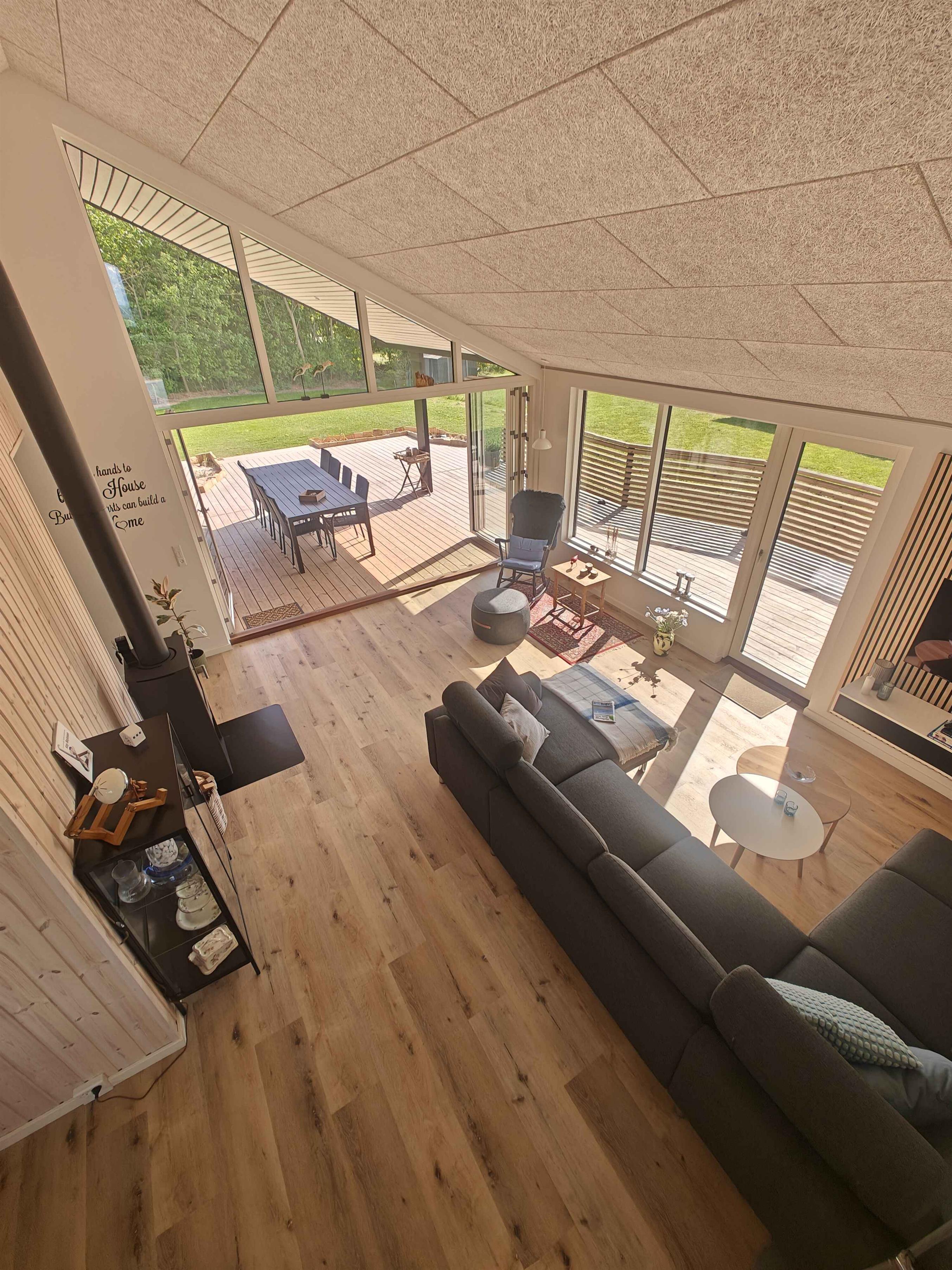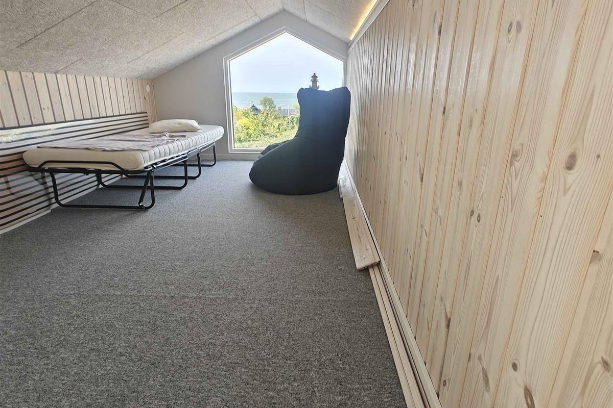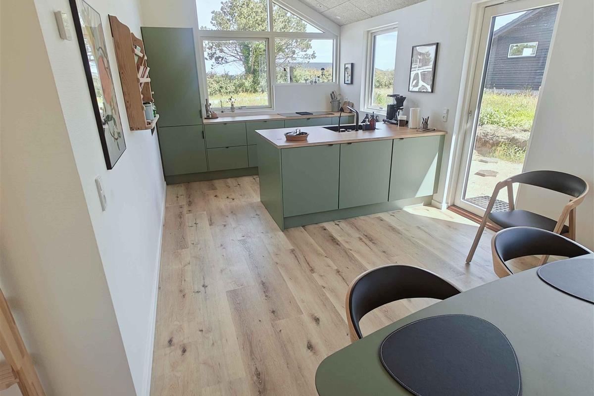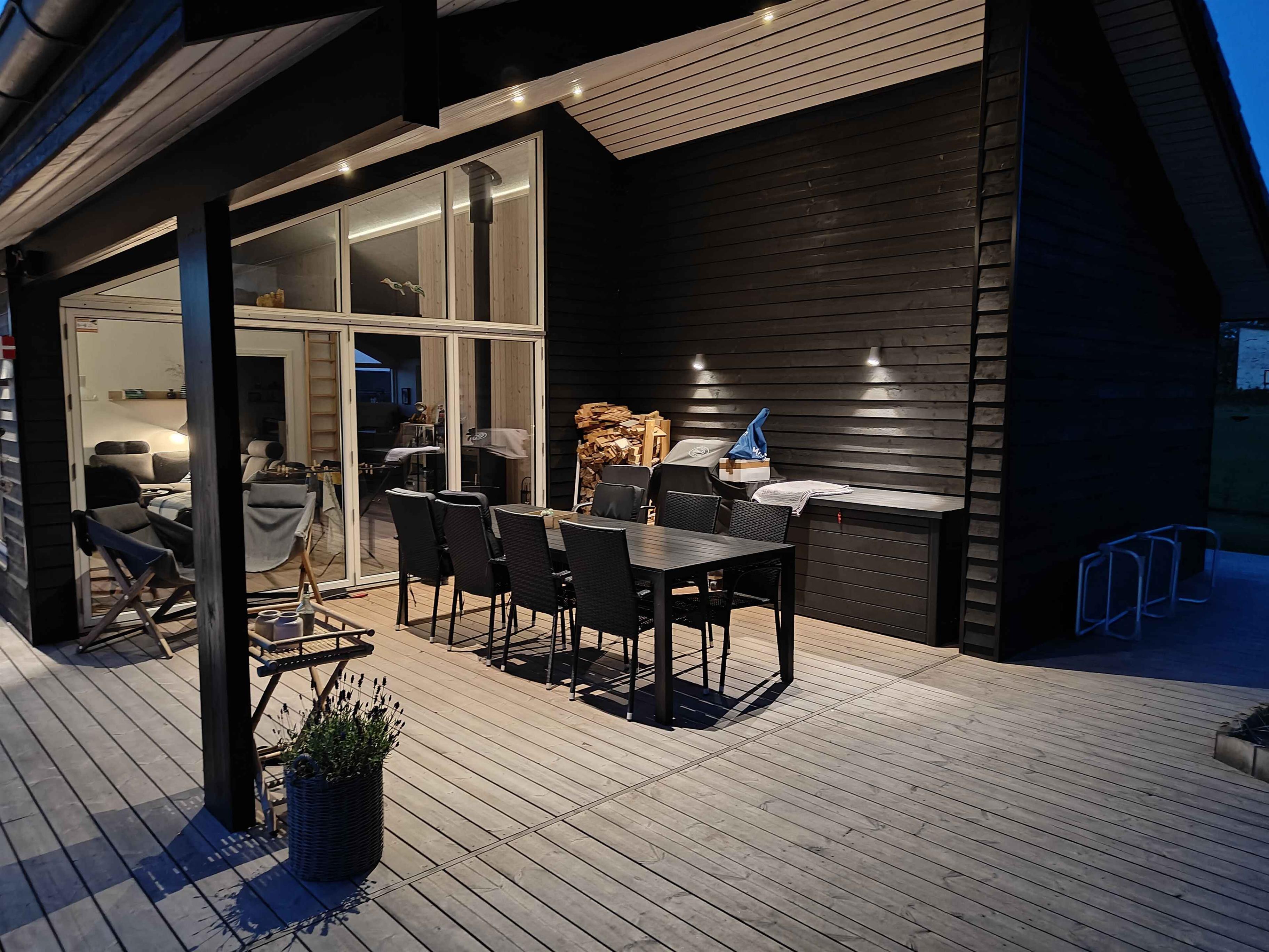 Welkom in een vakantiehuis dat zich onderscheidt door unieke, doordachte en elegante architectonische details. De eenvoudige, stijlvolle inrichting opent prachtig op met hoge plafonds en een formidabele lichtinval, die de uitzichtservaring vanuit de keuken-woonruimte naar het water toe compleet maakt. Hier kunnen jullie genieten van livet og tiden samen boven op de heuvel, slechts 250 meter van de zee. De grote, lichte leefruimte van het vakantiehuis met hoge plafonds biedt volop ruimte voor gezelligheid met spelletjes en gesprekken aan de eettafel, in het keukengedeelte dat superpraktisch is ingericht terwijl jullie genieten van het fantastische zeezicht door de grote raampartijen in de gevel. In de woonkamer is een ruime zithoek voor ontspanning, waar je je voeten kunt warmen bij de houtkachel of kunt genieten van het uitzicht naar het zuiden, waar een enorme raampartij het landschap buiten prachtig omlijst. Je kunt ook de brede vouwdeur openen zodat de natuur volledig de woonkamer wordt binnengehaald. Het vakantiehuis is stijlvol ingericht met oog voor kwaliteit en intelligente oplossingen, wat onder meer zichtbaar is in de twee goed ingerichte badkamers met hun mooie details. Moderne designmeubels geven een unieke charme en persoonlijkheid en creëren een heerlijke ontspannen sfeer. Wanneer de zon schijnt, kunnen jullie de deuren openen en naar buiten gaan om de dag door te brengen op meer dan 120 m² houten terras, en genieten van de zon of schaduw vinden onder de 25 m² overdekte veranda. Door de verspringende gevels is er altijd een plek te vinden met beschutting, schaduw of juist een zonnige plek. Wanneer de avond valt, kunnen jullie genieten van een glas wijn in de schemering en voelen hoe de rust zich nestelt terwijl de sterren verschijnen boven het water. De ligging van het huis in Skovgårde bij Fjellerup in Norddjurs is centraal en gunstig, dicht bij de culturele mogelijkheden van Mols en zijn gevarieerde landschappen, en slechts 20 minuten rijden van Djurs Sommerland. De zin in buitenleven kan gemakkelijk worden vervuld in de tuin, die op meerdere niveaus is aangelegd. De op het zuiden en westen gelegen grastuin ligt achter het huis, zodat je privé van de zon kunt genieten gedurende de hele dag, die kan worden afgesloten met het bereiden van het avondeten op de grote gasbarbecue. Op het hooggelegen plateau in de voortuin kun je vanaf het bankje genieten van de zonsondergang met uitzicht naar het noorden over zee en een koel drankje in de hand. Let op: Niet te huur voor commercieel gebruik.
