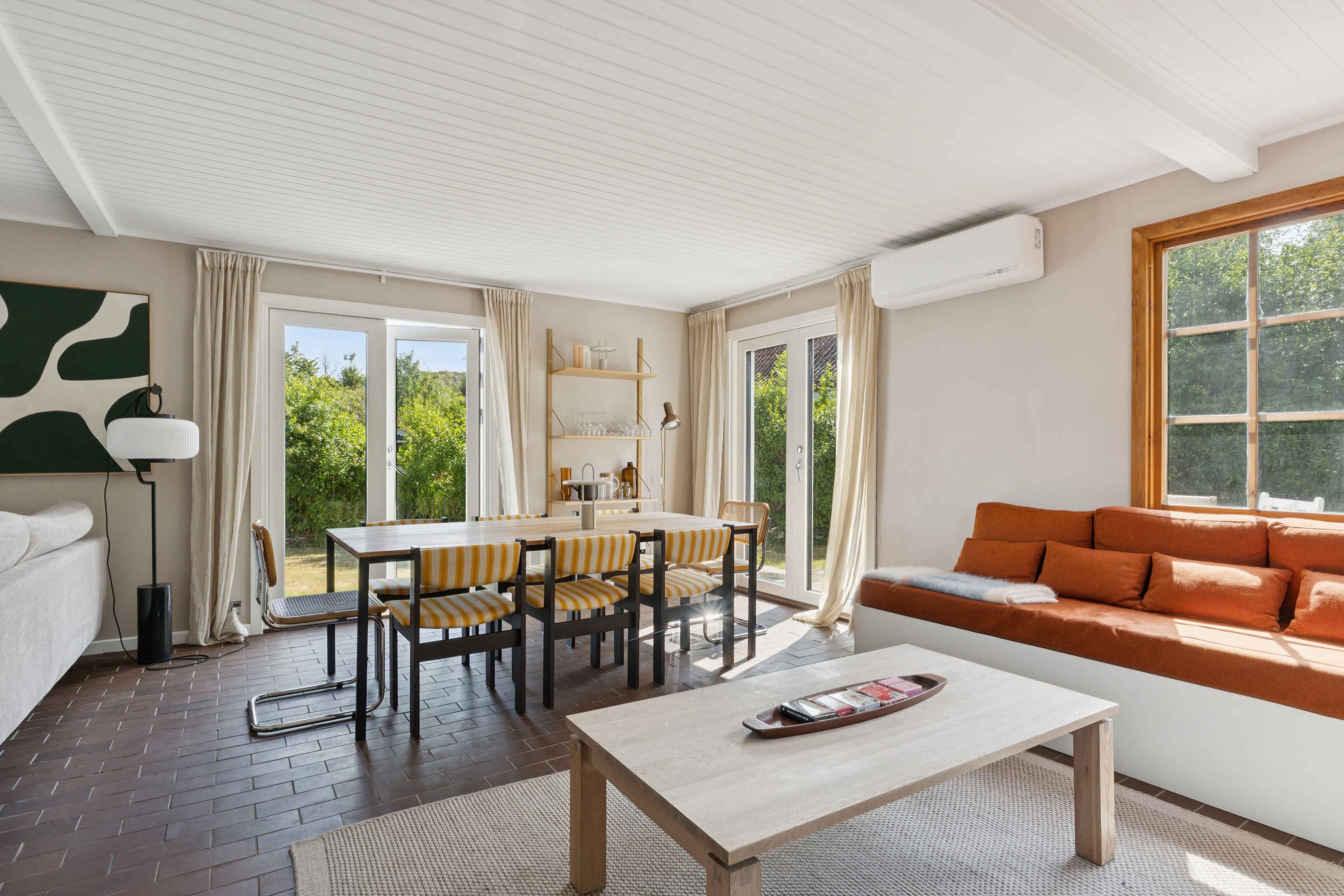 Welkom in dit vakantiehuis in het hart van Sandvig. Met 116 m² biedt het veel ruimte en een rustige ligging dicht bij zowel de natuur als het stadje. De indeling is doordacht, met ruimte voor zowel samenzijn als privacy. Twee slaapkamers en vijf slaapplaatsen maken het geschikt voor gezinnen of kleine groepen. De woonruimtes zijn open en licht met uitzicht op zee. Grote ramen halen de omgeving naar binnen en er is voldoende plek voor gezamenlijke maaltijden en ontspanning. Verschillende knusse hoekjes nodigen uit tot lezen, een spelletje of gewoon even alleen zijn. Op slechts 50 meter van het huis ligt de kust. Hier kun je zwemmen, wandelen langs de rotsen of simpelweg genieten van het uitzicht. De zee is altijd aanwezig – in het uitzicht én in de geluiden waarmee je wakker wordt. Een warmtepomp zorgt het hele jaar voor een aangenaam binnenklimaat. Het huis heeft ook internet, zodat je kunt werken, films kunt streamen of contact kunt houden met de buitenwereld. Het vakantiehuis ligt in een gebied waar rust en beleving hand in hand gaan. Je bent dicht bij kleine winkeltjes, cafés en culturele plekken, terwijl de natuur letterlijk buiten de deur begint. De omgeving biedt dramatische rotskusten, fijne stranden en sfeervolle dorpen. Er zijn ambachtelijke ateliers, rokerijen en havenmilieus waar de tijd lijkt stil te staan. Goede paden maken het gemakkelijk om te wandelen of fietsen door het unieke landschap. Je kunt de dagen vullen met activiteiten – of juist niet. Er is ruimte voor tempo én pauze. Het uitzicht is overal – binnen en buiten. Of je nu de dag begint met koffie in de zon, een frisse duik neemt of geniet van een stille avond met uitzicht op zee, dit is de plek. Een ideale uitvalsbasis voor liefhebbers van natuur en rust. Een verblijf hier is een balans tussen nabijheid en teruggetrokkenheid. Het geeft een bijzondere rust die velen zoeken, maar zelden vinden. Het appartement is niet geschikt voor kleine kinderen. Let op: Niet te huur voor commercieel gebruik.