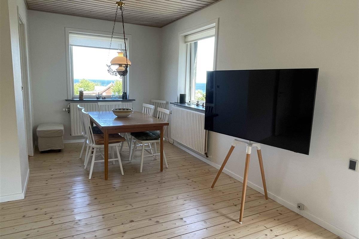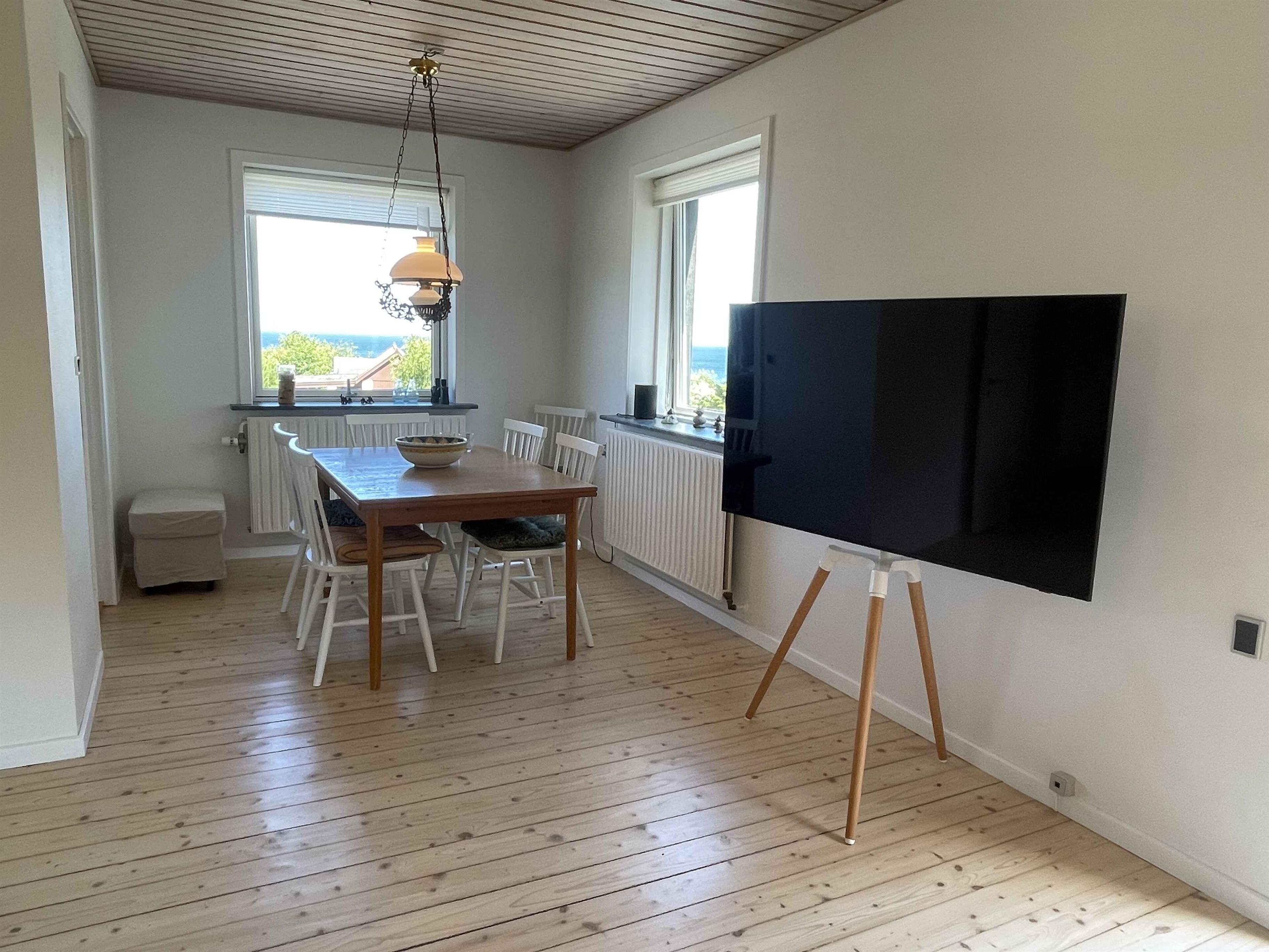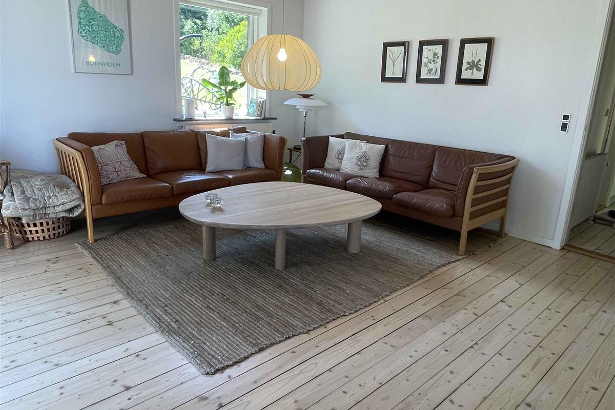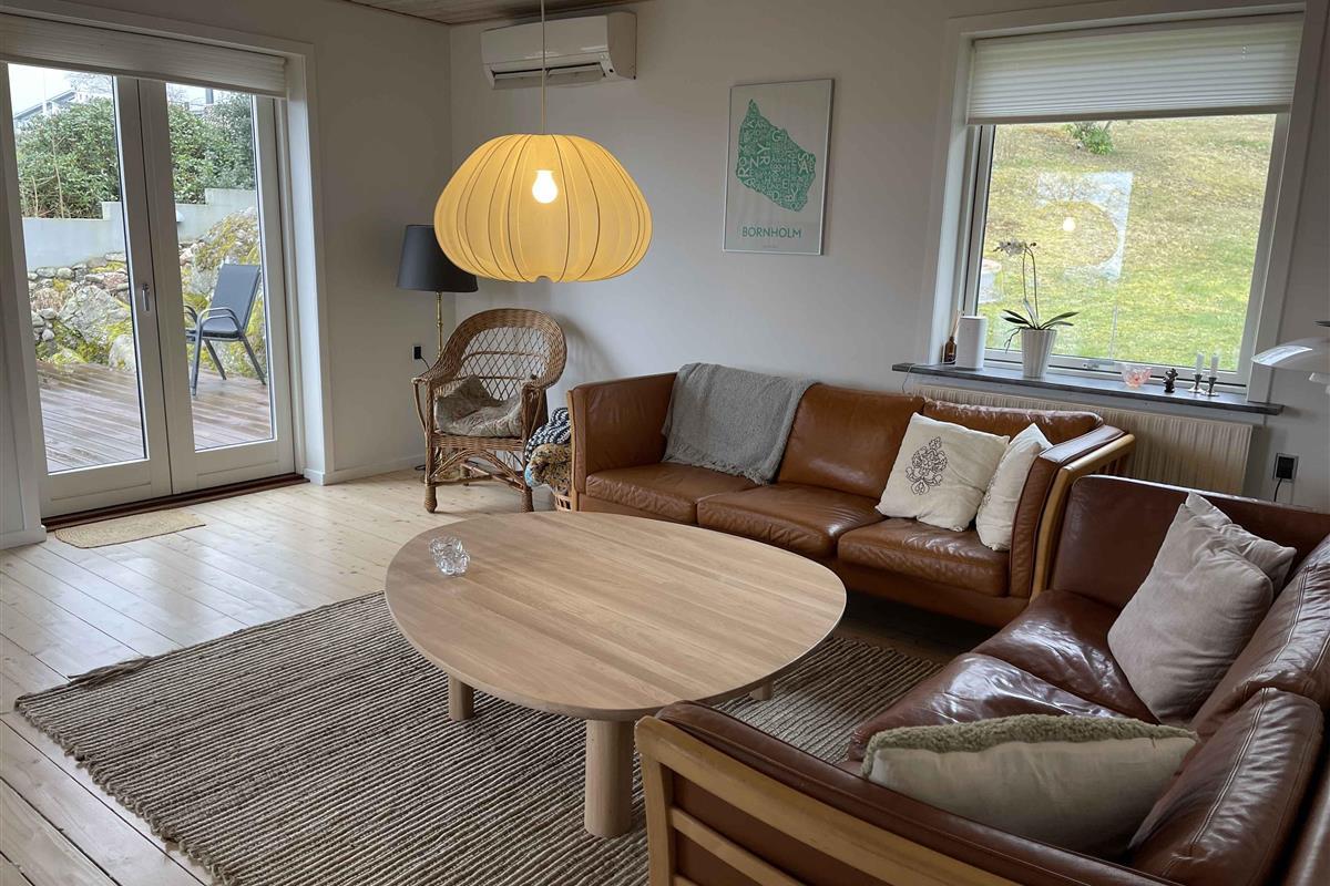Dit charmante huis ligt hoog op een natuurperceel met rotsen, verspreide bomen en uitzicht op zee. Vanaf het terras geniet je van de zonsopgang met je ochtendkoffie, terwijl de kinderen spelen op het terrein. De rotsachtige en zanderige kust is op een paar minuten loopafstand via een klein pad. Het huis stamt uit de jaren 50 en heeft zijn karakter behouden, maar is voortdurend gerenoveerd – meest recent nog dit jaar. De inrichting is eenvoudig en functioneel, met drie slaapkamers en in totaal zeven slaapplaatsen. Het huis is 92 m² en ideaal voor gezinnen en stellen. De keuken heeft een vaatwasser, en er is zowel een wasmachine als een droger. Internet en TV worden vóór het volgende seizoen geïnstalleerd. Binnen en buiten is er voldoende ruimte voor ontspanning of een actieve vakantie. Het perceel van 1200 m² nodigt uit tot buitenleven, met ruimte om te spelen, te barbecueën en tot rust te komen. De omliggende natuur biedt wilde bloemen, granieten rotsen en geurende jeneverbessen. Je kunt in badjas naar zee of met de fiets naar de stad. De omgeving biedt het beste van Bornholm: natuur en stadsleven. Tejn ligt op een kilometer afstand met haven, rokerij en supermarkt. In Allinge, 1,5 km verder, vind je restaurants, een ijssalon en zomerse gezelligheid. Er zijn ook klifwandelingen en muziekactiviteiten. Hier toont Bornholm zijn mooiste kant: rust, licht, water en afwisseling. Perfect voor korte pauzes of lange vakanties. Let op: Niet te huur voor commercieel gebruik.