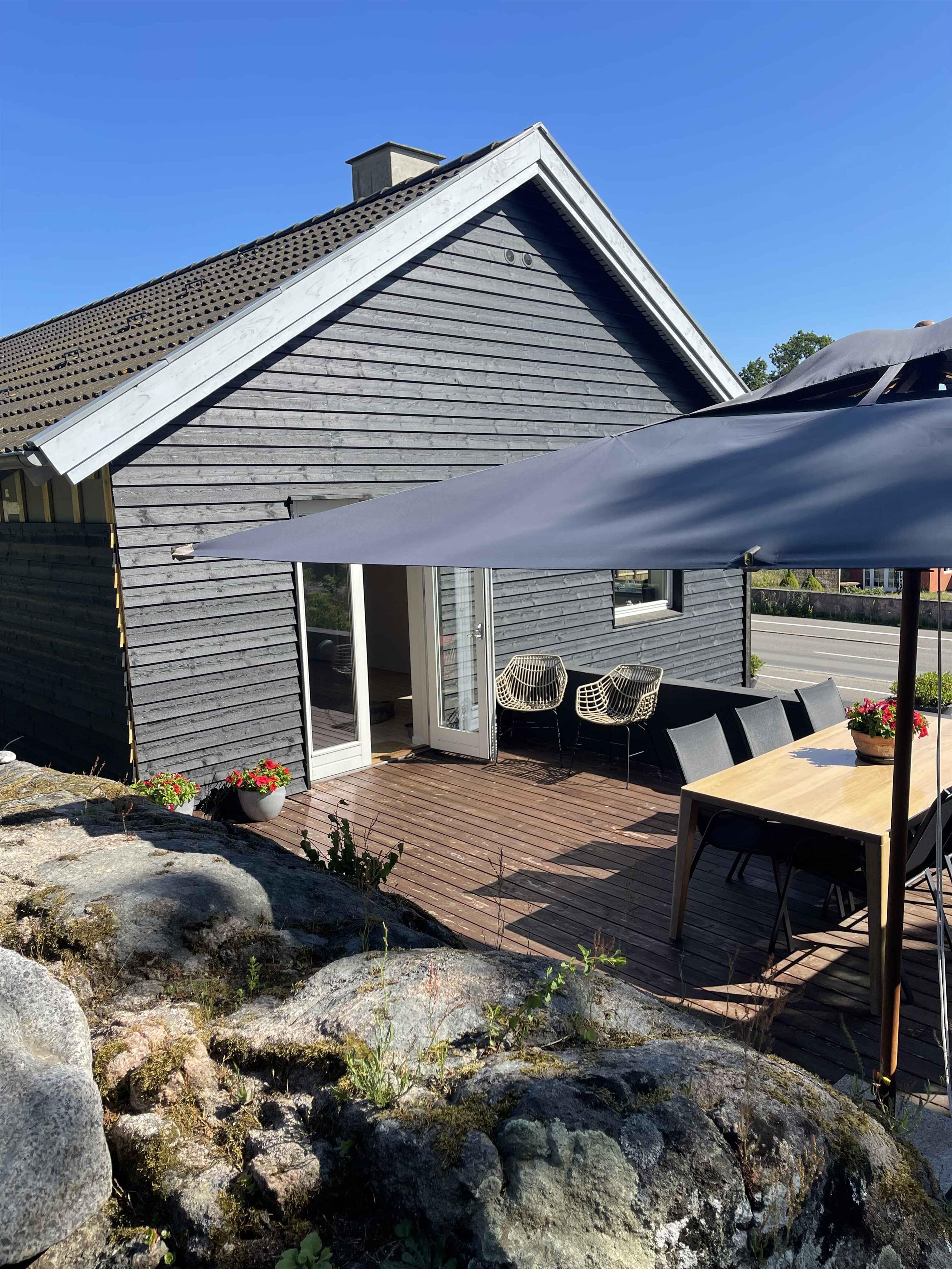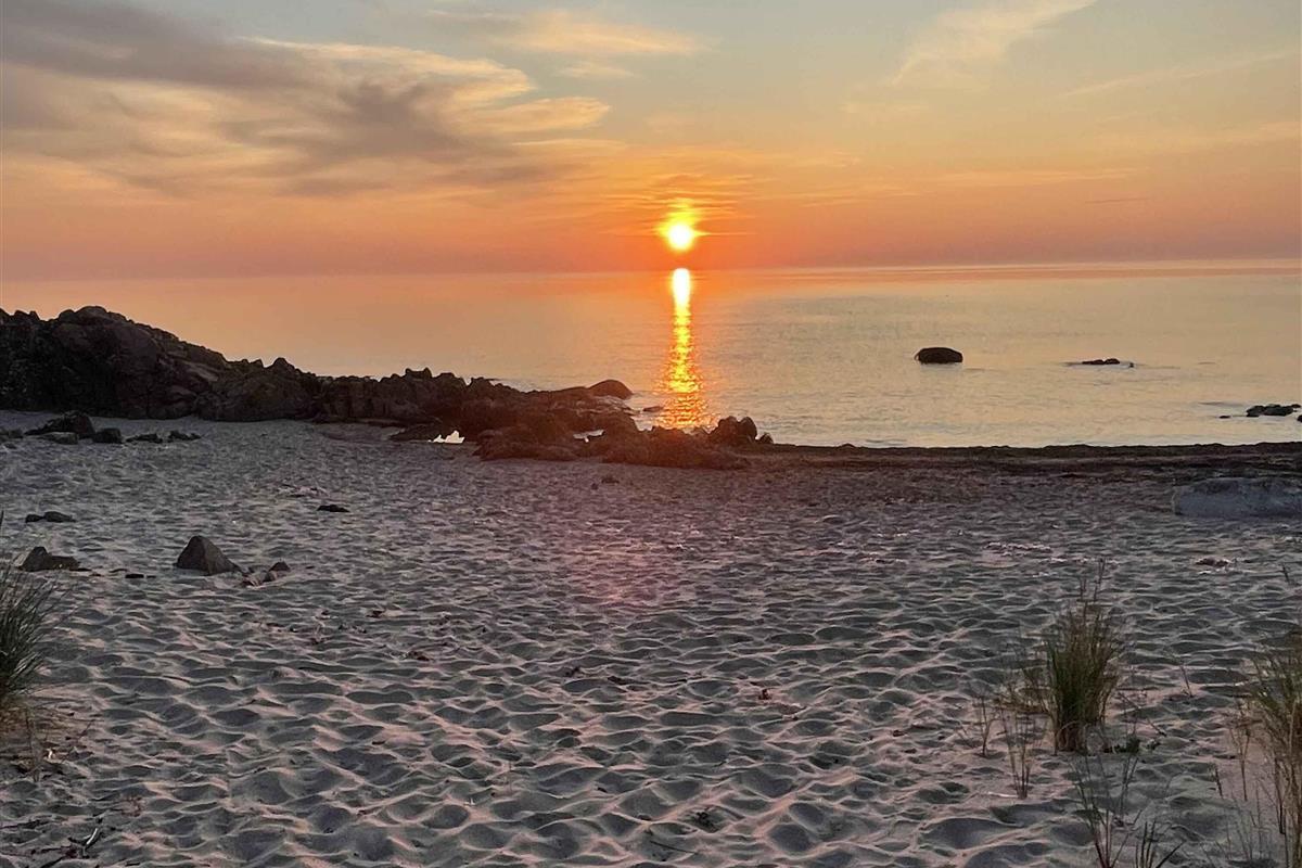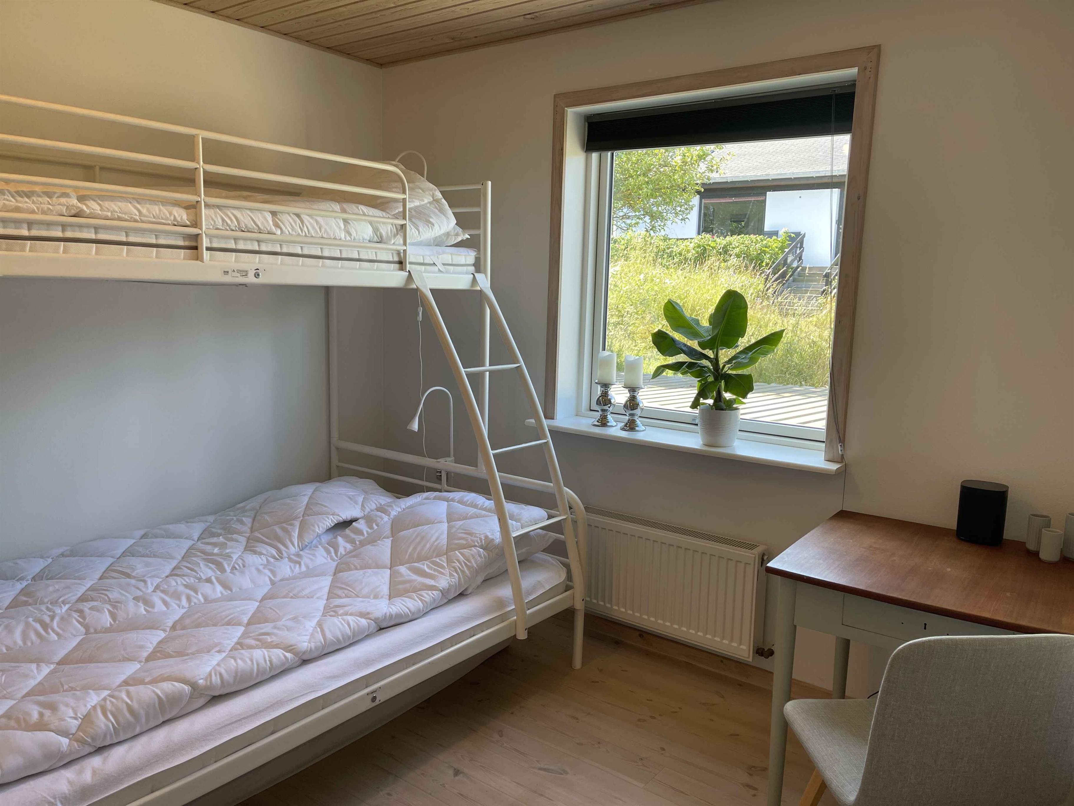Dit charmante huis ligt hoog op een natuurperceel met rotsen, verspreide bomen en uitzicht op zee. Vanaf het terras geniet je van de zonsopgang met je ochtendkoffie, terwijl de kinderen spelen op het terrein. De rotsachtige en zanderige kust is op een paar minuten loopafstand via een klein pad. Het huis stamt uit de jaren 50 en heeft zijn karakter behouden, maar is voortdurend gerenoveerd – meest recent nog dit jaar. De inrichting is eenvoudig en functioneel, met drie slaapkamers en in totaal zeven slaapplaatsen. Het huis is 92 m² en ideaal voor gezinnen en stellen. De keuken heeft een vaatwasser, en er is zowel een wasmachine als een droger. Internet en TV worden vóór het volgende seizoen geïnstalleerd. Binnen en buiten is er voldoende ruimte voor ontspanning of een actieve vakantie. Het perceel van 1200 m² nodigt uit tot buitenleven, met ruimte om te spelen, te barbecueën en tot rust te komen. De omliggende natuur biedt wilde bloemen, granieten rotsen en geurende jeneverbessen. Je kunt in badjas naar zee of met de fiets naar de stad. De omgeving biedt het beste van Bornholm: natuur en stadsleven. Tejn ligt op een kilometer afstand met haven, rokerij en supermarkt. In Allinge, 1,5 km verder, vind je restaurants, een ijssalon en zomerse gezelligheid. Er zijn ook klifwandelingen en muziekactiviteiten. Hier toont Bornholm zijn mooiste kant: rust, licht, water en afwisseling. Perfect voor korte pauzes of lange vakanties. Let op: Niet te huur voor commercieel gebruik.