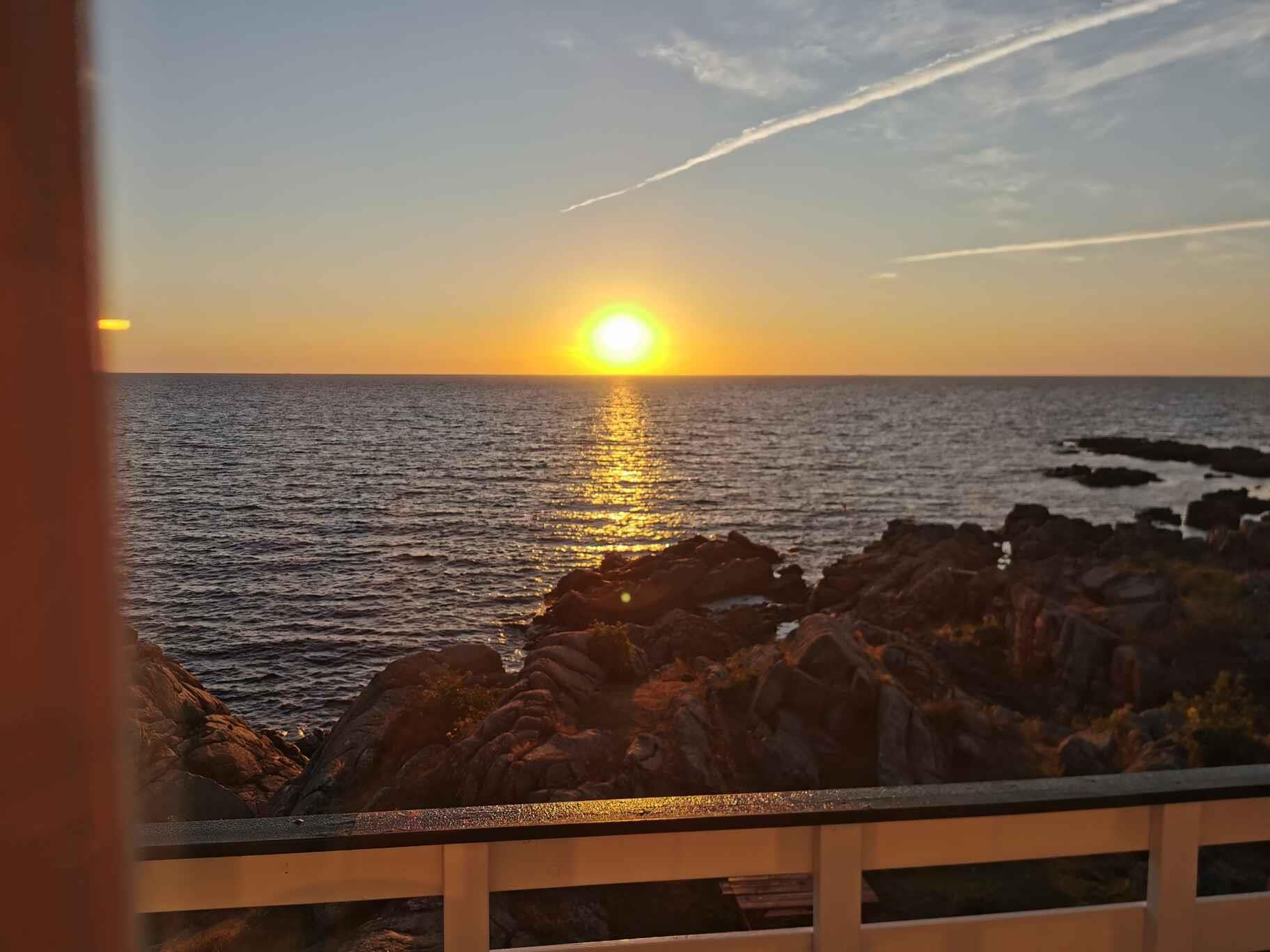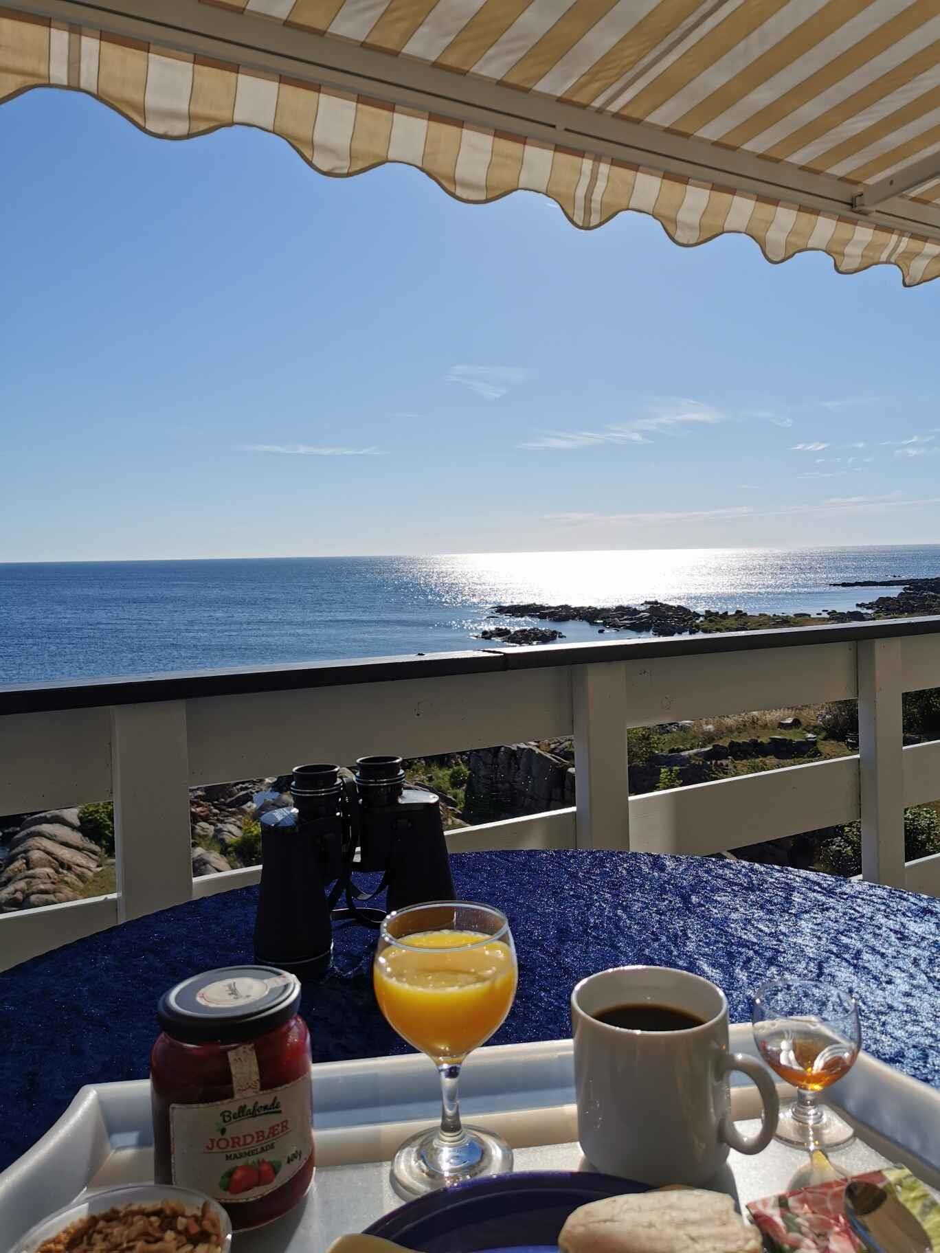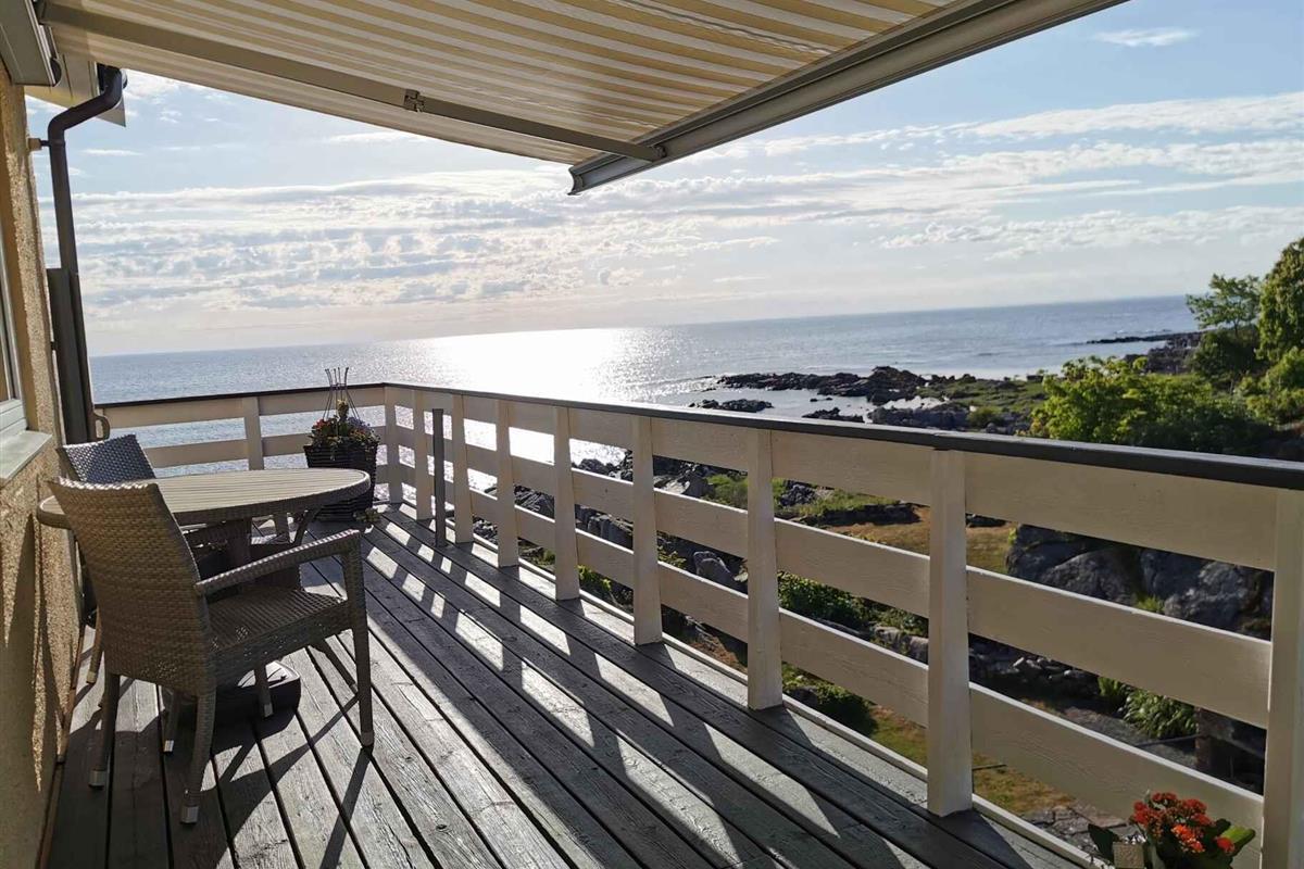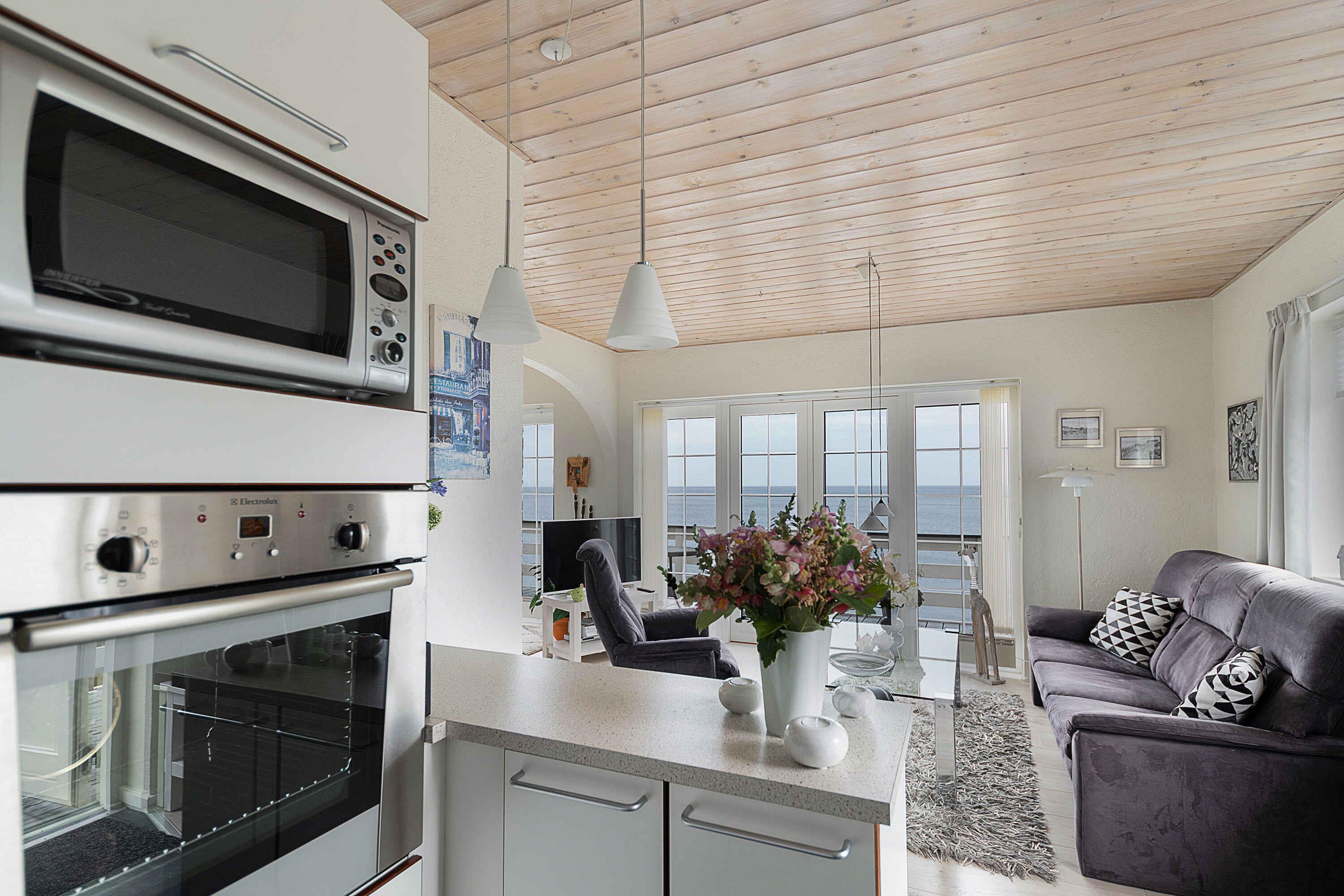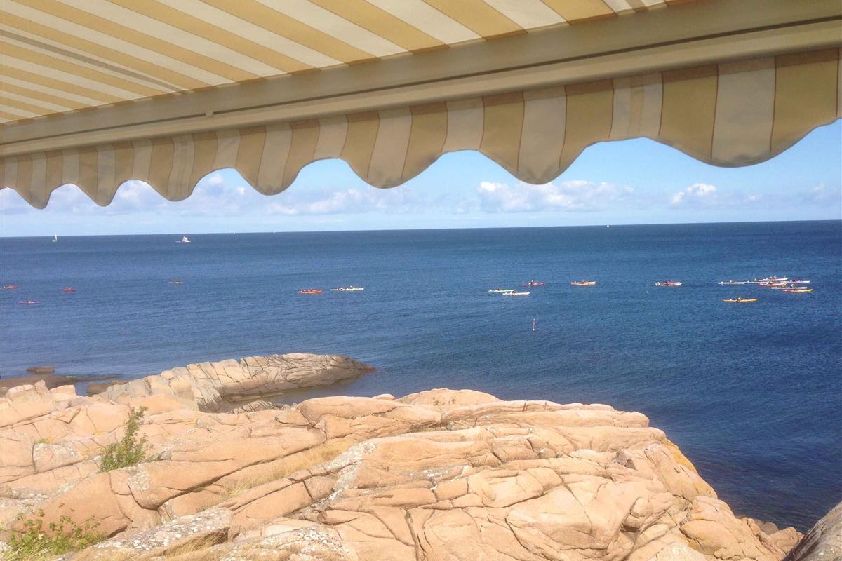 Geniet van een uniek vakantieappartement met panoramisch zeezicht en royale balkonterrassen aan de rotsachtige kust van Nordbornholm.
