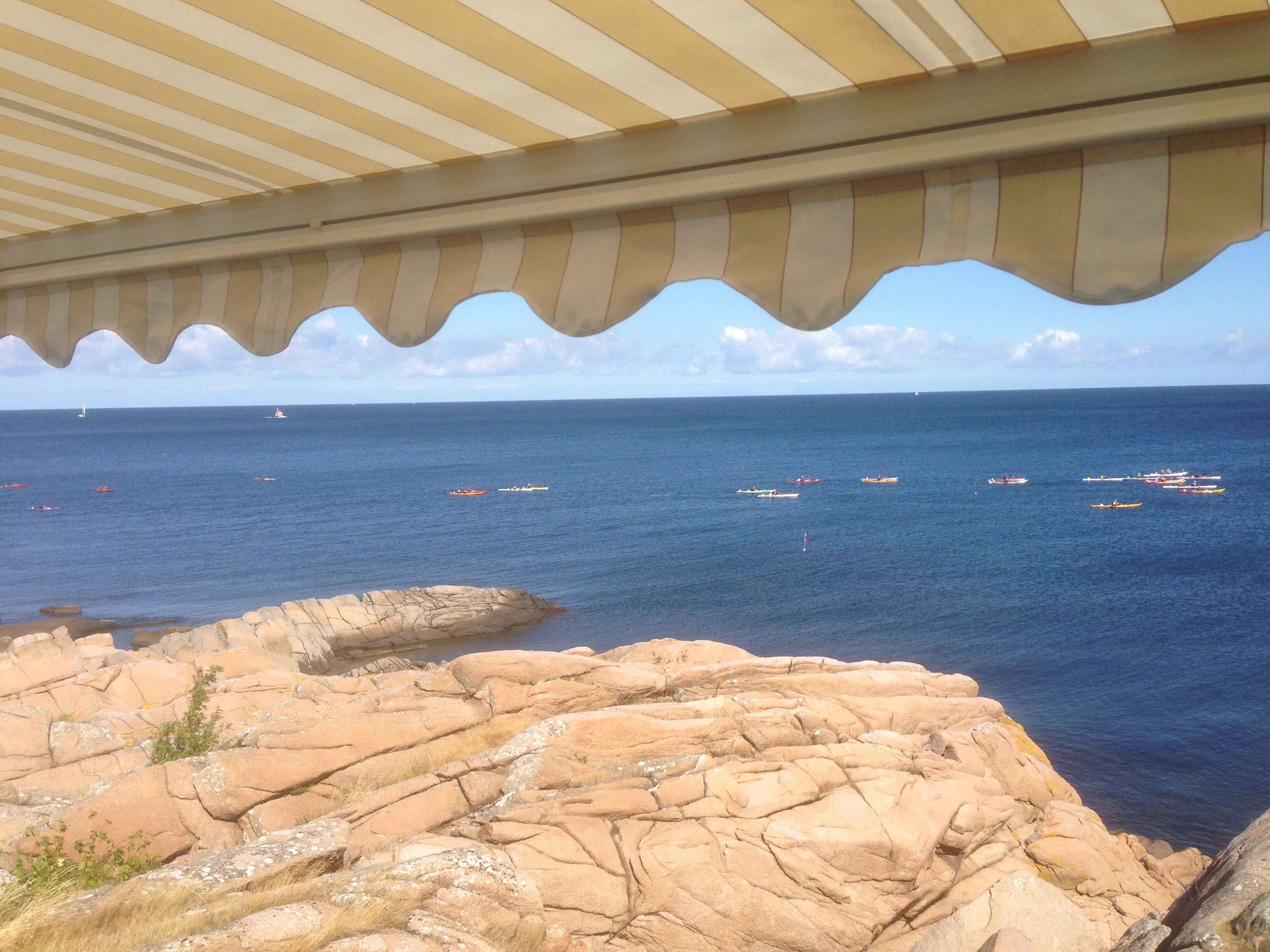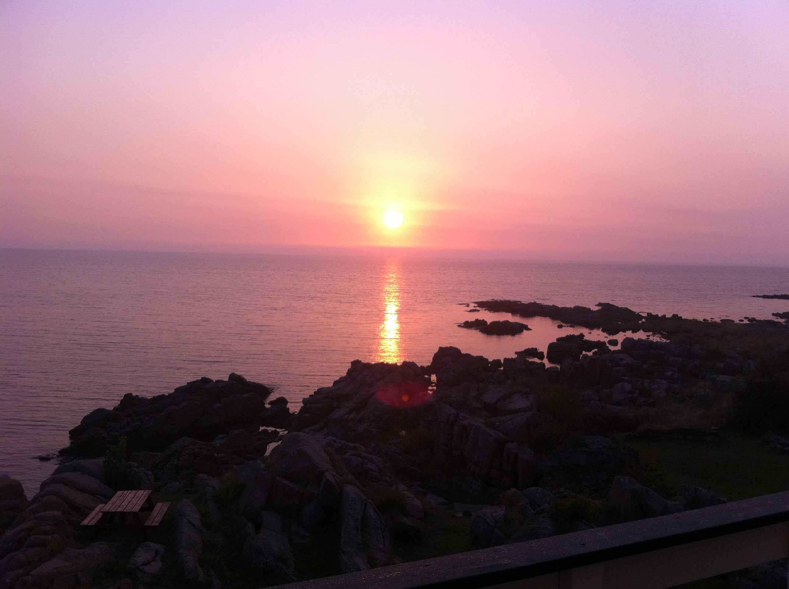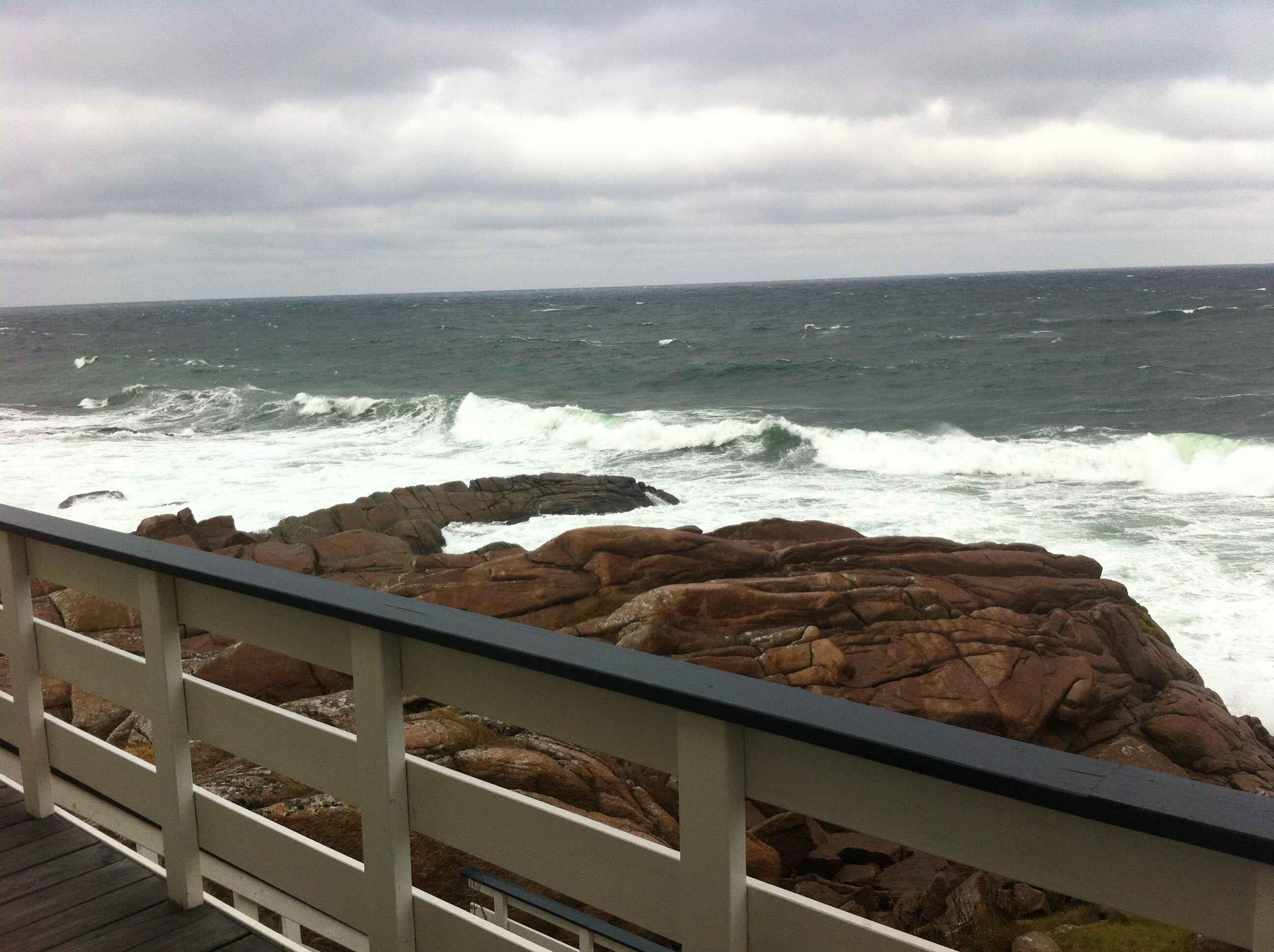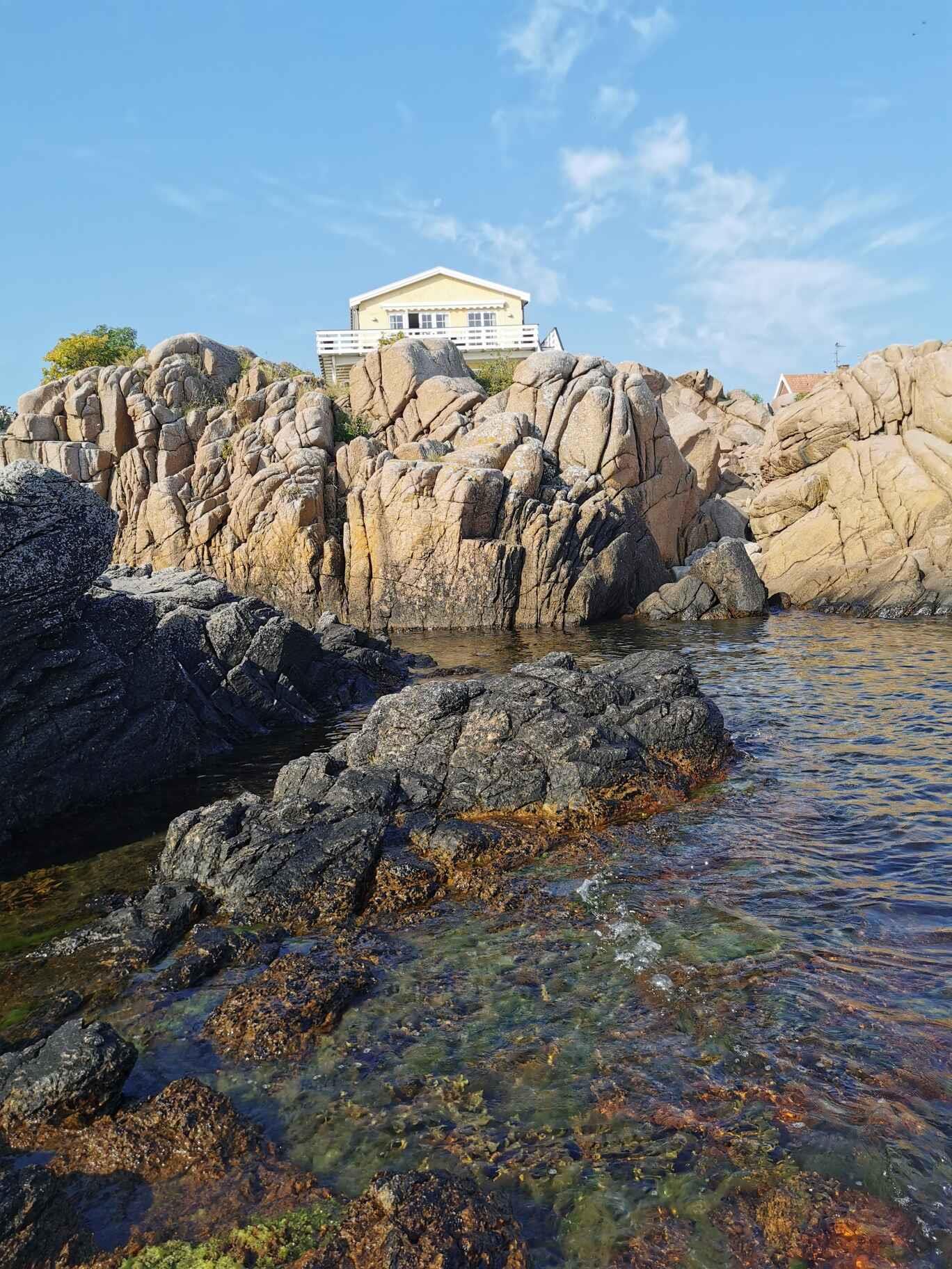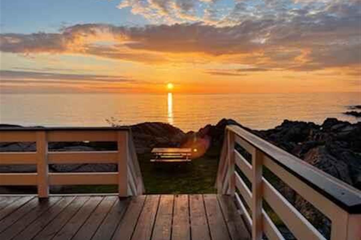 Geniet van een uniek vakantieappartement met panoramisch zeezicht en royale balkonterrassen aan de rotsachtige kust van Nordbornholm.