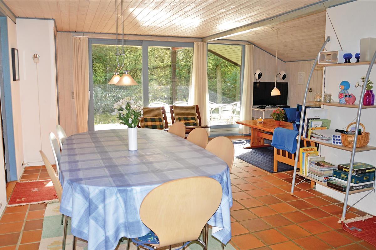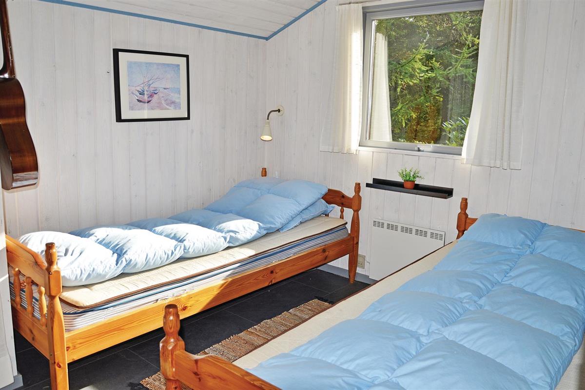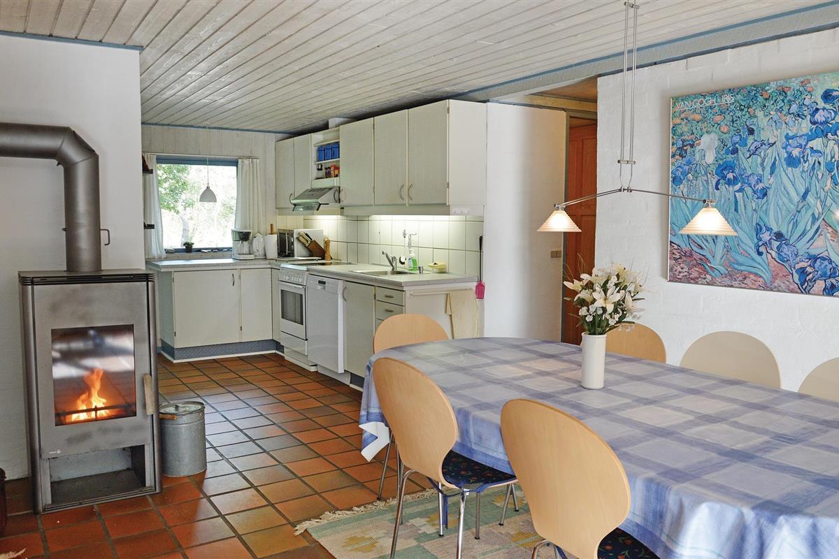 Ver weg van drukte en luidruchtige disco's wacht dit gezellige vakantiehuis op je op een prachtig, ongestoord bosperceel. De woonkamer is gecombineerd met de keuken en uitgerust met een houtkachel. Van daaruit kunt u het aangename, overdekte terras bereiken. Er zijn ook vier slaapkamers en een badkamer in het huis. Het vakantiehuis ligt in de prachtige natuur van het idyllische gebied Alrum, met veel ruimte en vrijheid, vogelgezang en een rijk dierenleven. Ondanks de ligging is het niet ver naar het populaire stadje Søndervig, waar de hele zomer wel iets te beleven valt. Hier vind je interessante winkels, fietsverhuur, een klein avonturenzwembad, bowlingbaan, cafés, restaurants en nog veel meer. Vanuit Søndervig kun je direct de Noordzee bereiken, die in alle weersomstandigheden en seizoenen de moeite waard is om te beleven. Een kleine winkel in Stadil is ook niet ver weg. Vlakbij ligt ook het natuurgebied Vest Stadil Fjord met fietspaden, een vogelkijkhut en een vogeltoren. Vooral in het voor- en najaar kun je hier enorme zwermen ganzen, eenden en andere trekvogels zien. Hier verblijf je bij Ringkøbing Fjord, waar surfers veel gelijkgestemden uit vele landen ontmoeten en waar zowel beginners als profs genieten van het lage water, de wind en de vrijheid op zee. In de omgeving kun je ook goed vissen in de vele vismeren. Je kunt ook een bezoek brengen aan Hvide Sande, een oud vissersdorp met een levendige haven, of naar Thorsminde gaan, ook een vissersdorp. Thorsminde is kleiner dan Hvide Sande, maar net zo gezellig en vooral gelegen op de landbrug tussen de Noordzee en de Nissun Fjord.