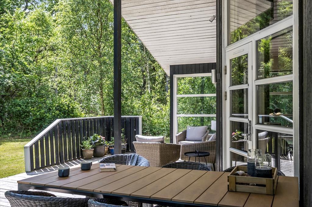 Das Ferienhaus liegt auf einem großen, schönen Gartengrundstück mit viel Platz zum Spielen und Entspannen. Außerdem lädt die große, teilweise überdachte Terrasse zu gemütlichen Stunden an der frischen Luft ein. Zünden Sie den Grill an, öffnen Sie eine Flasche Wein und während Sie darauf warten, dass die Kohle die richtige Temperatur hat, können Sie z. B. eine Runde Fußball auf dem Rasen spielen..