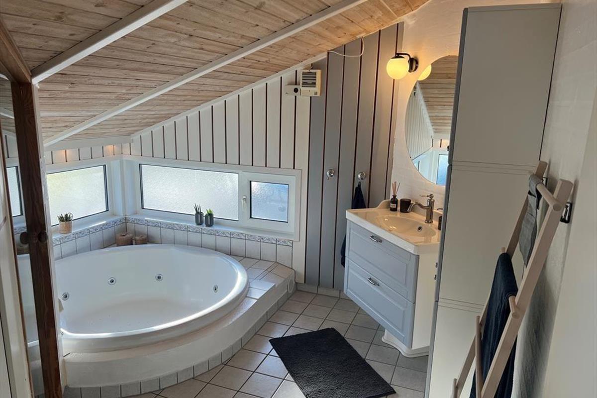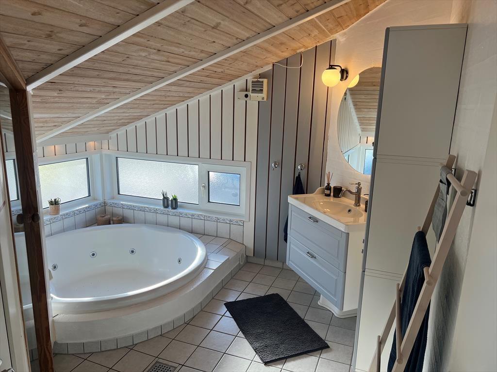 Dieses Ferienhaus hat alles was Sie sich im Urlaub wünschen können, und liegt zudem ganz nah am Mariager Fjord. Sie haben also eine wunderbare Aussicht zum Wasser und können sich komplett entspannen. Das Ferienhaus ist gut erhalten und mit gemütlichen Möbeln und modernen Geräten ausgestattet; u.a. Klimaanlage, WLAN, Waschmaschine, Trockner, Geschirrspüler, 4-Personen-Whirlpool, Sauna und Kaminofen. Es gibt Platz für acht übernachtende Gäste, verteilt auf vier Schlafzimmer. Das Haus eignet sich also sowohl für Familien als auch für zwei oder drei Paare, die gemeinsam Urlaub machen. Das Haus hat außerdem zwei Badezimmer mit Fußbodenheizung und eine offene Wohnküche, in der Sie kochen, spielen oder sich vor dem Fernseher oder Kaminofen entspannen können.