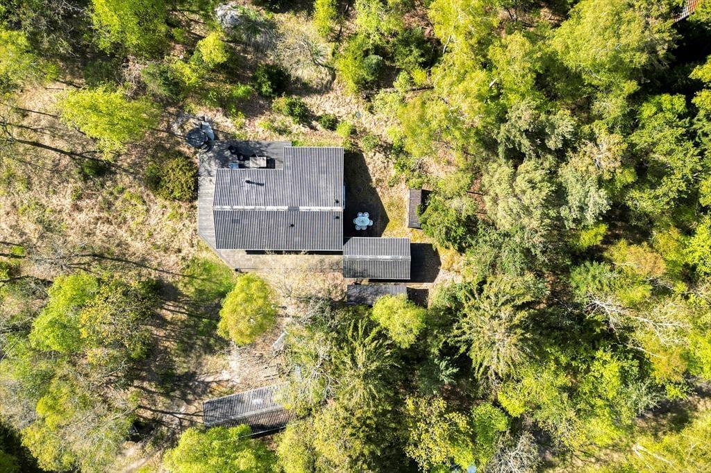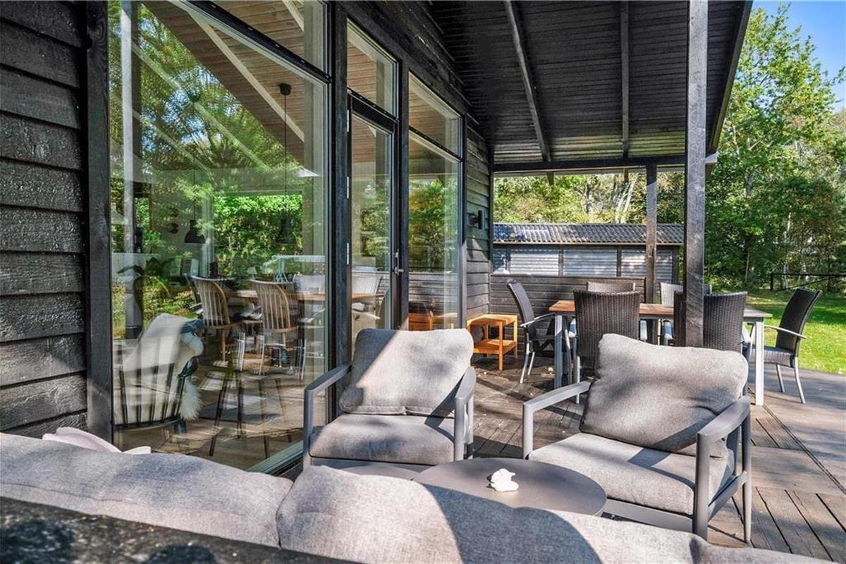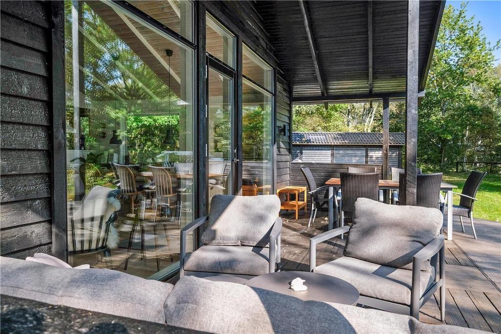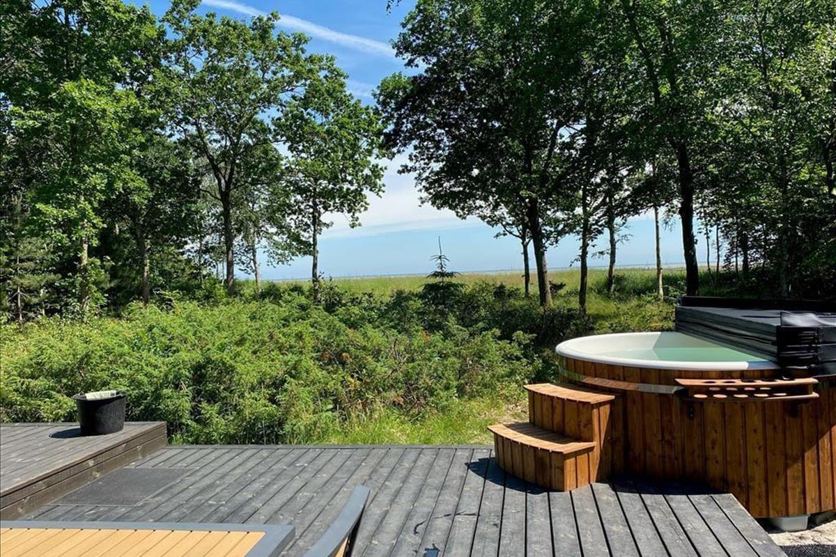 Der Außenbereich des Ferienhauses ist wie geschaffen zum Entspannen und Genießen. Die große Terrasse ist sowohl mit einem Essbereich als auch mit bequemen Loungemöbeln ausgestattet, von denen aus Sie die Aussicht auf das Kattegat genießen können. Die weitläufige Terrassenumgebung eignet sich hervorragend zum Sonnenbaden, Essen im Freien und für gemütliche Grillabende. Das absolute Highlight ist jedoch die Schwedische Badetonne, in dem Sie unter freiem Himmel entspannen und die Ruhe und die Aussicht auf die Natur genießen können. Das Gelände ist von einer üppigen Vegetation umgeben, die eine private Atmosphäre schafft, und mit Platz zum Spielen und Entspannen ist für jedes Alter etwas dabei.