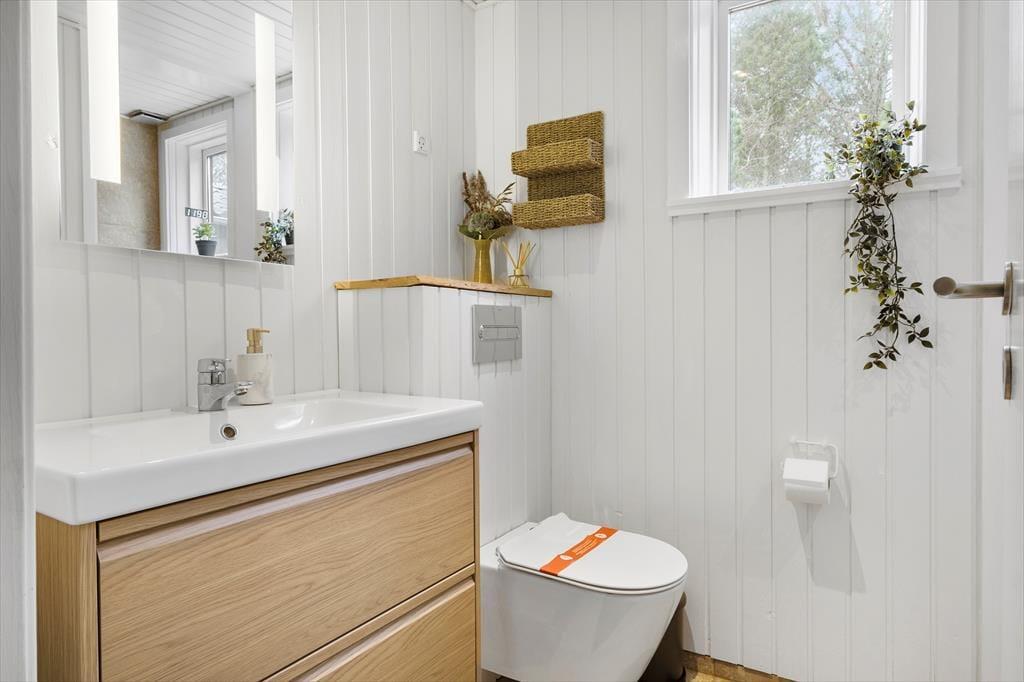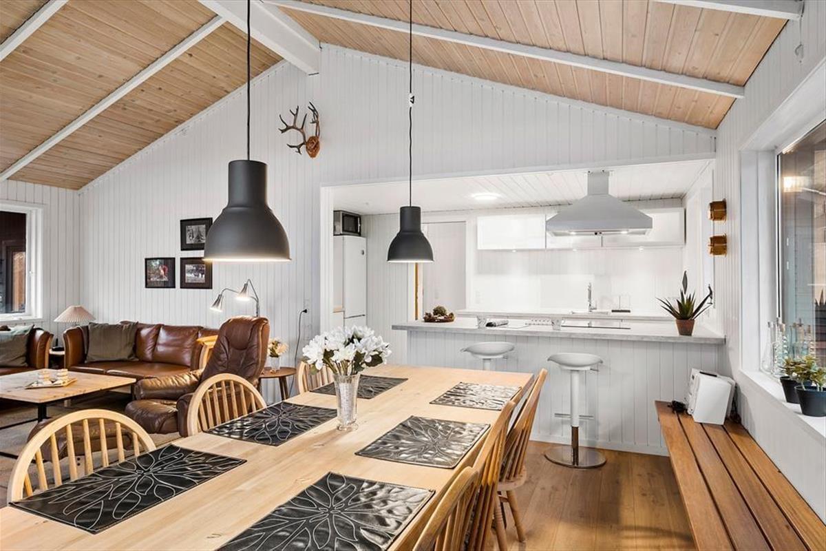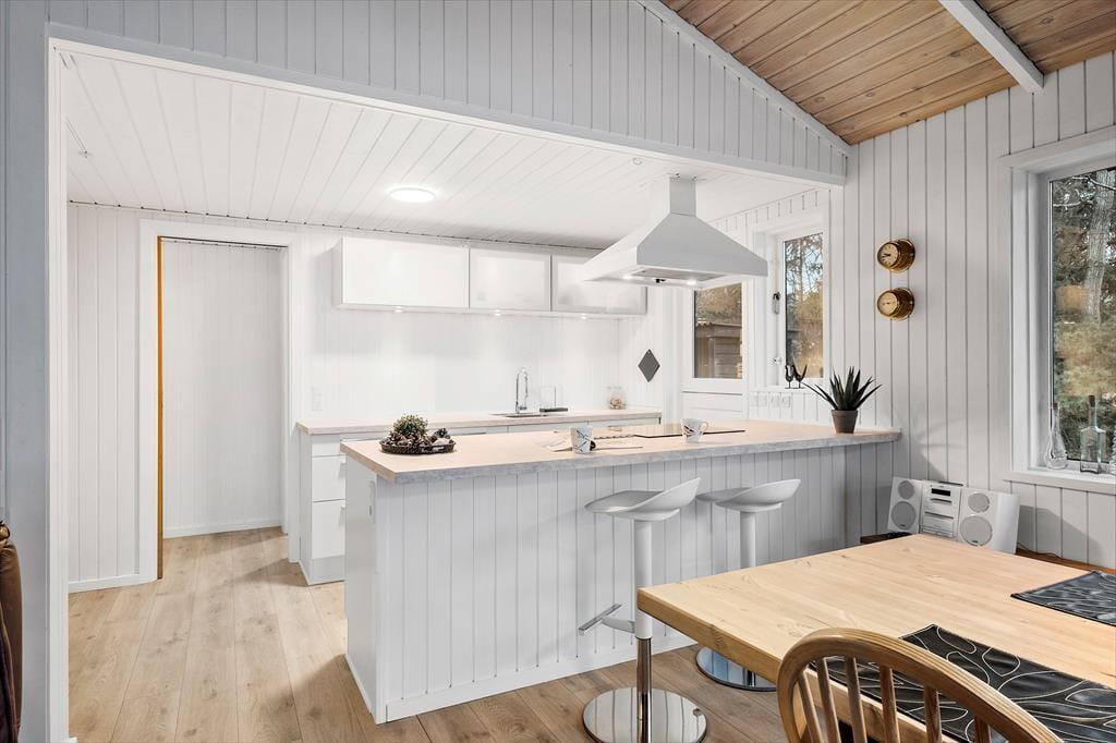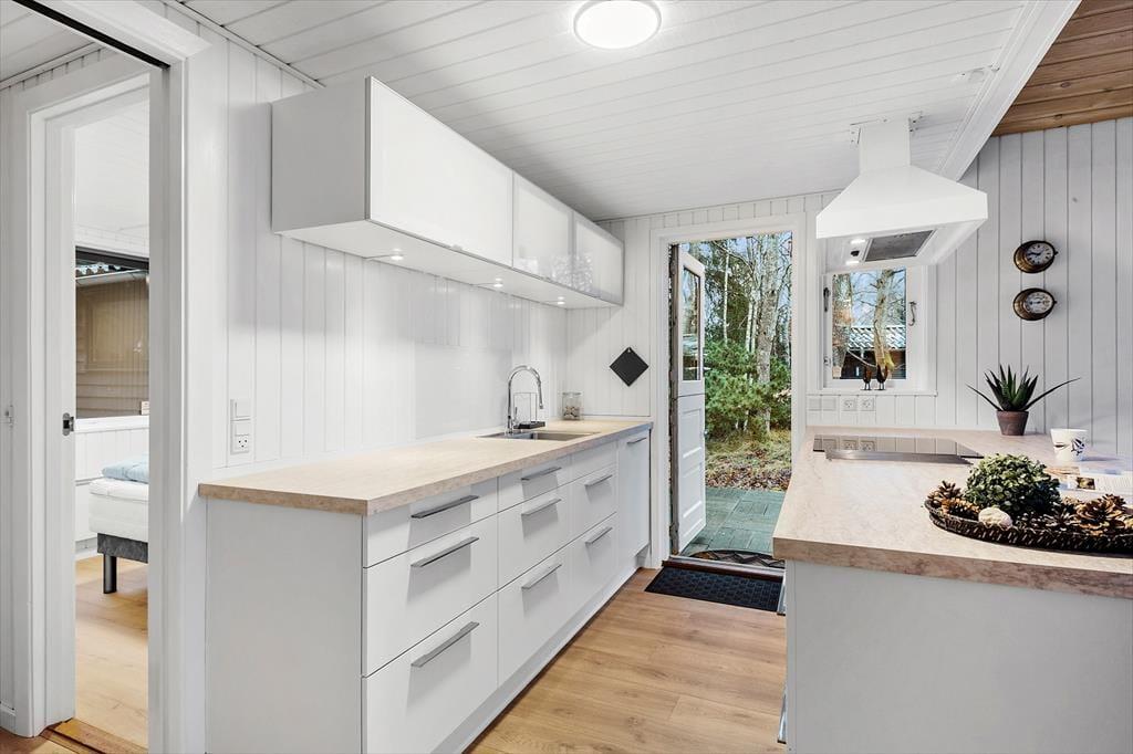 Das Ferienhaus ist nach einer Renovierung im Jahr 2024 hell und einladend. Die Küche, die Ende 2024 renoviert wurde, ist geschmackvoll eingerichtet und zum Wohnzimmer hin offen, wo große Fenster das Licht hereinlassen und den Blick auf die schöne Natur draußen freigeben und das Kattegat, das von der Terrasse und mehreren Zimmern des Hauses aus zu sehen ist. Versammeln Sie die Familie um den Esstisch für gemütliche Mahlzeiten, oder machen Sie es sich auf dem bequemen Sofa gemütlich, wo der Holzofen an kühlen Abenden Wärme und Gemütlichkeit verbreitet. Der Glasfaser-Internetanschluss sorgt dafür, dass Sie problemlos Ihre Lieblingsserie streamen oder mit der Außenwelt in Kontakt bleiben können - es sei denn, Sie möchten die Verbindung komplett unterbrechen. Das Ferienhaus verfügt über drei Schlafzimmer mit bequemen Betten. Im Nebengebäude finden Sie ein separates Refugium mit einem Doppelbett und einer eigenen Toilette - perfekt für diejenigen, die während ihres Aufenthalts ein wenig mehr Privatsphäre wünschen.