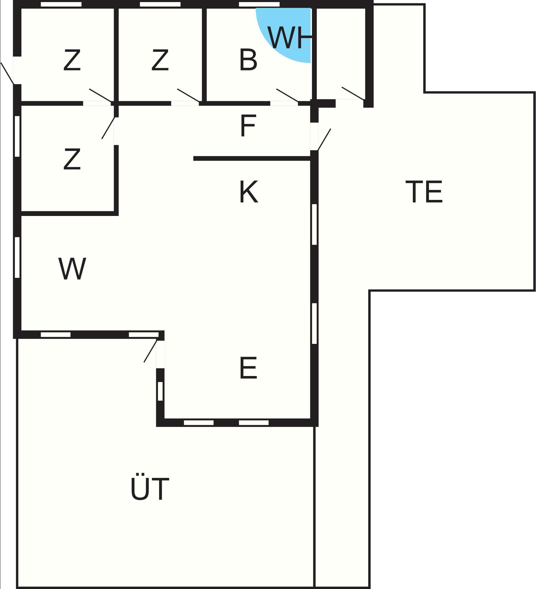 Bad: Waschm, Trockner, WC, Waschb., Dusche, Fußbodenheiz.