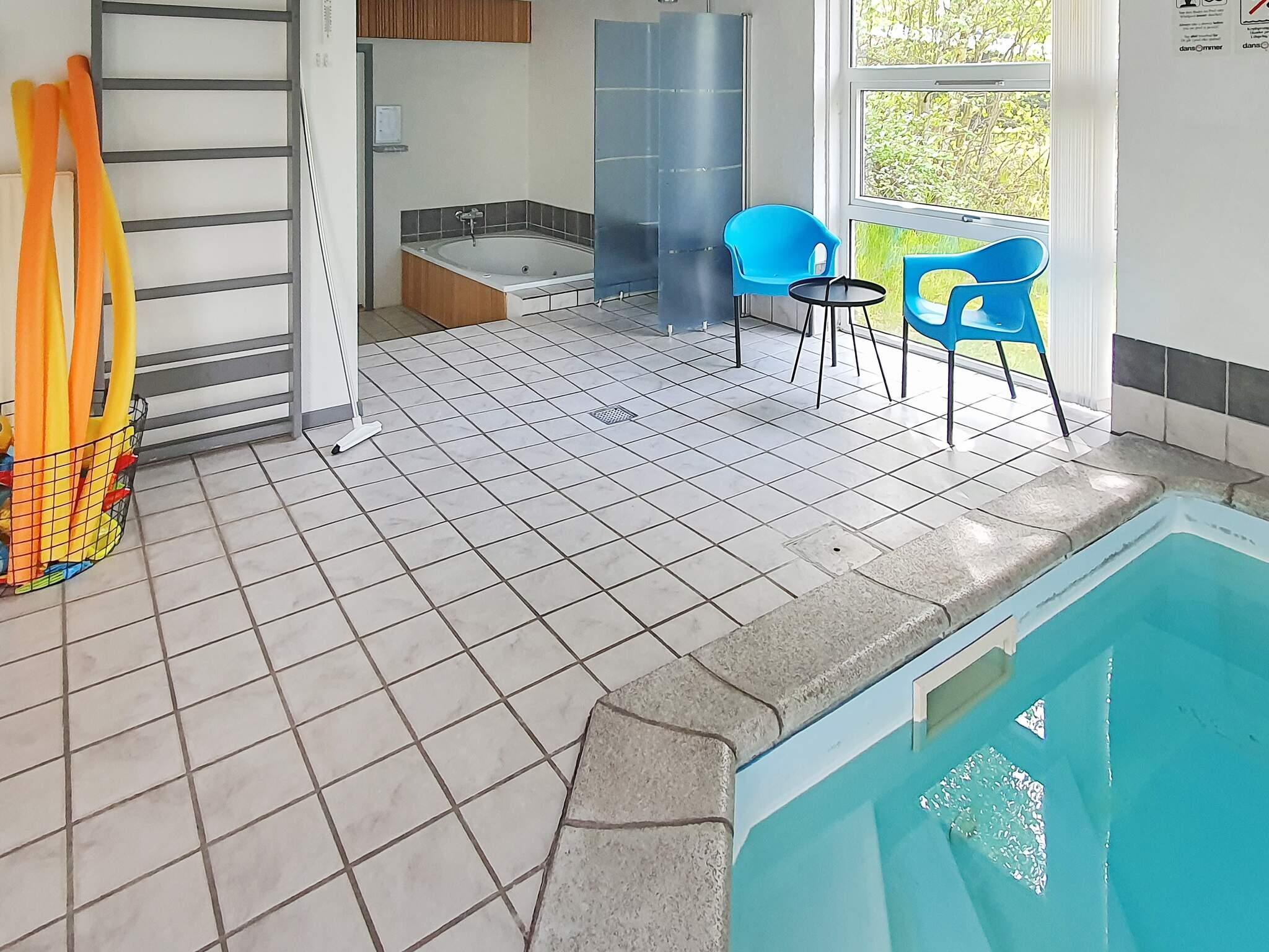 Im Ferienhaus gibt es einen großen Poolbereich mit einem 22 m2 großen Schwimmbecken mit sogenannter spanischer Treppe in den Pool sowie einem Whirlpool und gleich nebenan einer großen Sauna zum Entspannen und Aufwärmen.