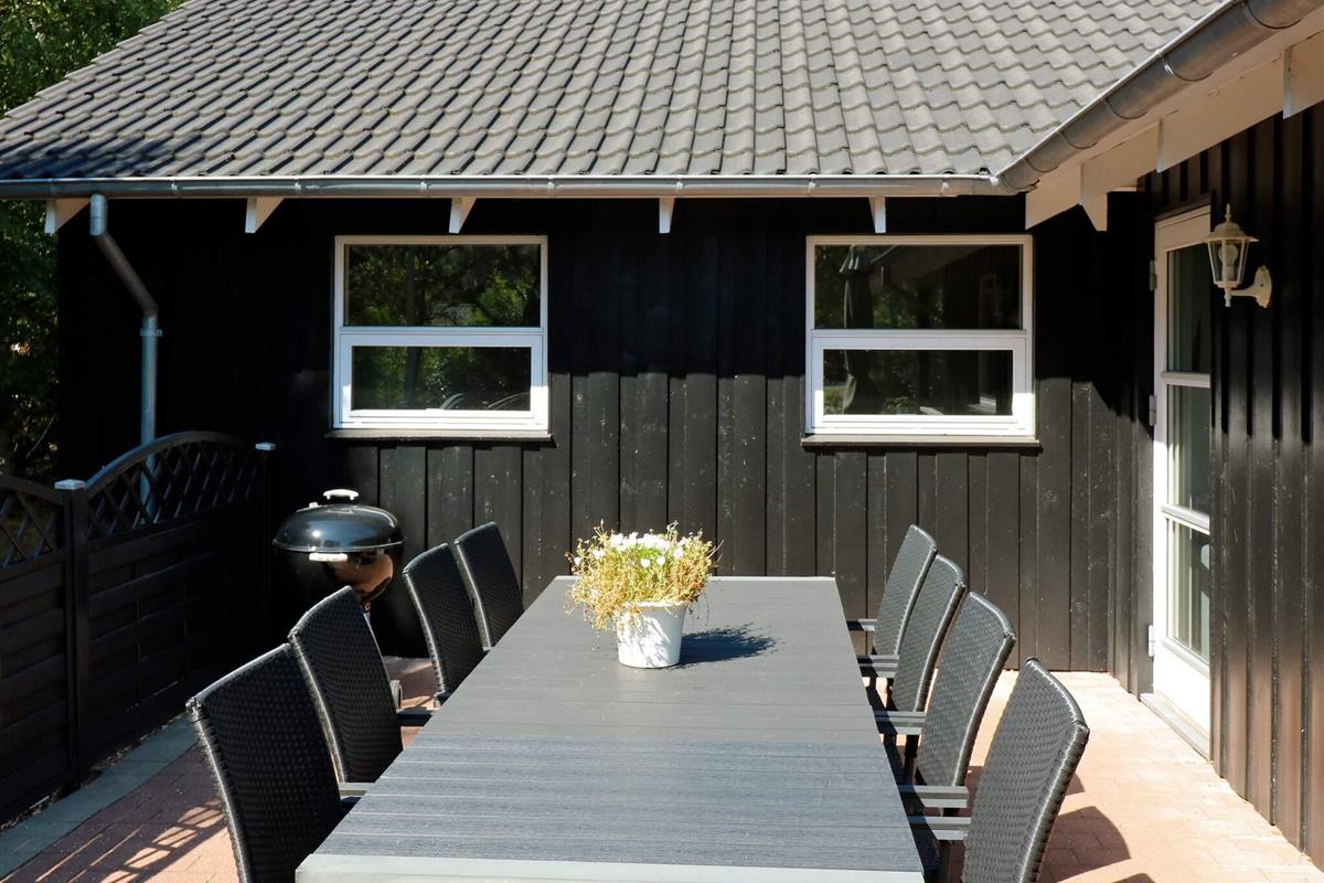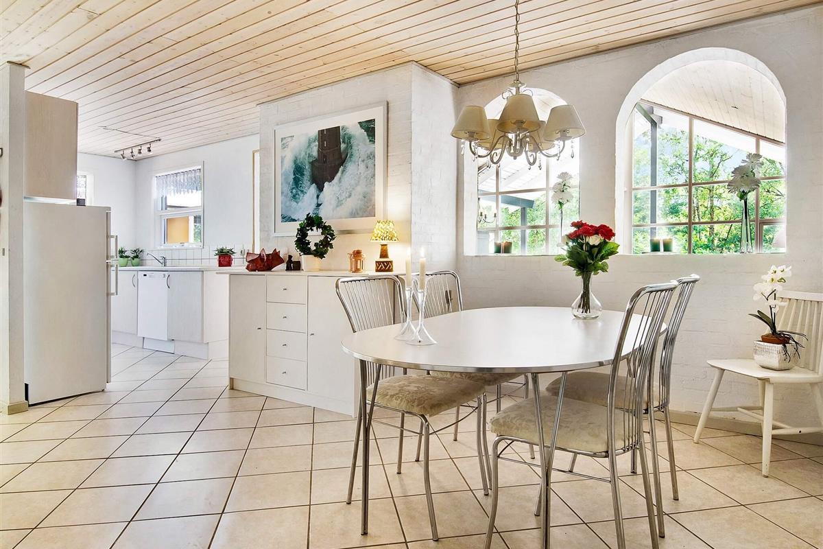 Eingebettet in die friedliche grüne Umgebung von Als Odde ist dieses charmante Ferienhaus der perfekte Rückzugsort für Familien, Freunde und sogar Ihre vierbeinigen Begleiter. Auf dem 1200 m² großen Grundstück mit Naturbelag können Kinder toben, Haustiere spielen und alle sich an der frischen Luft entspannen. Die geräumige, teilweise überdachte und möblierte Terrasse bietet den perfekten Rahmen für entspannte Brunchs, Grillabende oder einfach nur zum Zurücklehnen mit einem Glas Wein, während Sie die Ruhe genießen. Im Inneren empfängt Sie ein helles Wohnzimmer mit moderner und dennoch charmanter Einrichtung, einem Holzofen für gemütliche Abende und viel Platz zum Beisammensein. Die offene Küche ist komplett mit allem ausgestattet, was Sie für die Zubereitung köstlicher Mahlzeiten benötigen, während der Essbereich alle um den Tisch herum zusammenbringt.