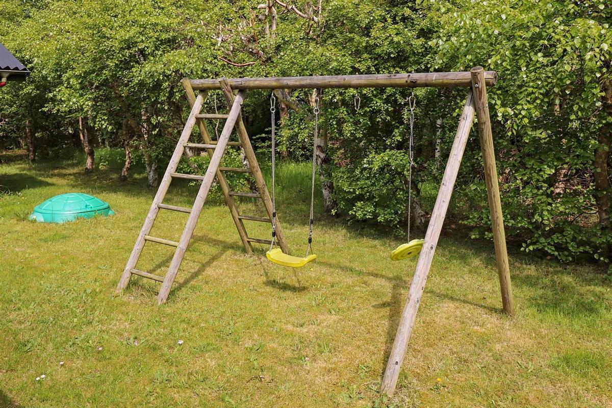 Und: Terrasse, überd. Terrasse, E-Heiz., Luft-Luft-Wärmepumpe, Spielgeräte, Grill, Naturgrundst. 1400 m2, gemischte Möblierung, Ferienhausgebiet, Nichtraucherhaus